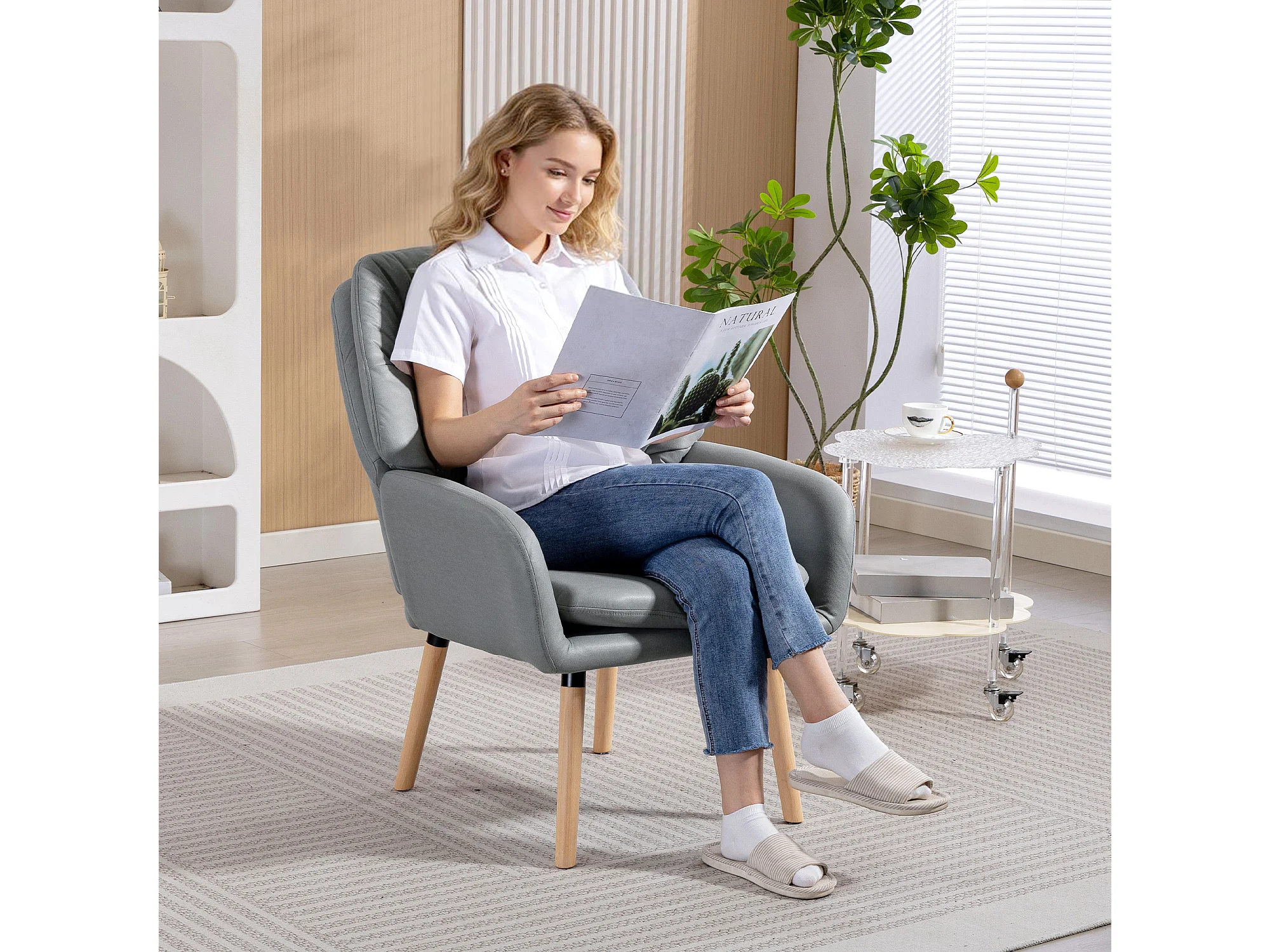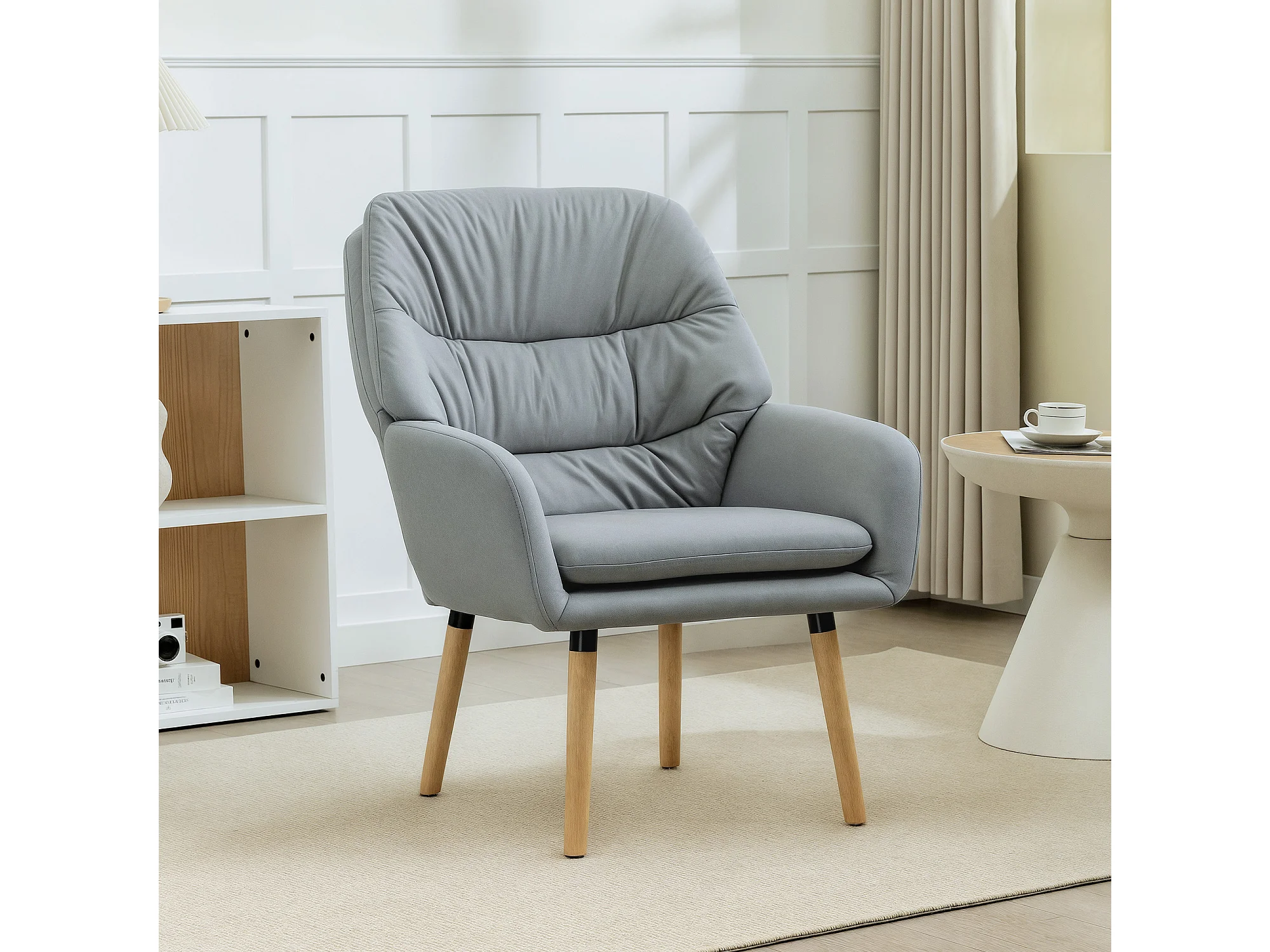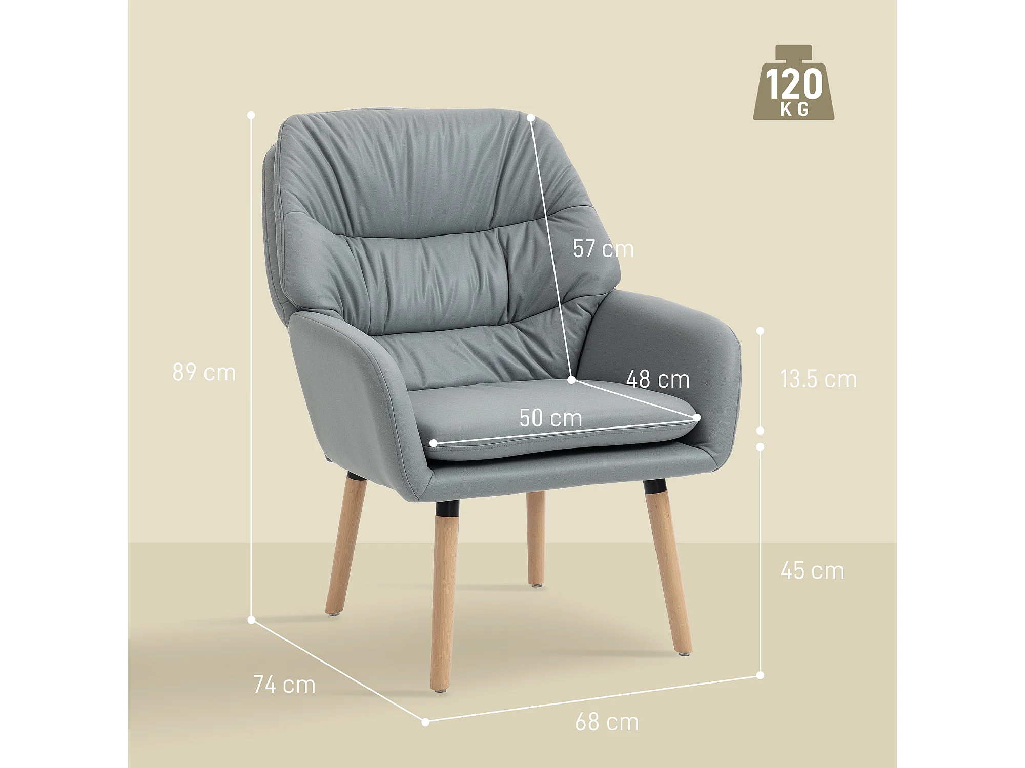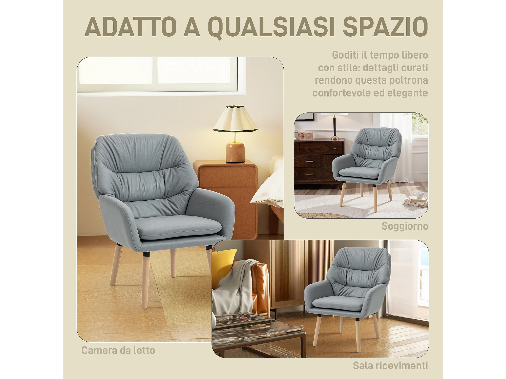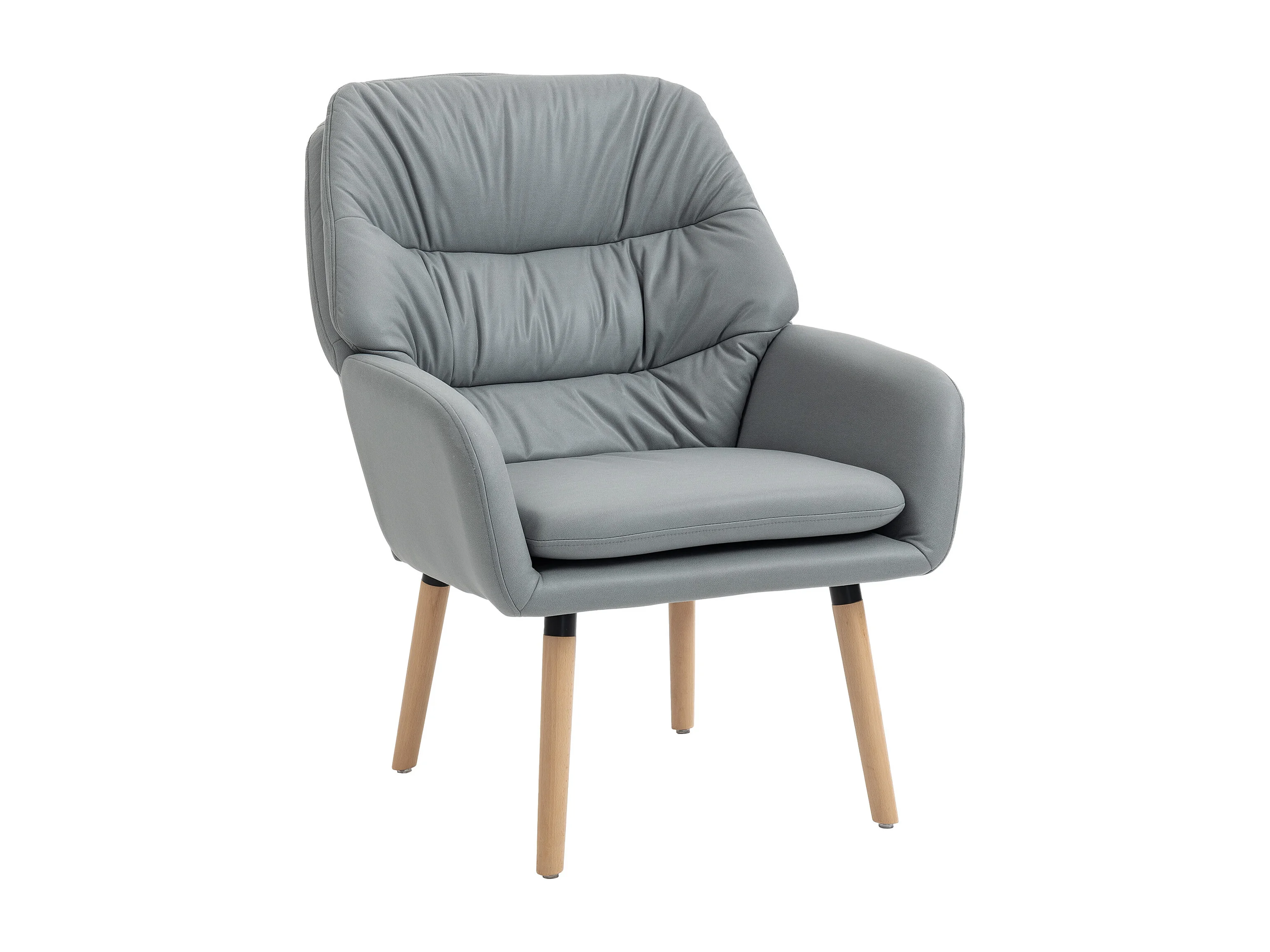 Poltrona moderna con schienale alto imbottito effetto pelle grigio