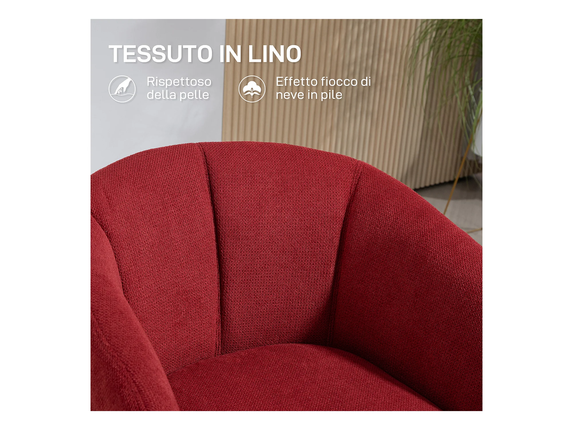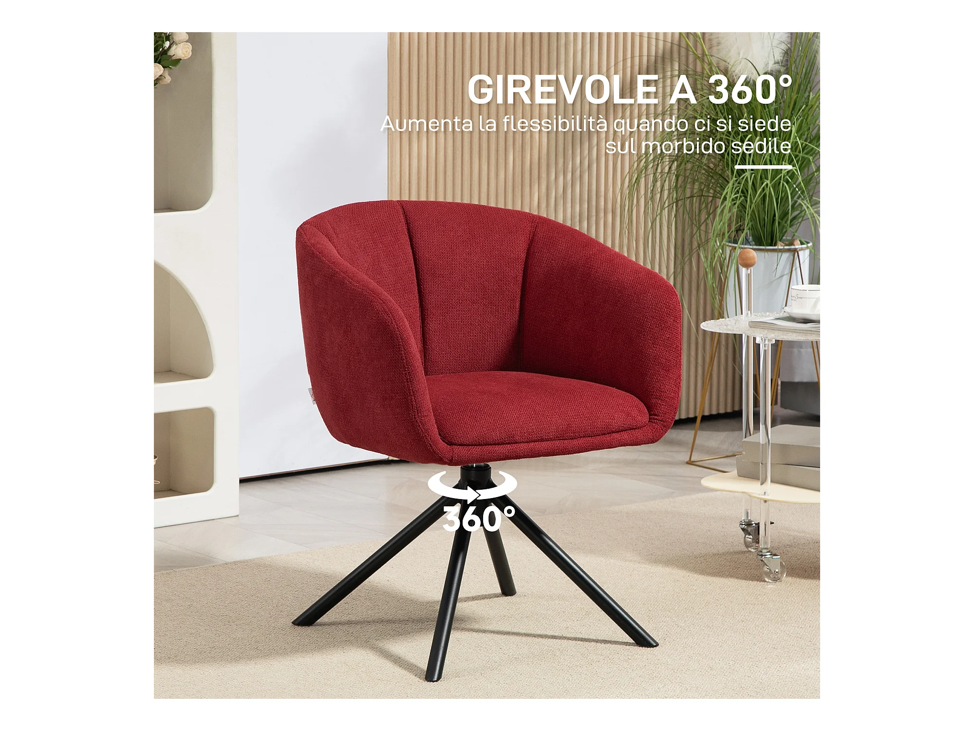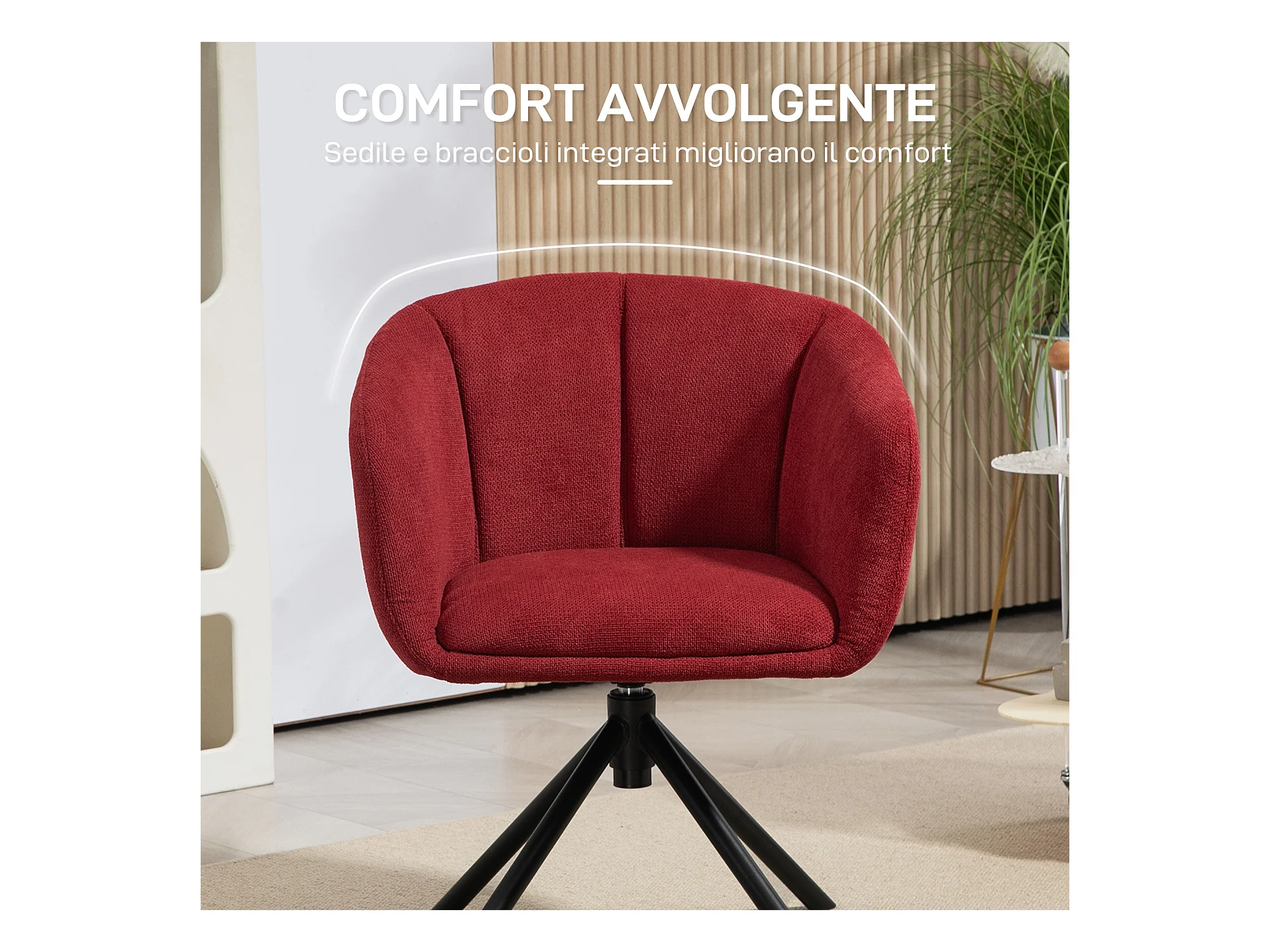 Poltrona moderna girevole con seduta imbottita tessuto bouclé rosso