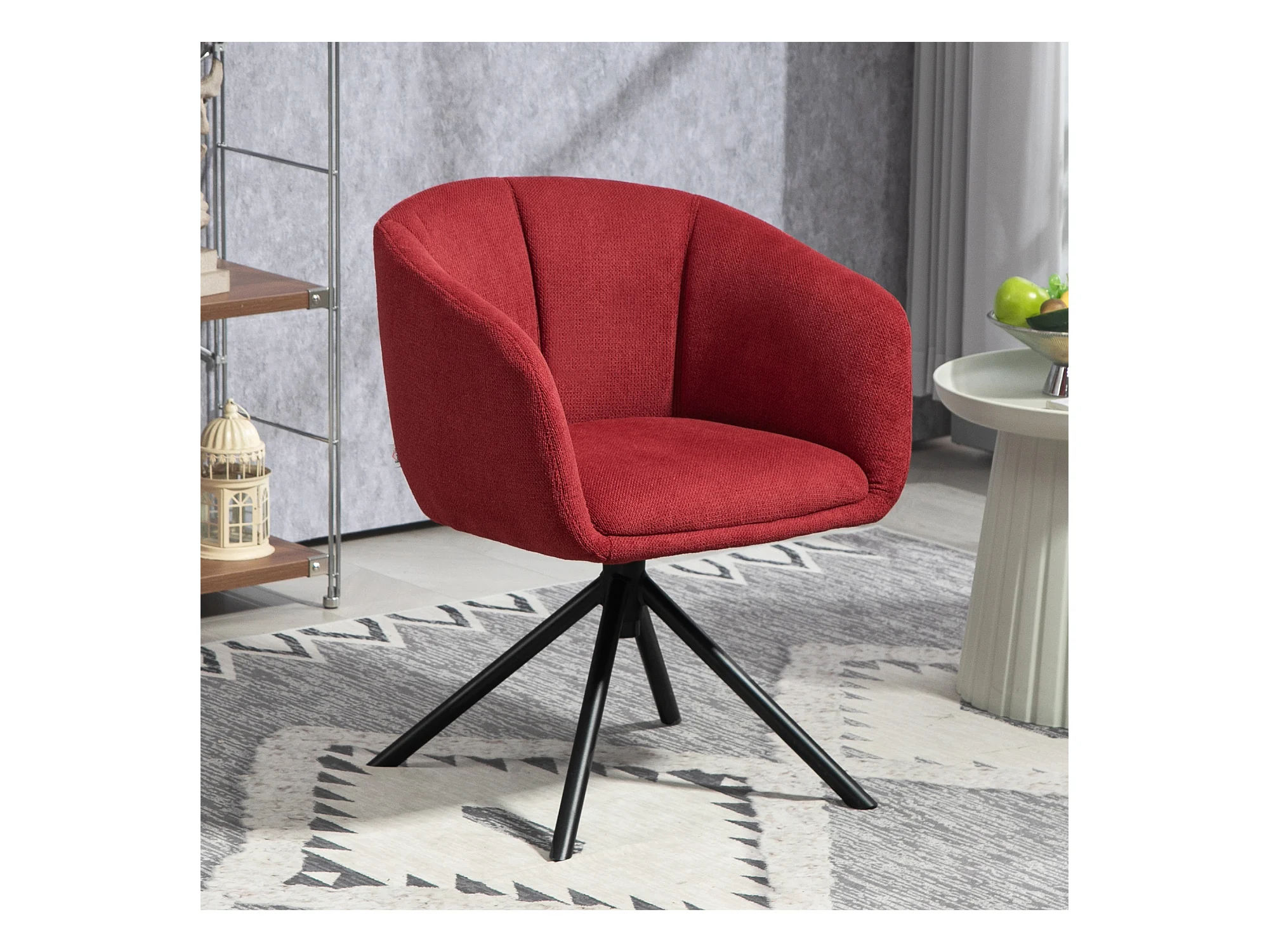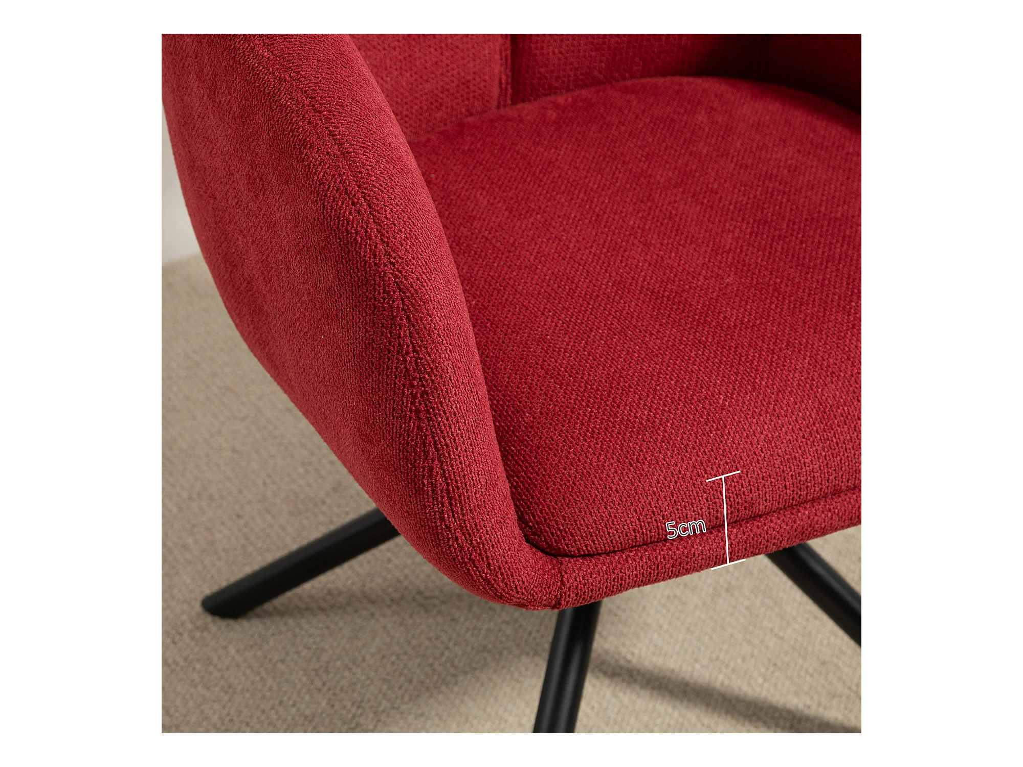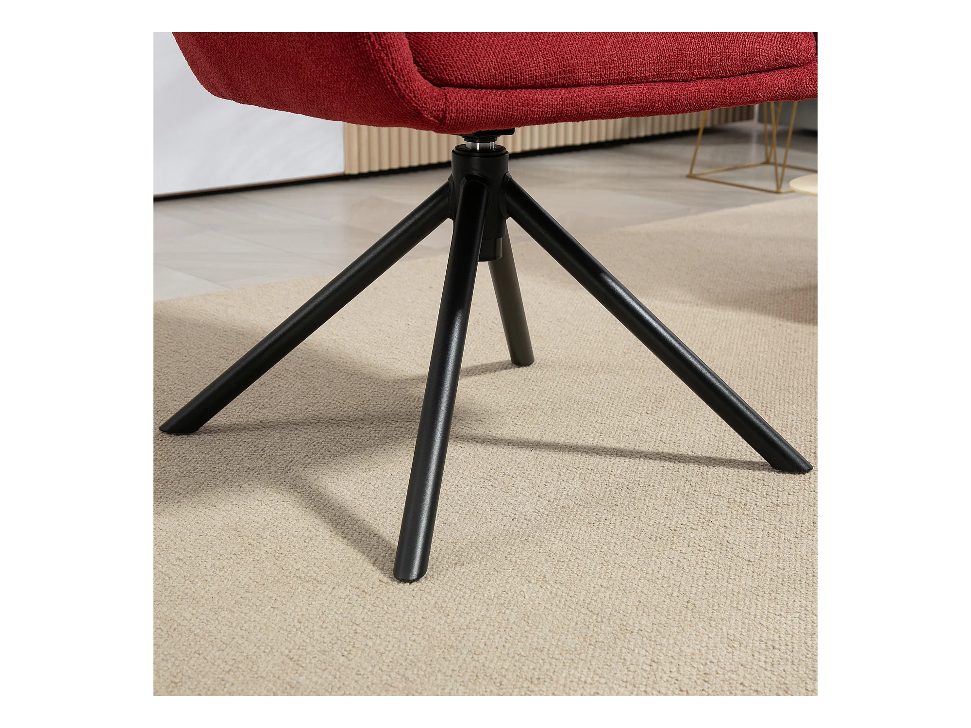 Poltrona moderna girevole con seduta imbottita tessuto bouclé rosso