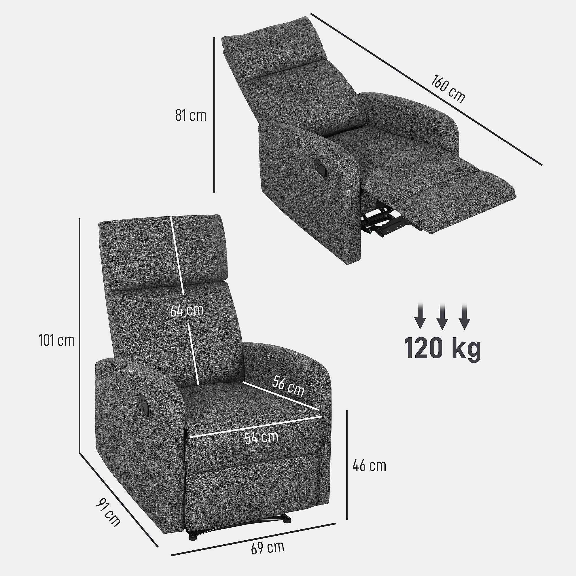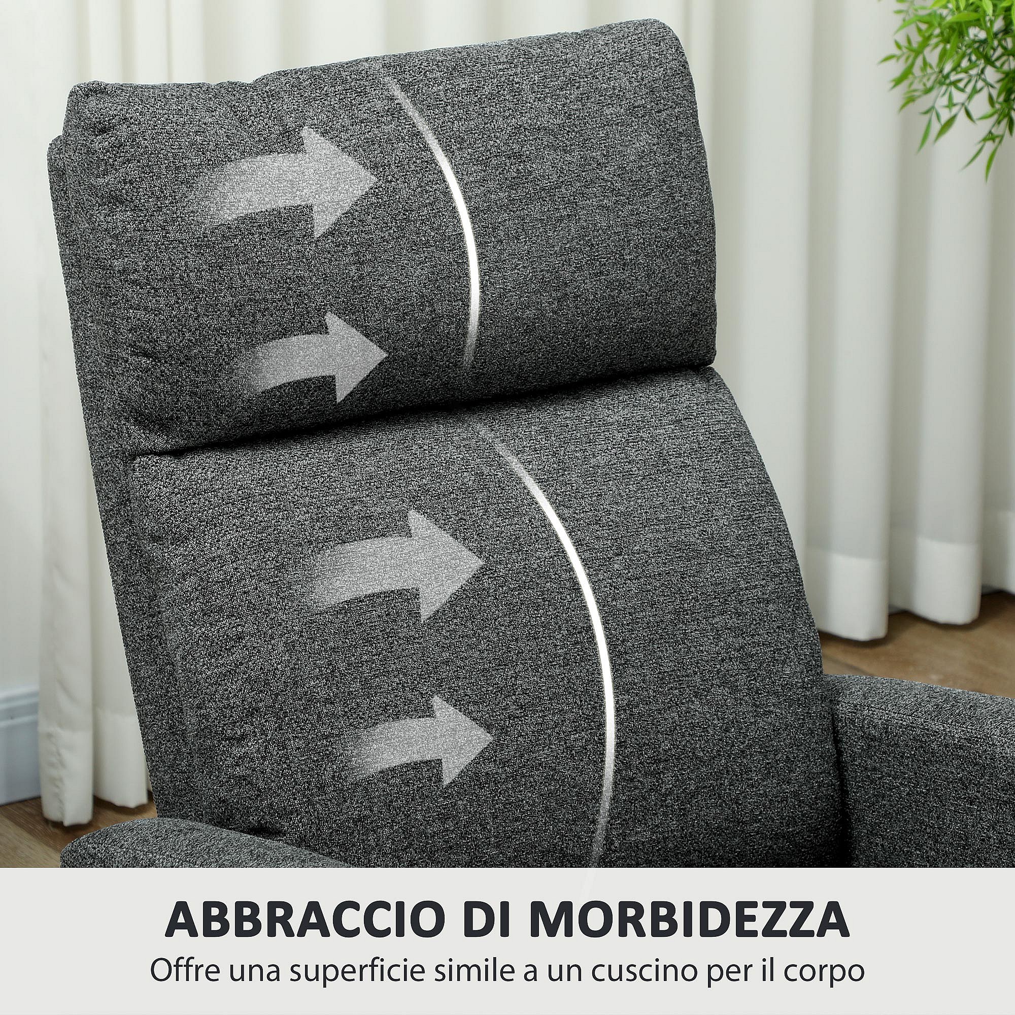 Poltrona moderna reclinabile 145° max rivestita in ciniglia grigia