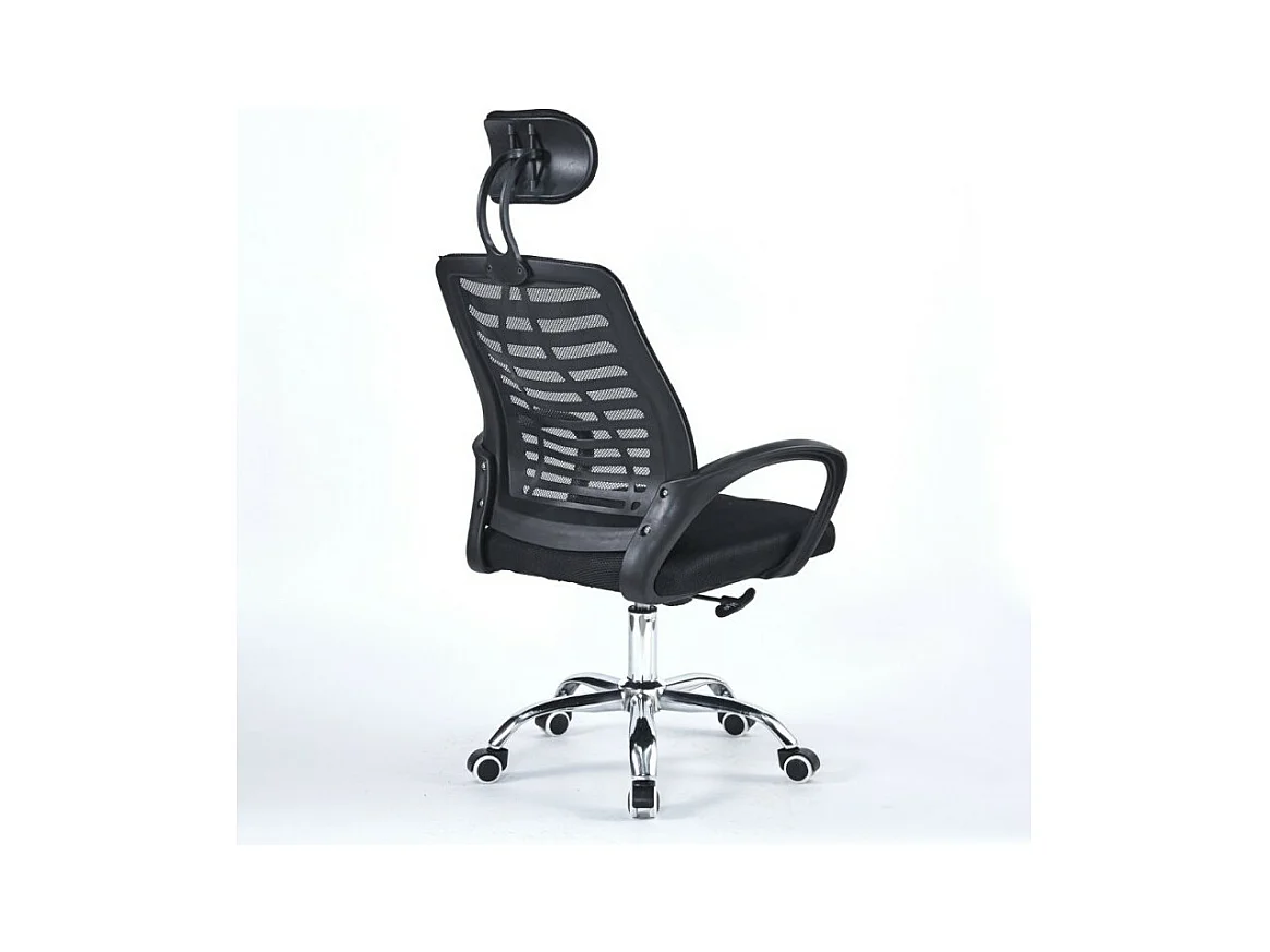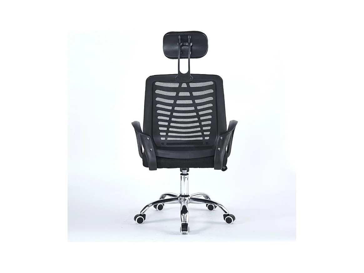 Poltrona operativa per ufficio nera con base cromata e poggiatesta Colin