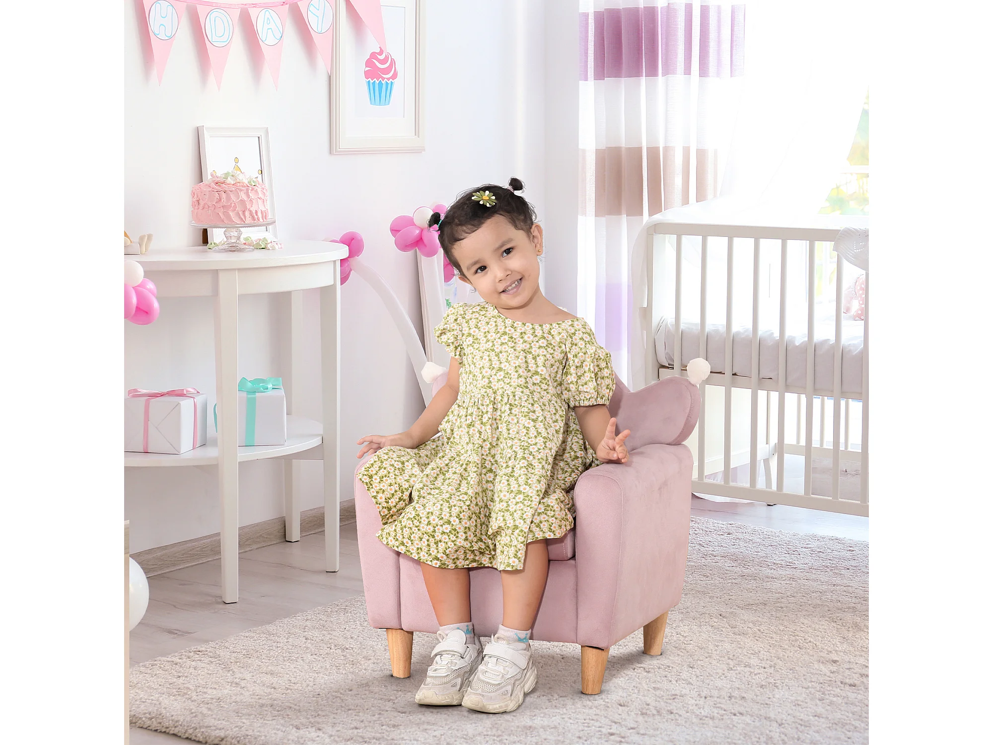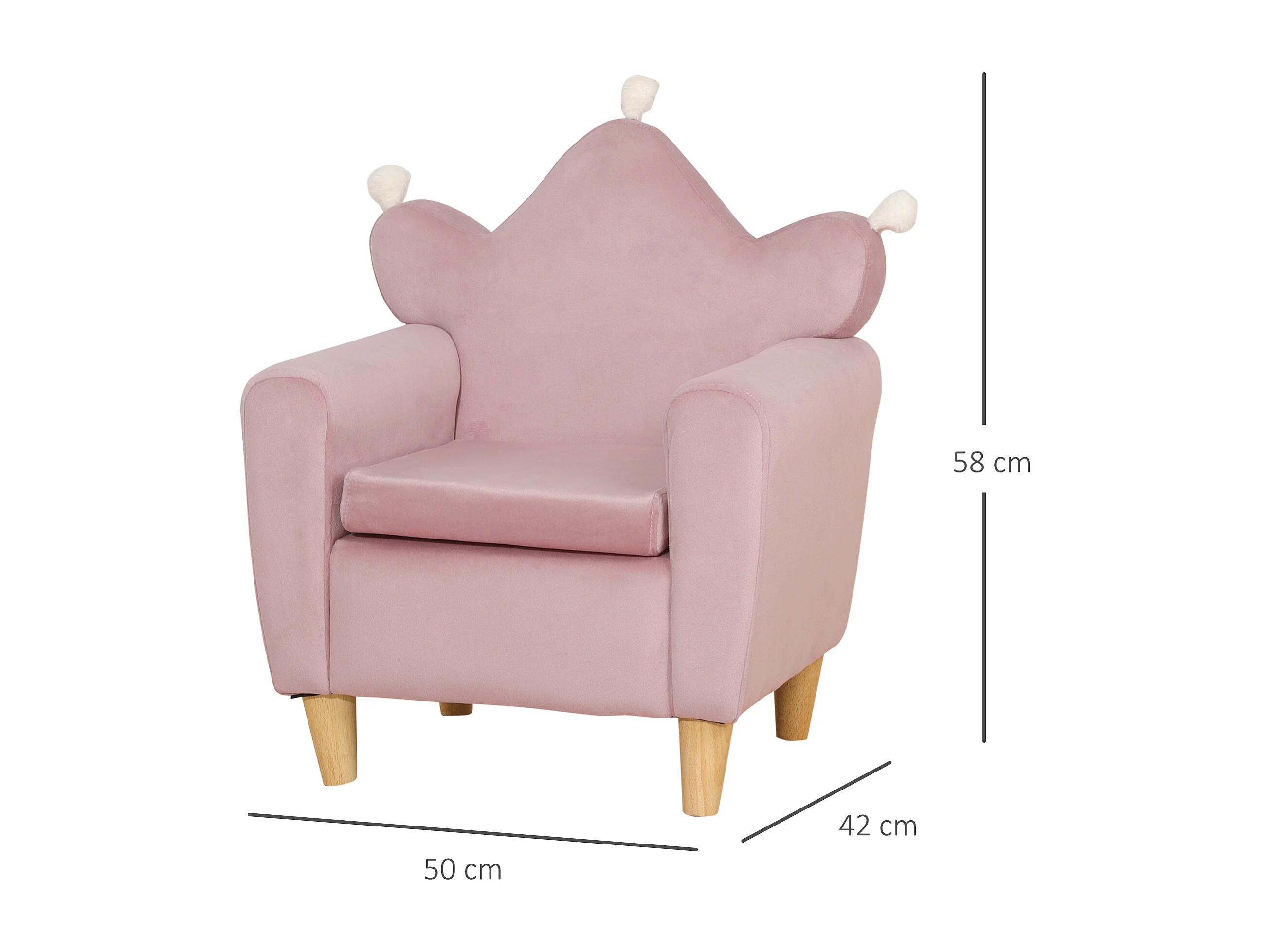 Poltrona per bambini con schienale a corona effetto velluto rosa