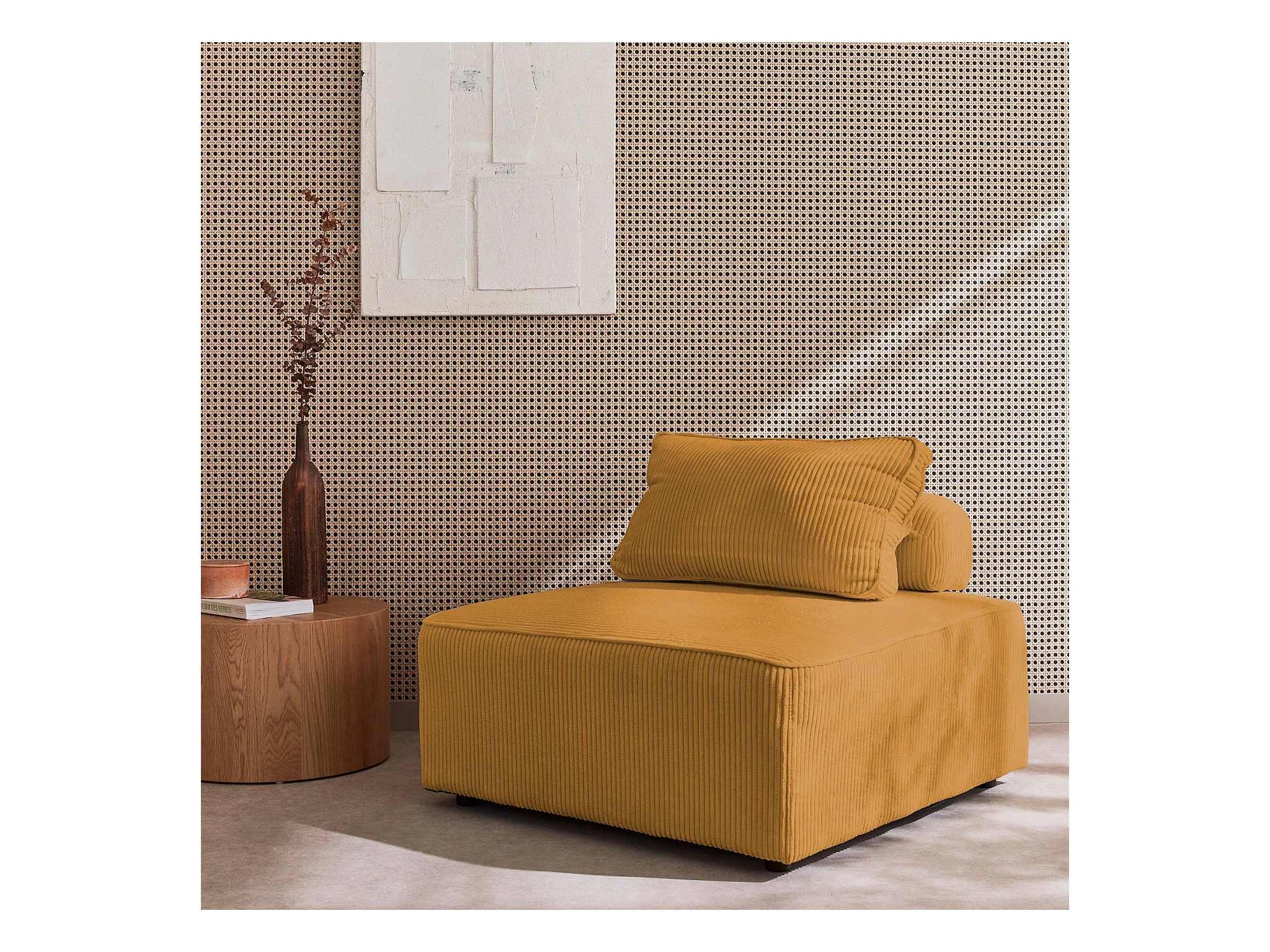 Poltrona scandinava in velluto a coste e legno di hevea, ocra