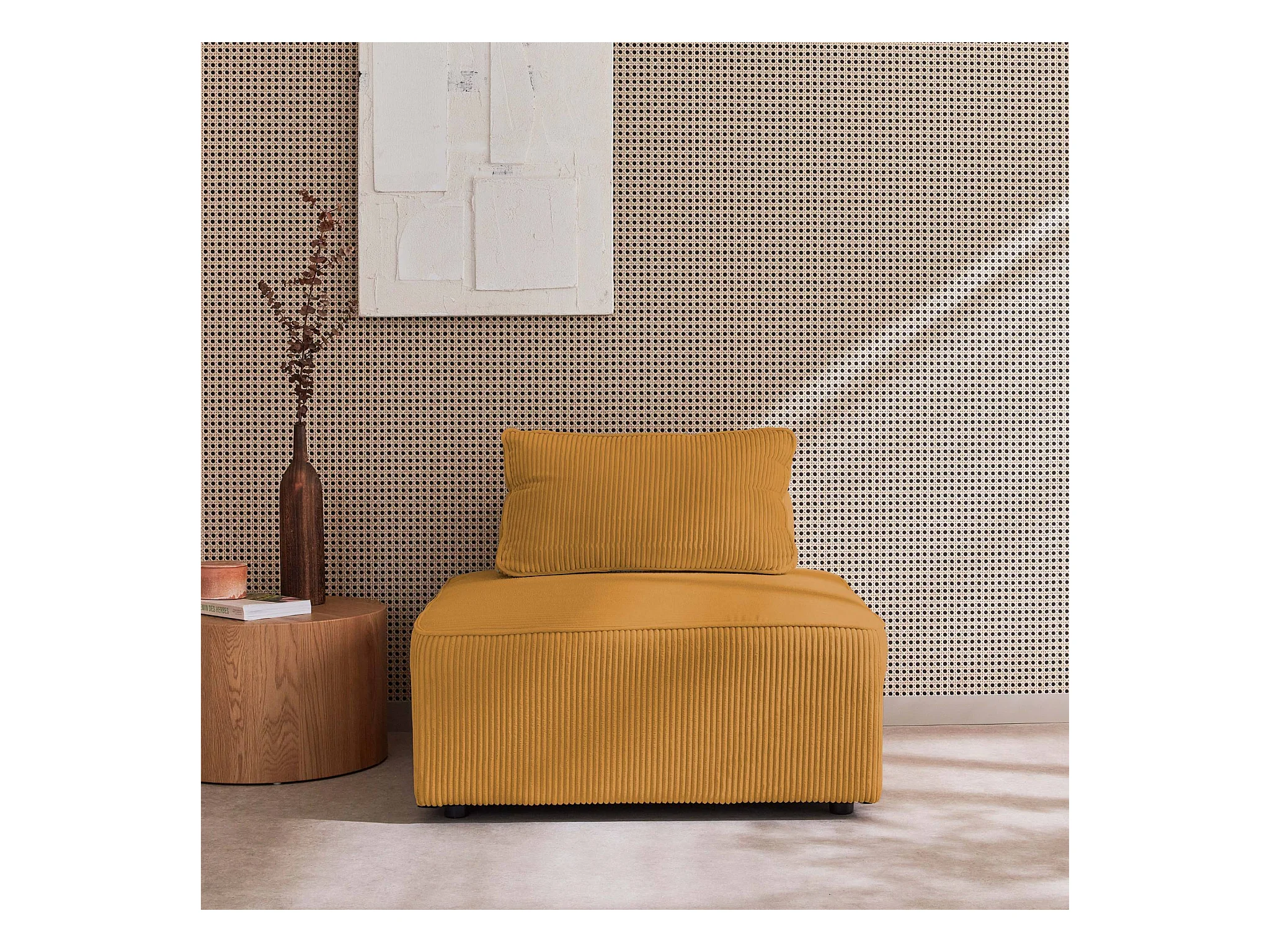 Poltrona in velluto a coste, gambe in metallo, ocra