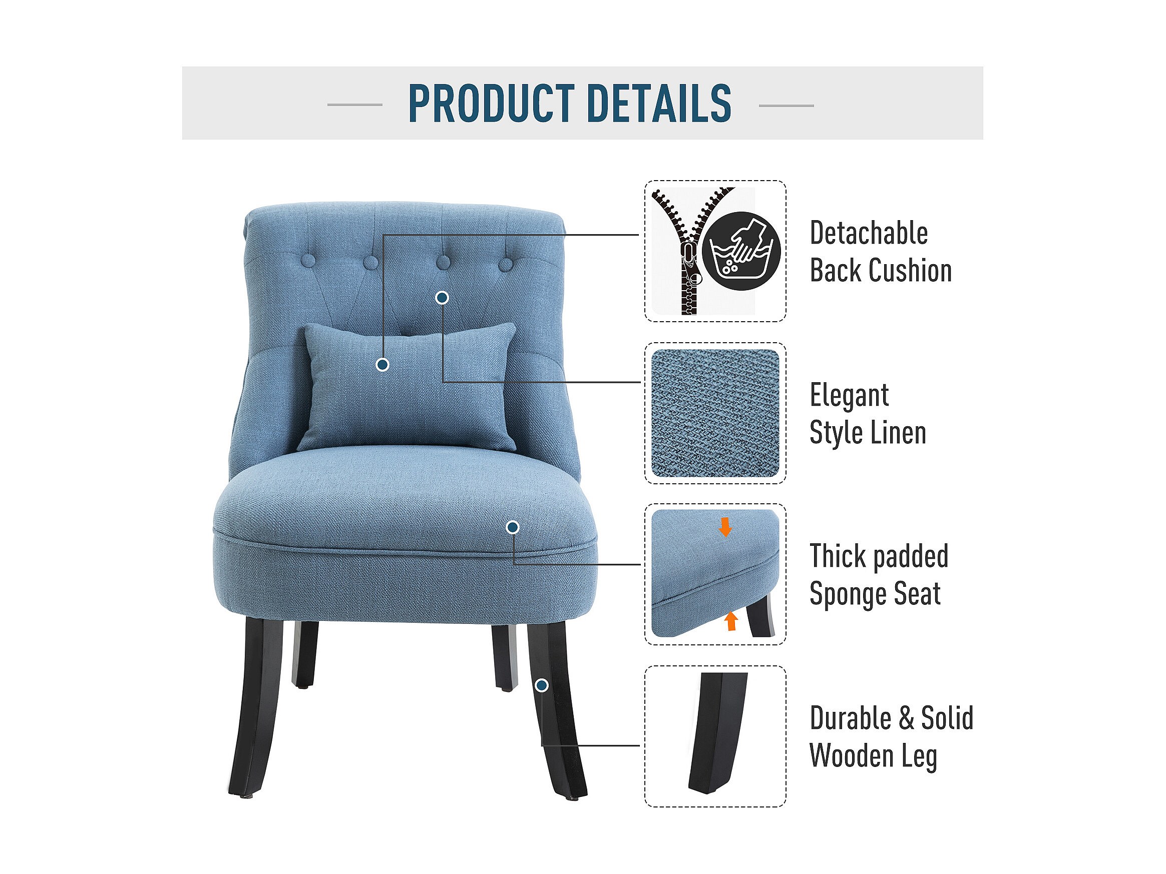 Poltrona per salotto imbottita con cuscino 52.5x69x77 cm blu