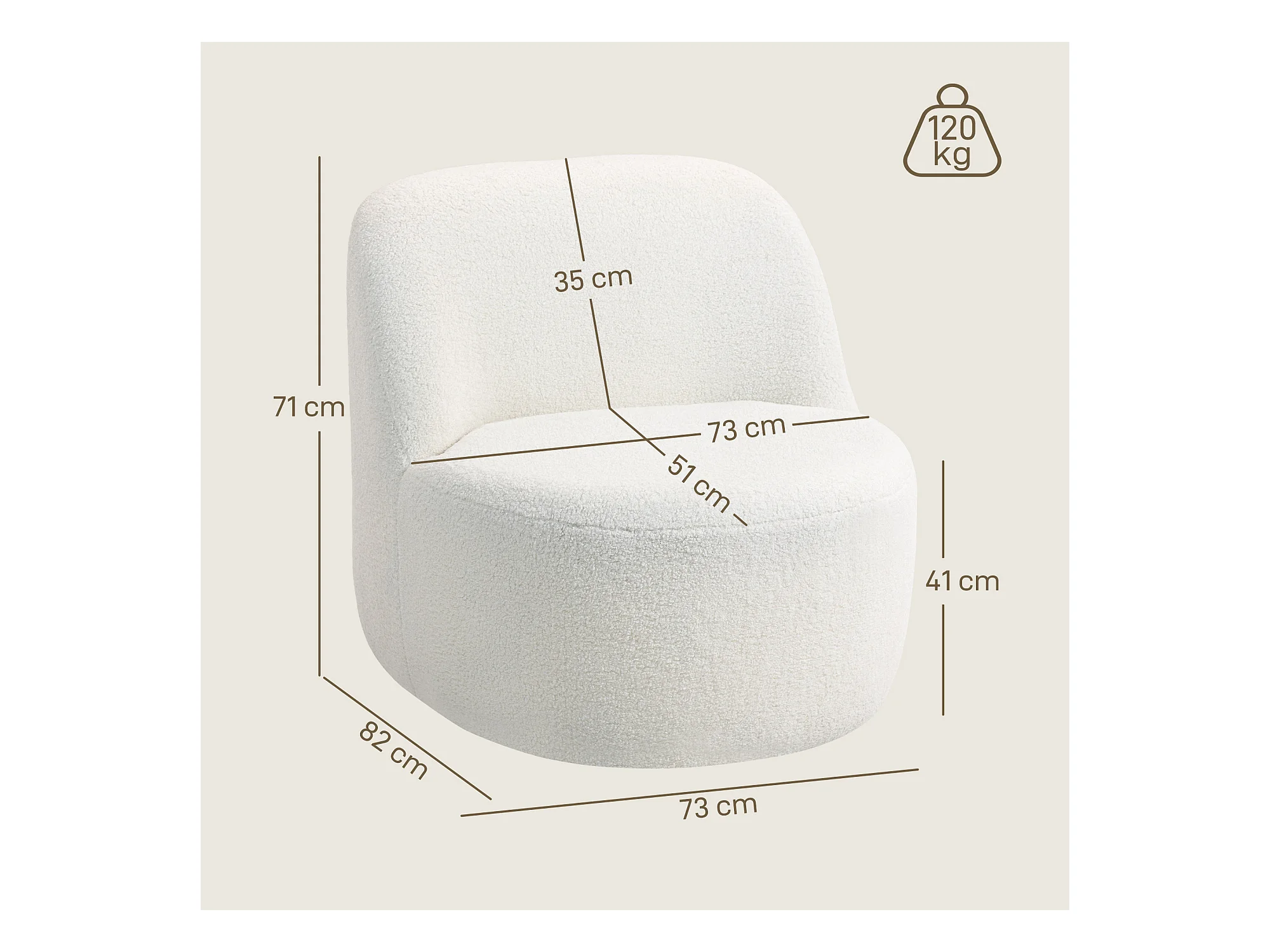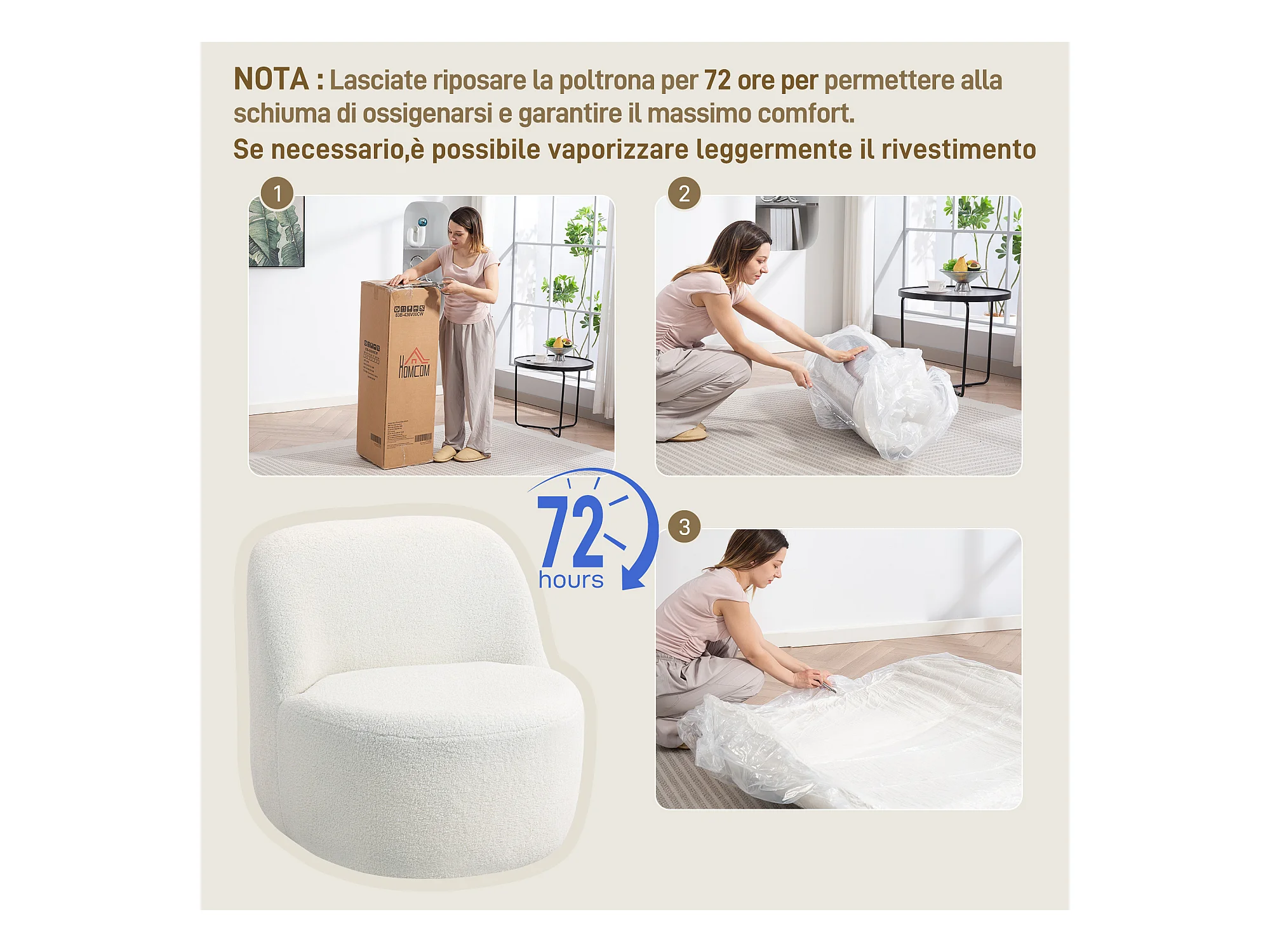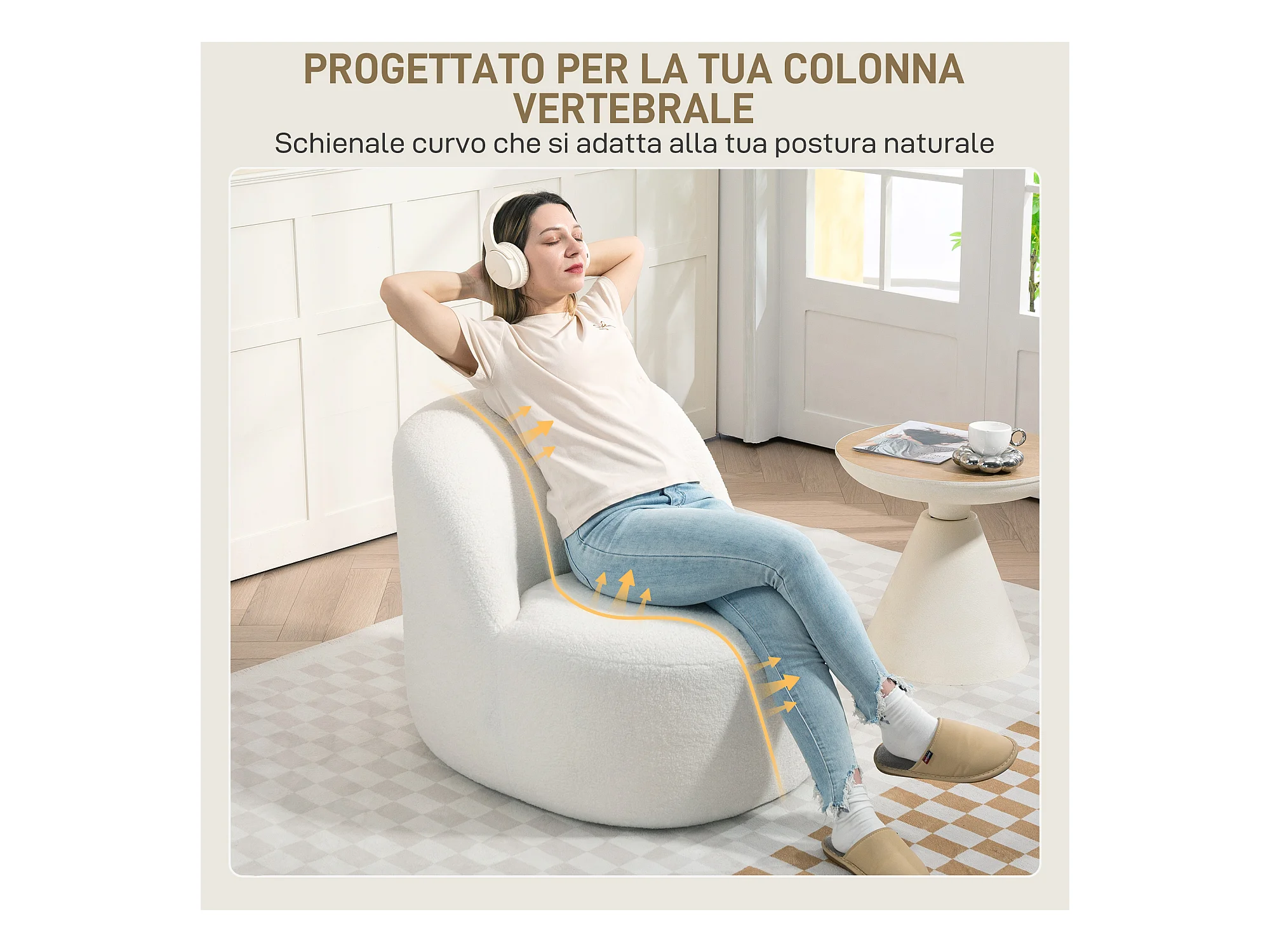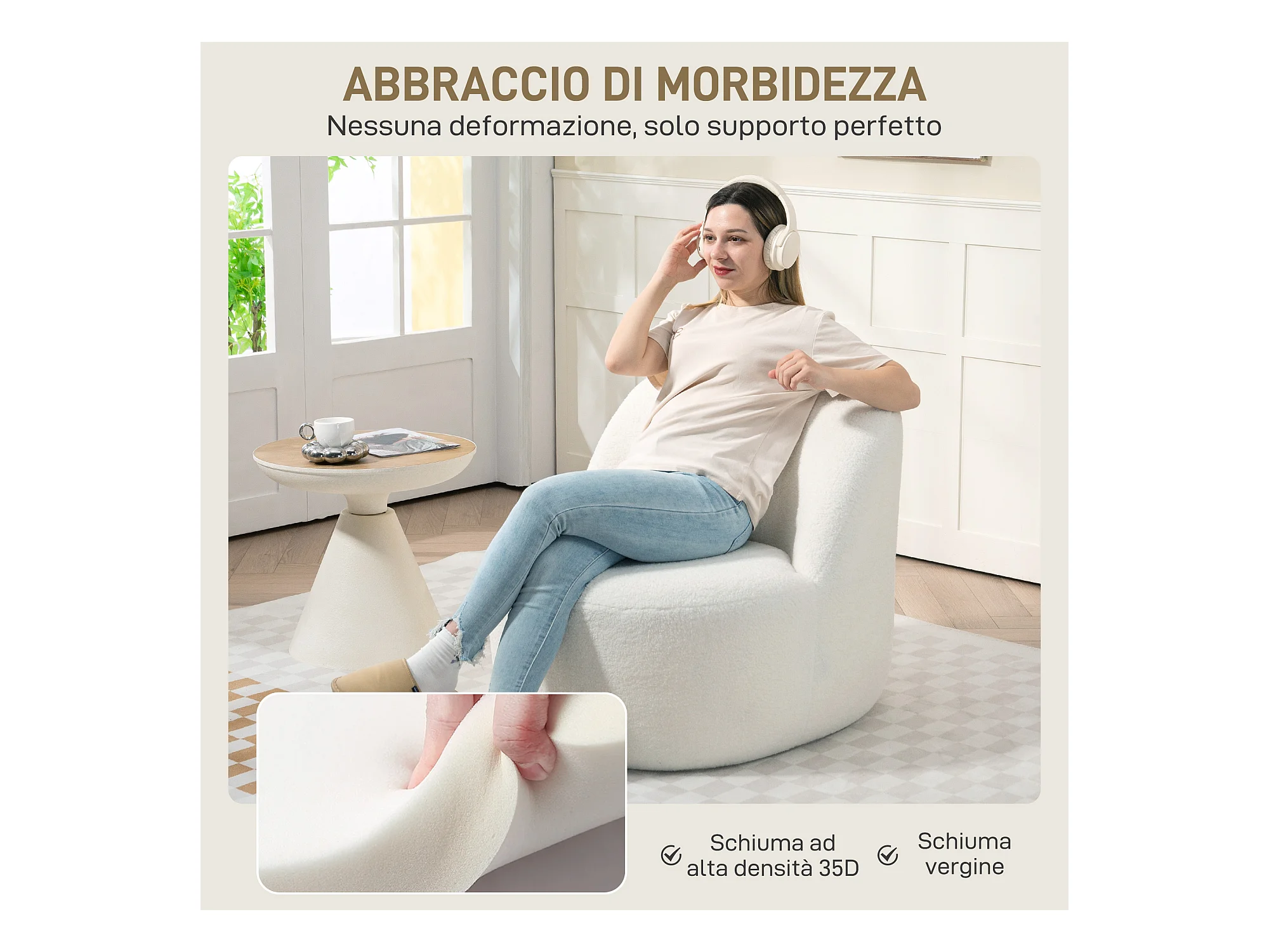 Poltrona da salotto stile nordico in tessuto sherpa e legno crema