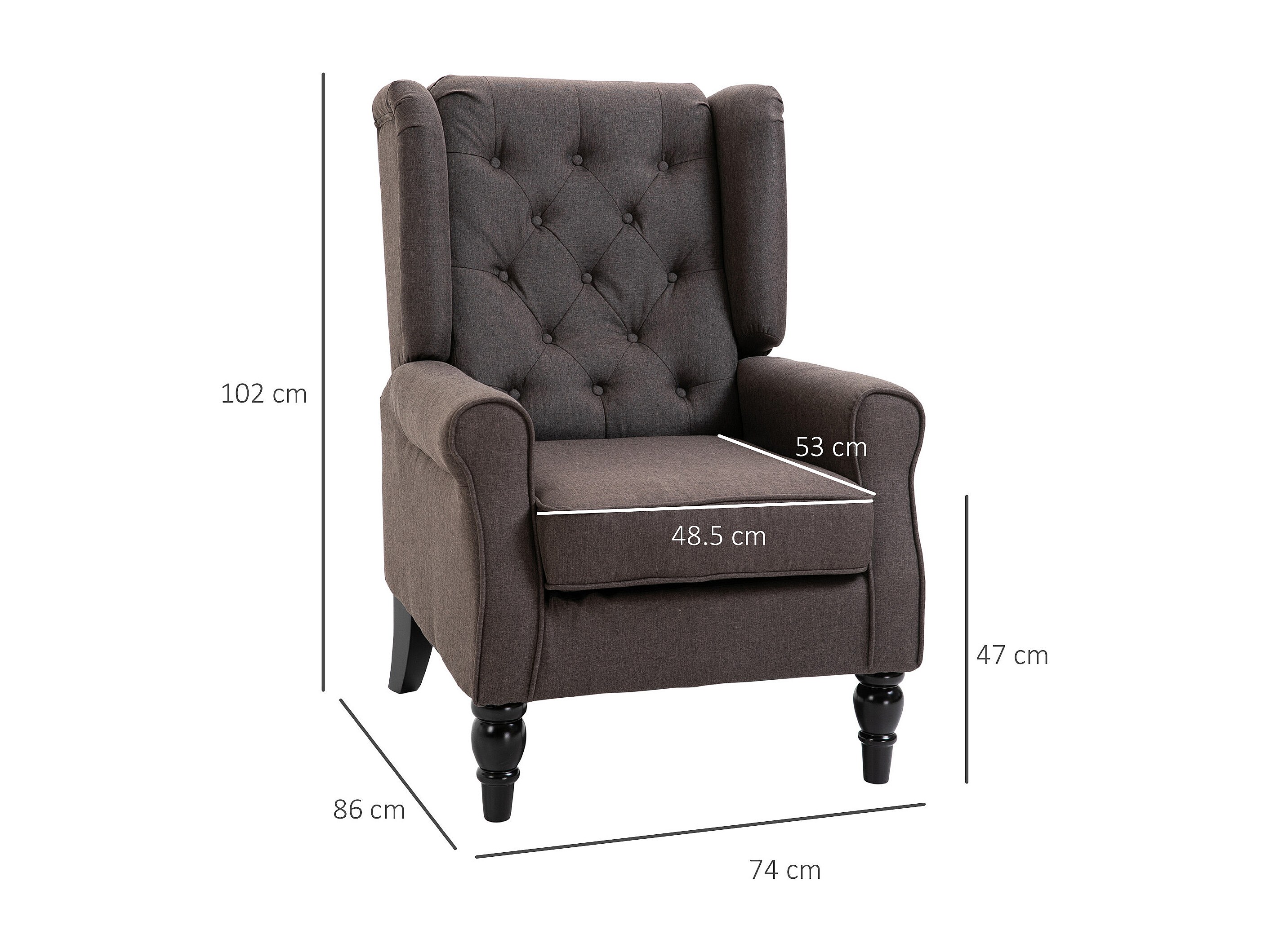 Poltrona per salotto stile francese con cuscini 74x86x102 cm marrone