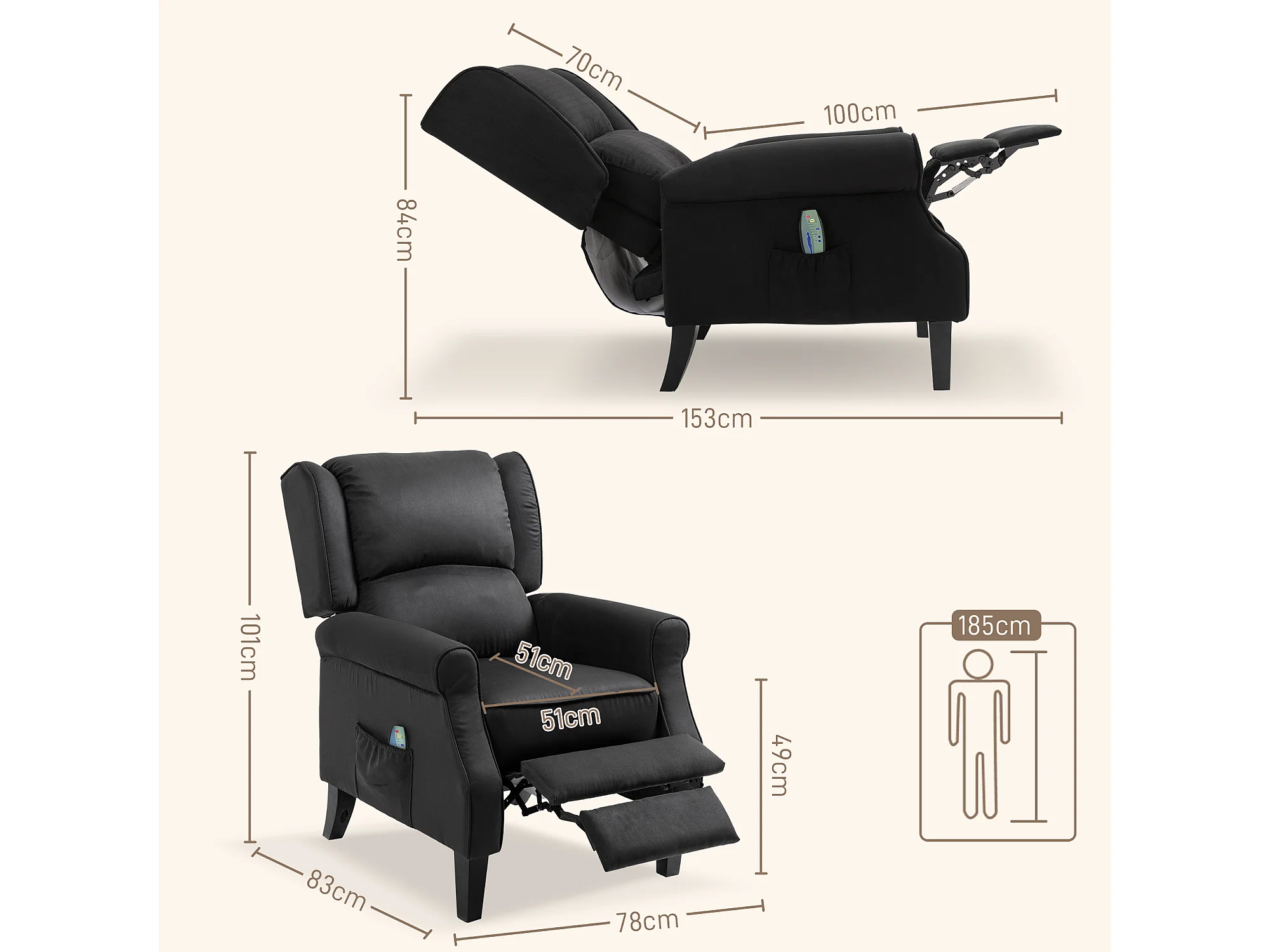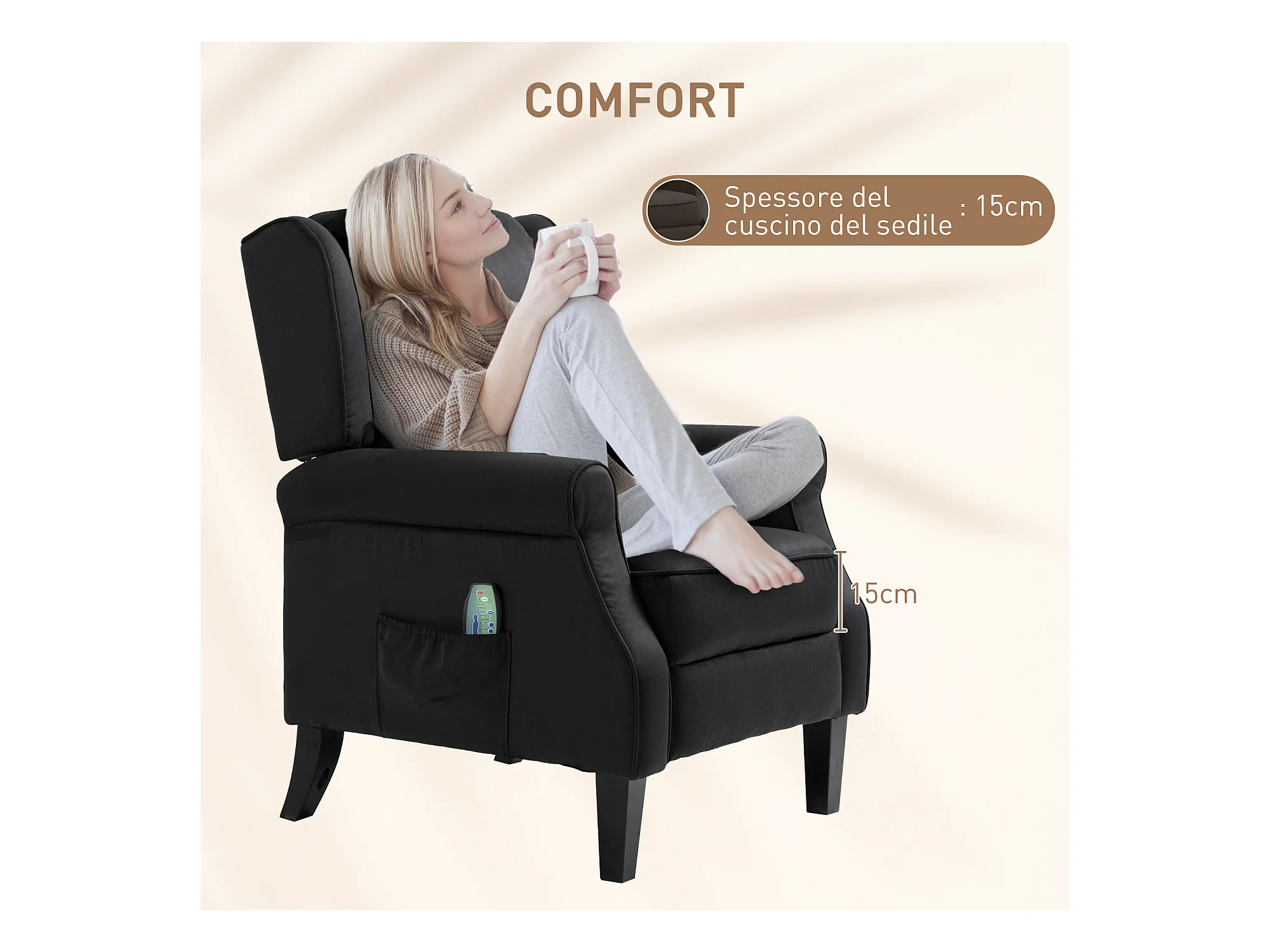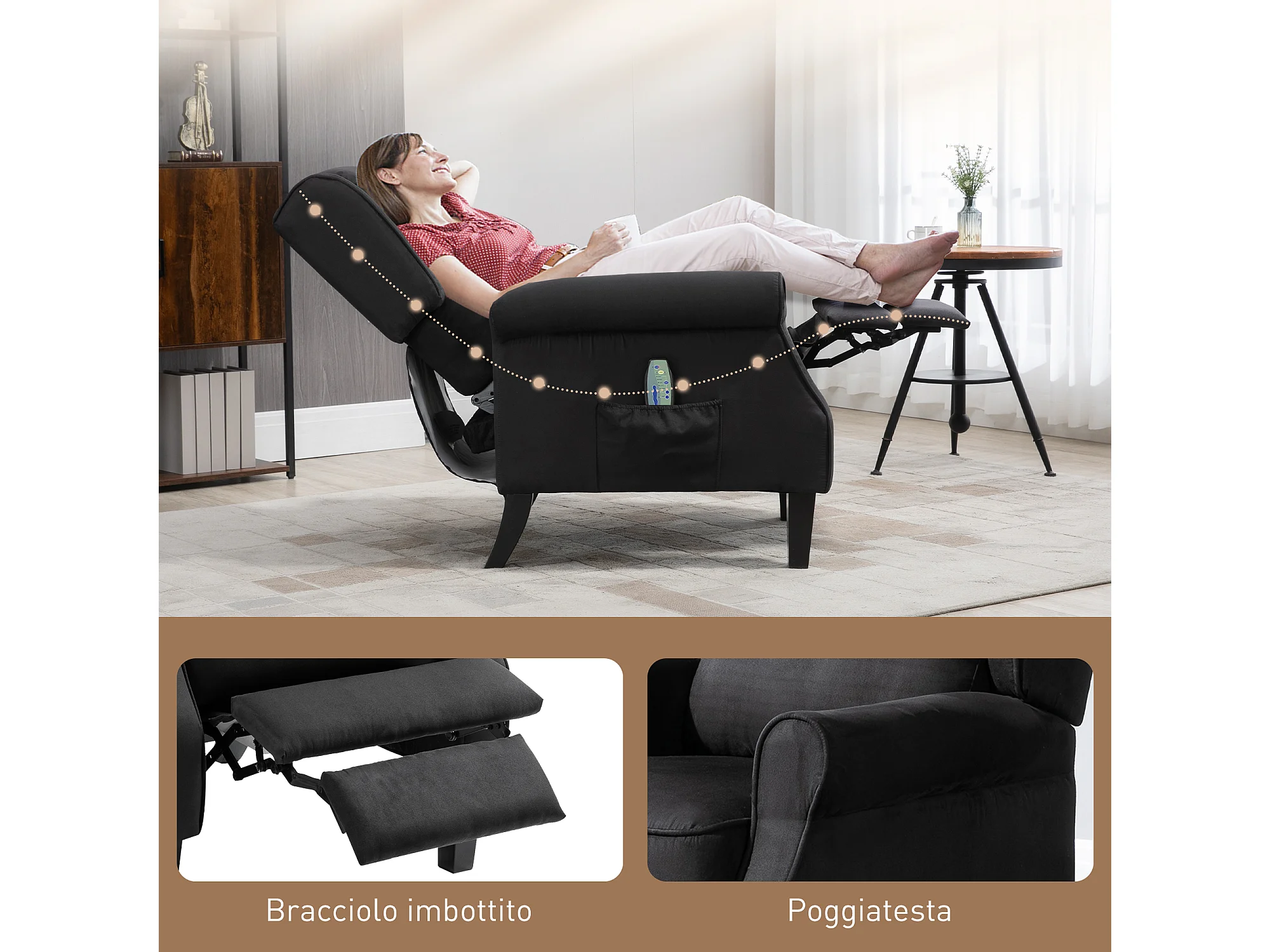 Poltrona Massaggiante Reclinabile Nera in Tessuto