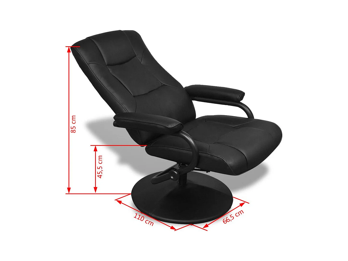 Poltrona Relax con Poggiapiedi Nera in Vera Pelle