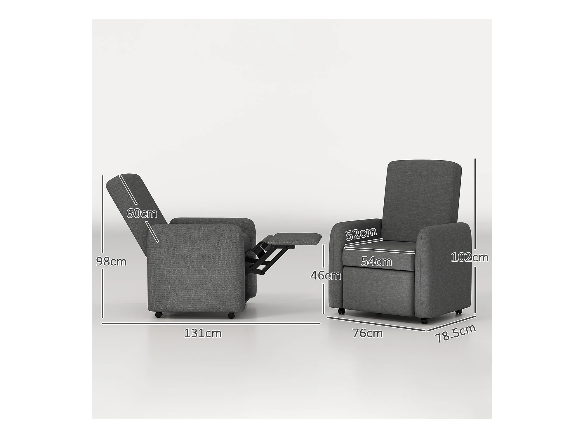 Fauteuil relax inclinabile 150° con assise lin, grigio foncé pour salon