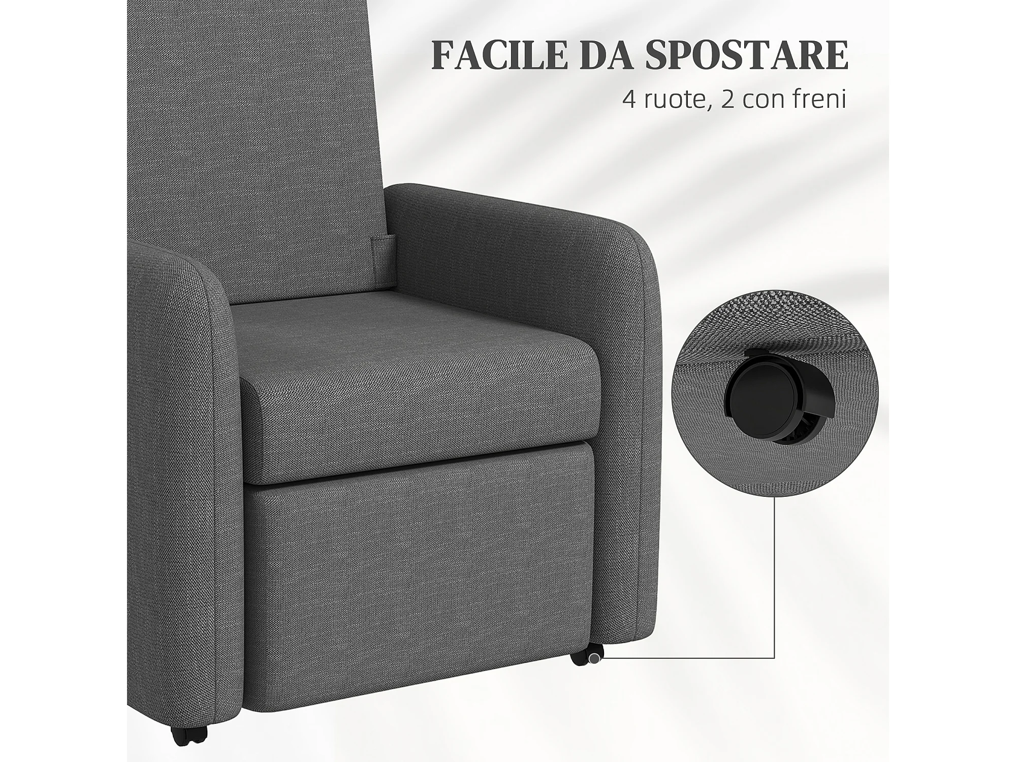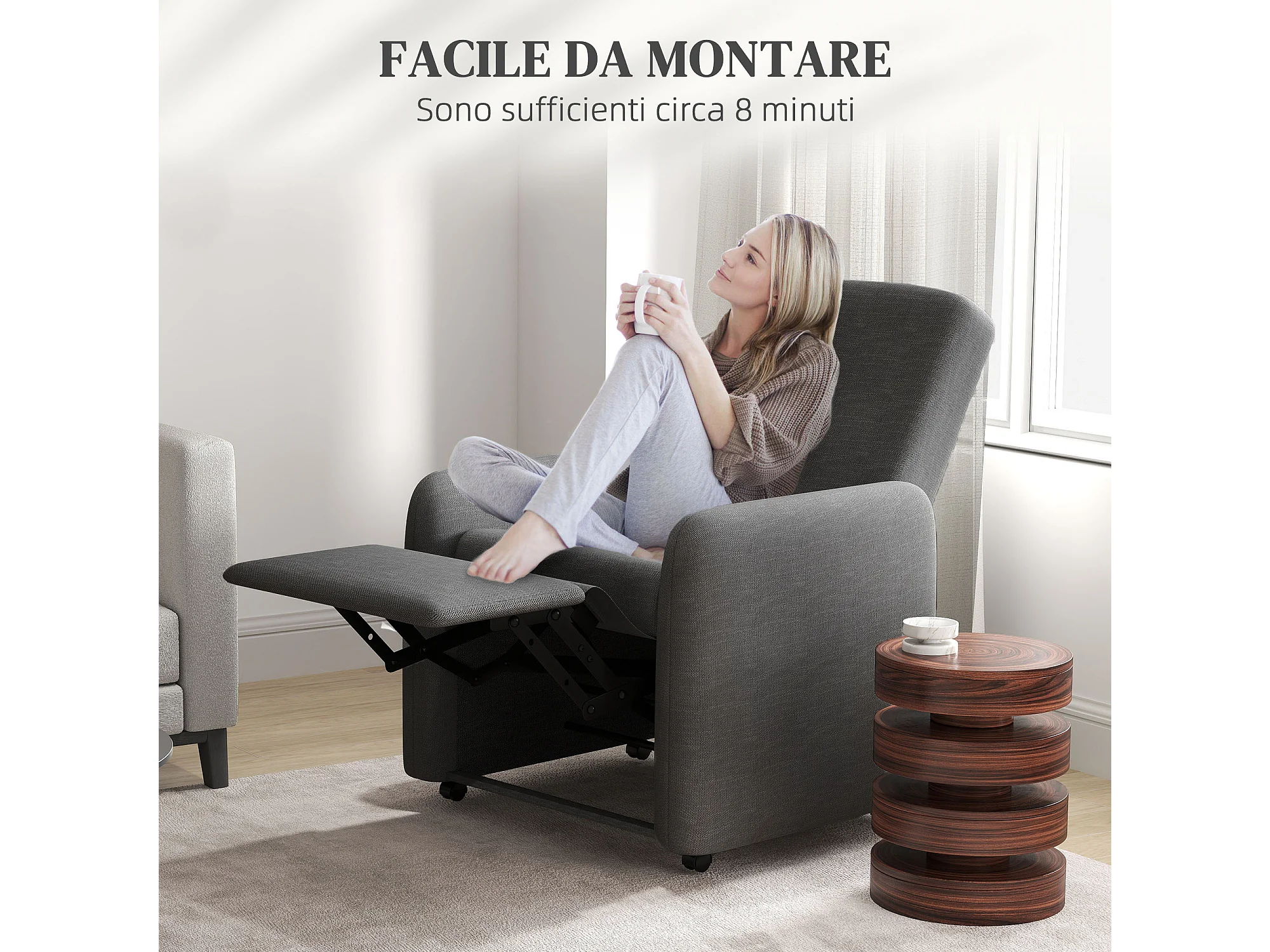 Poltrona reclinabile 160° in tessuto effetto lino grigio