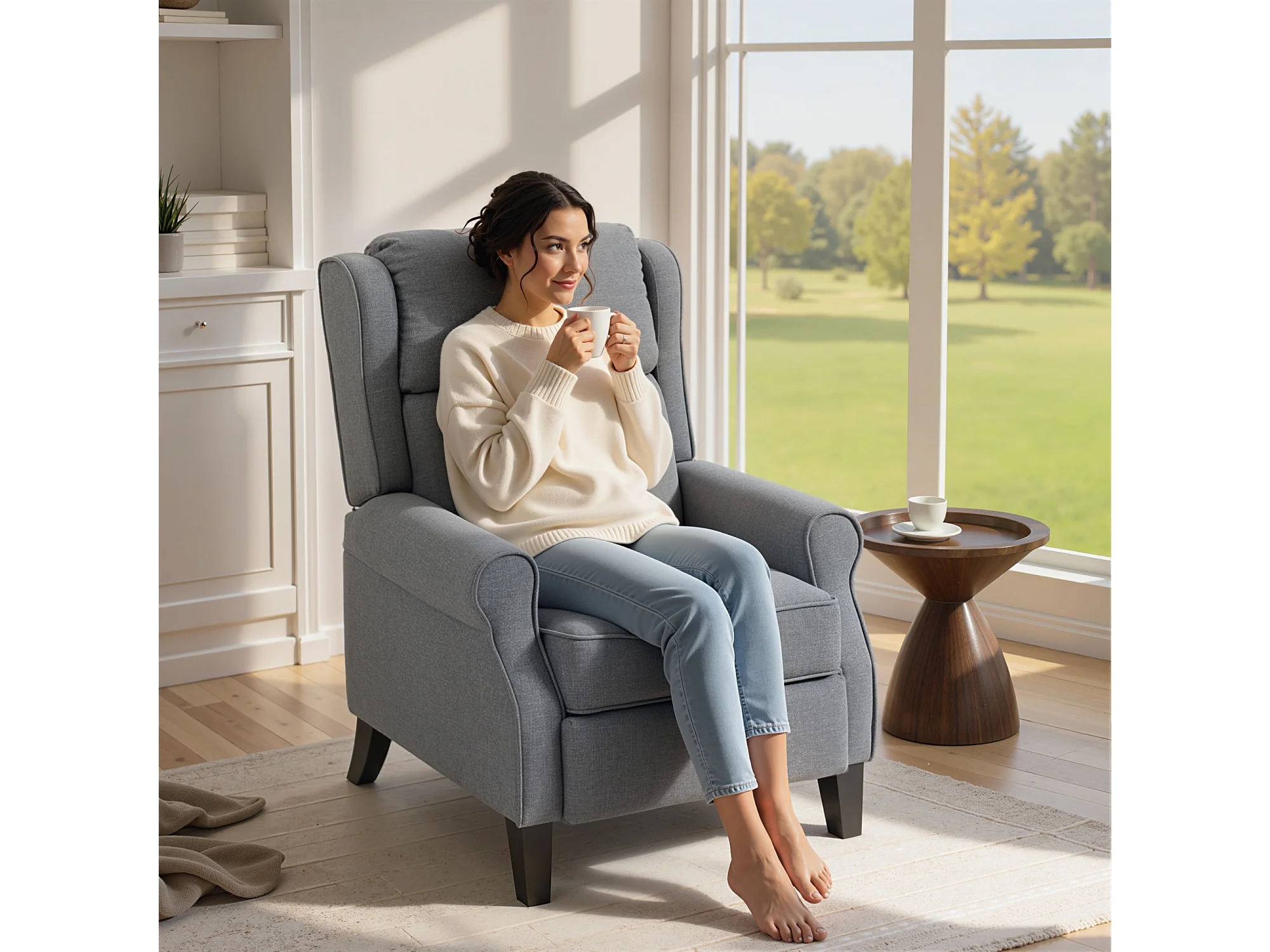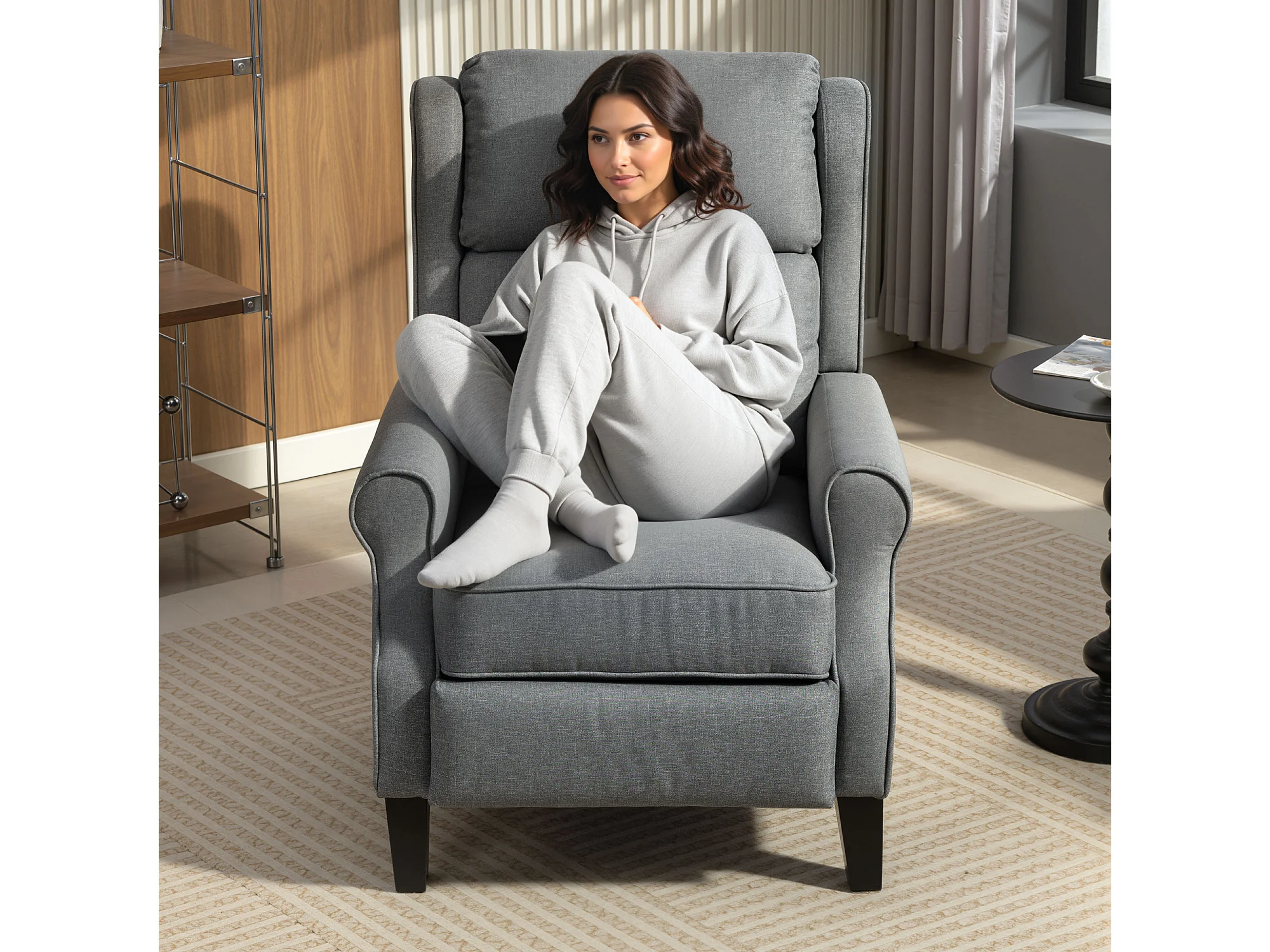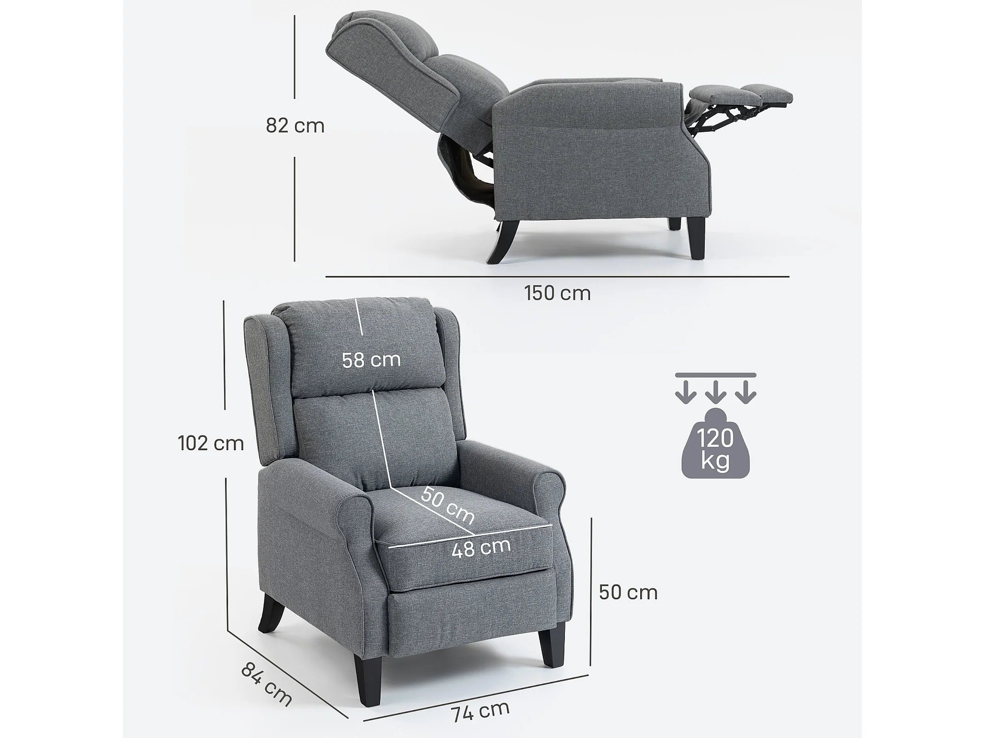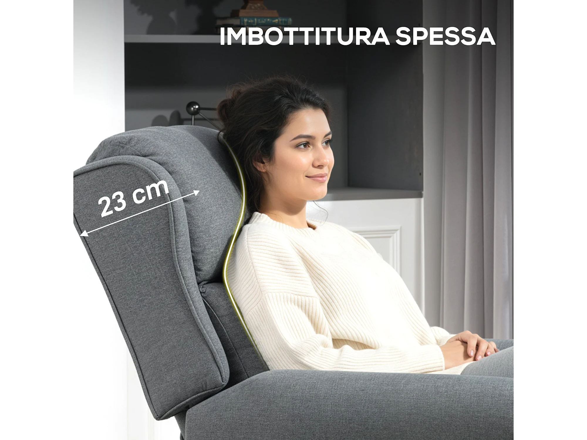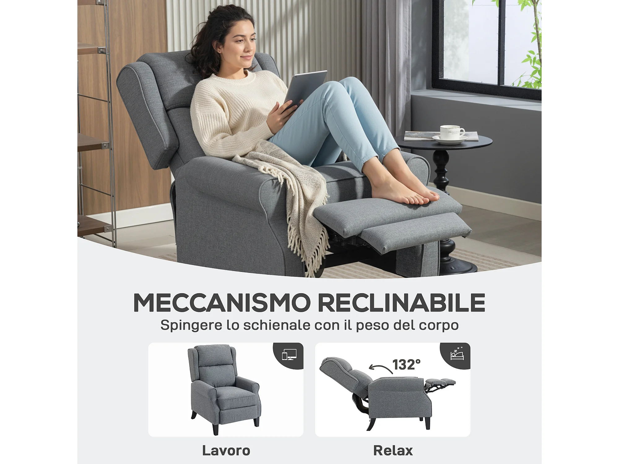 Poltrona reclinabile 132° effetto lino con poggiapiedi grigio