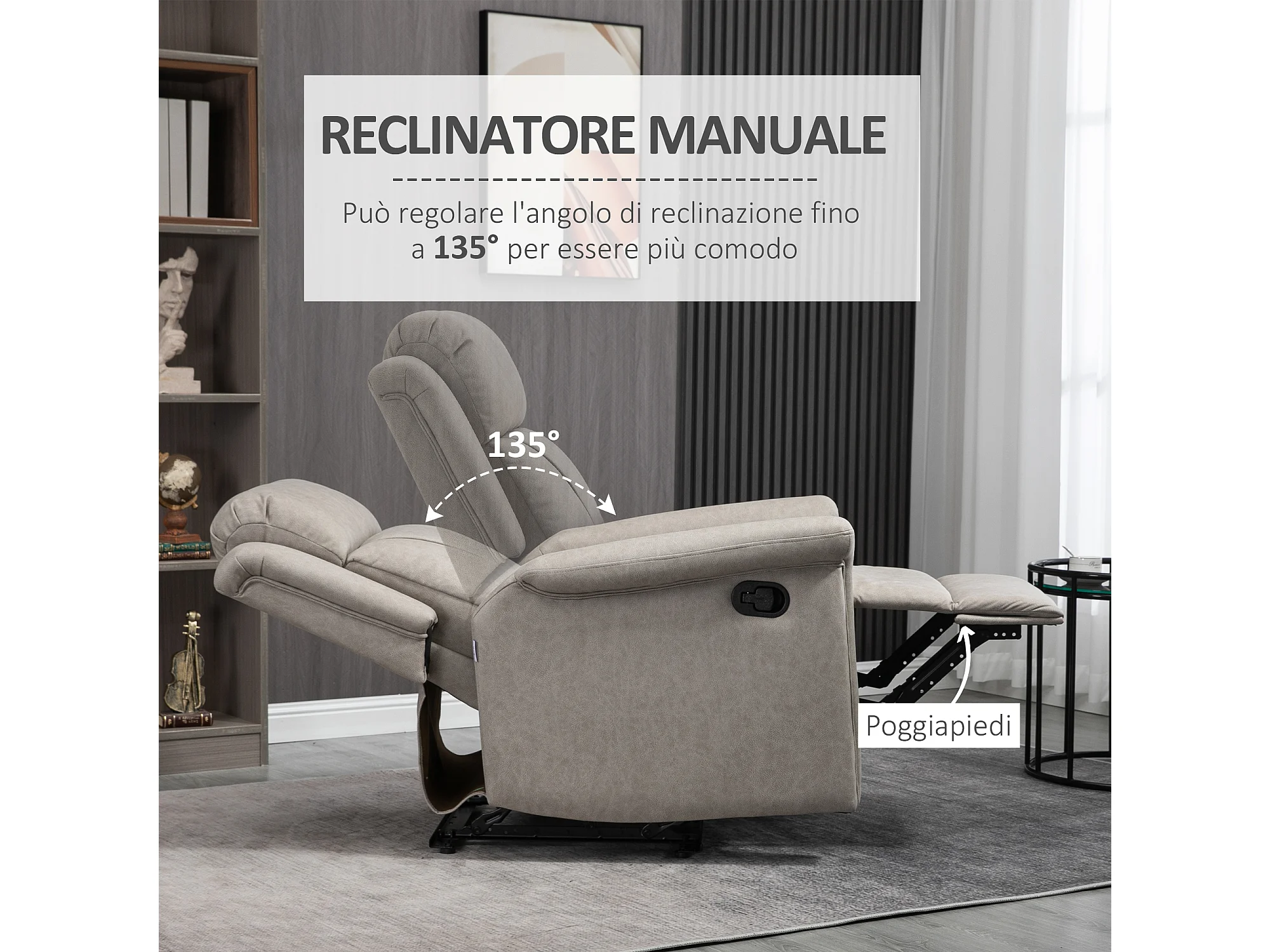 Poltrona reclinabile 135° con poggiapiedi e poggiatesta grigio