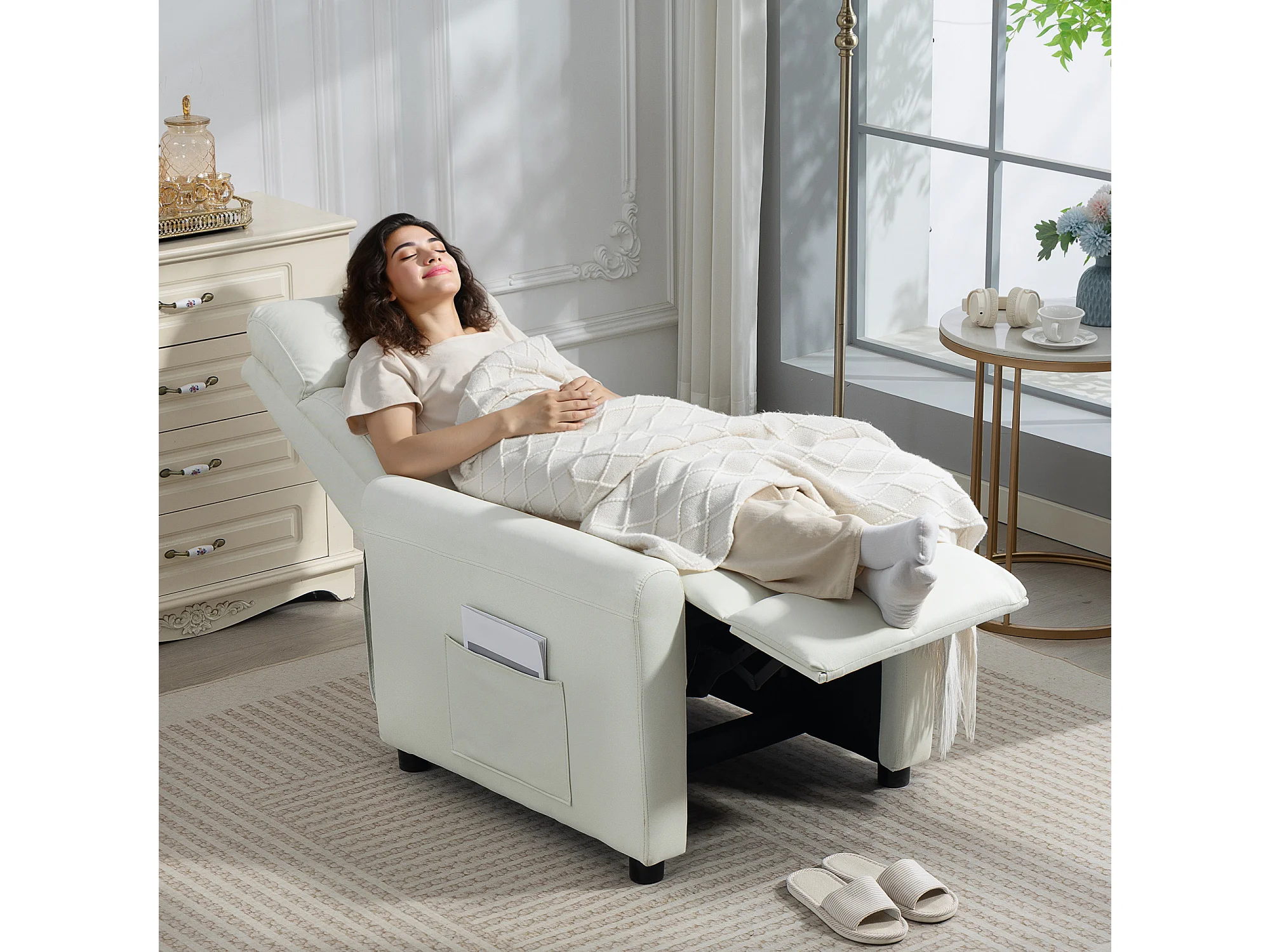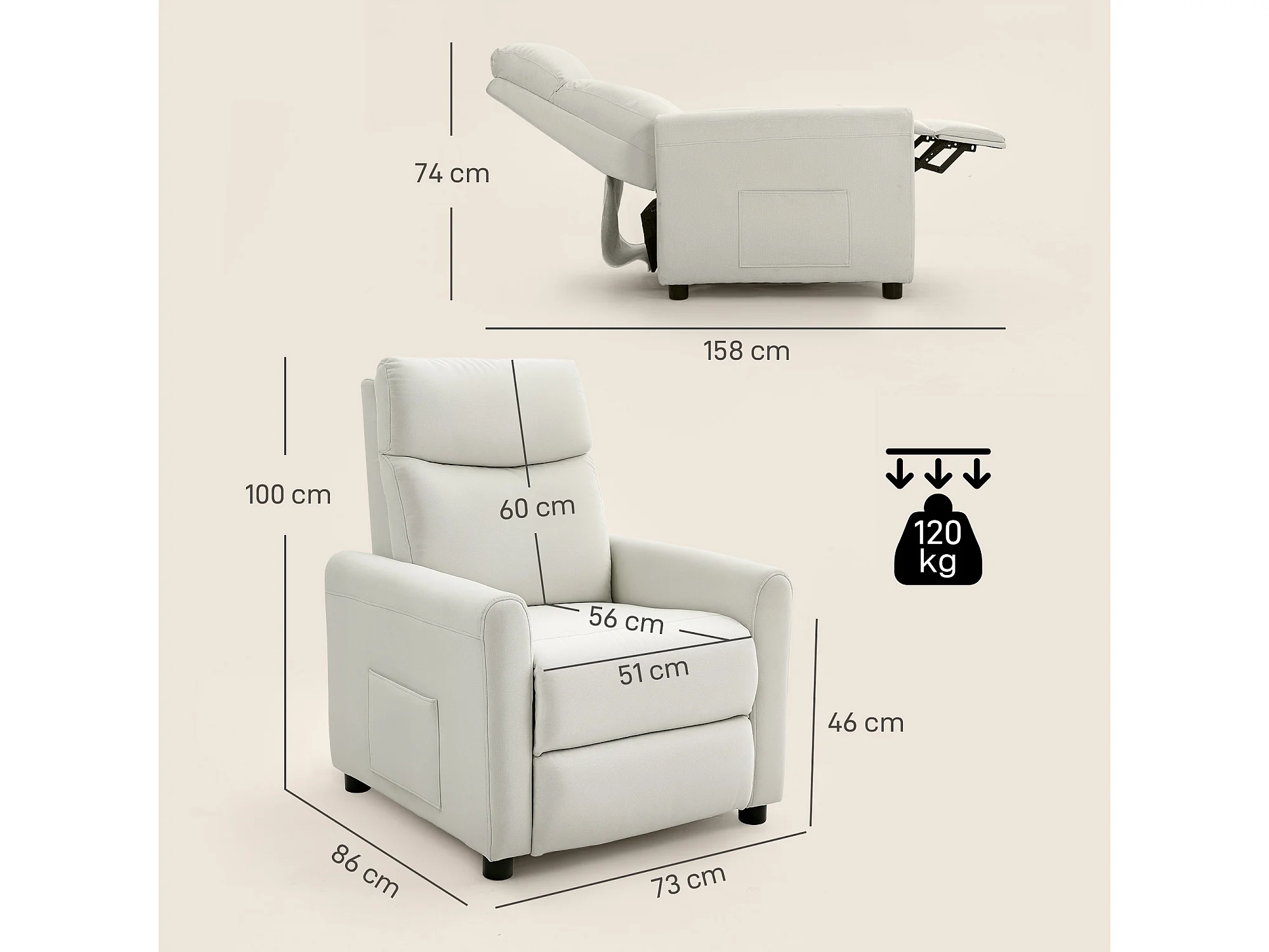 Poltrona reclinabile 135° max in tessuto effetto lino bianco crema