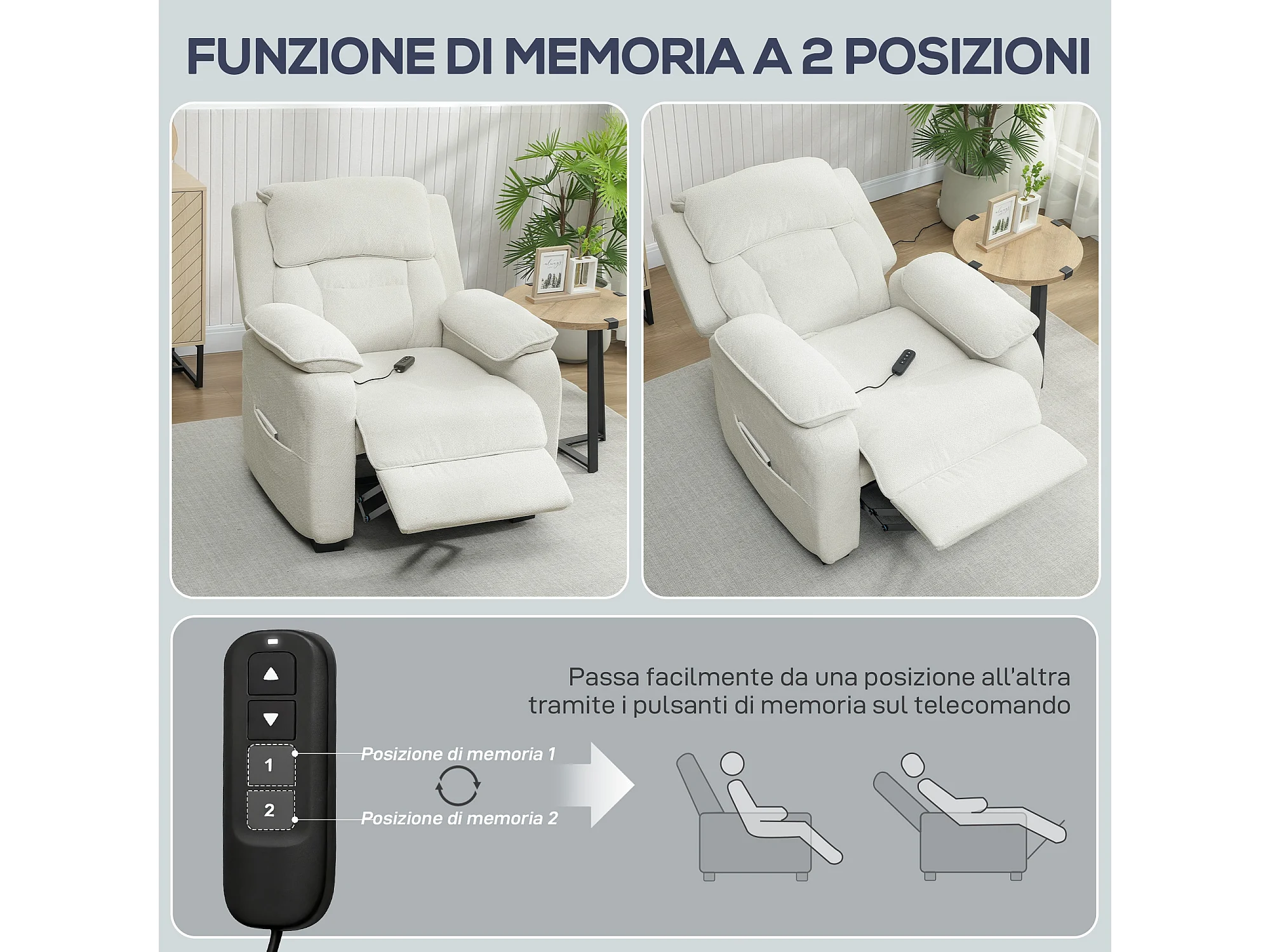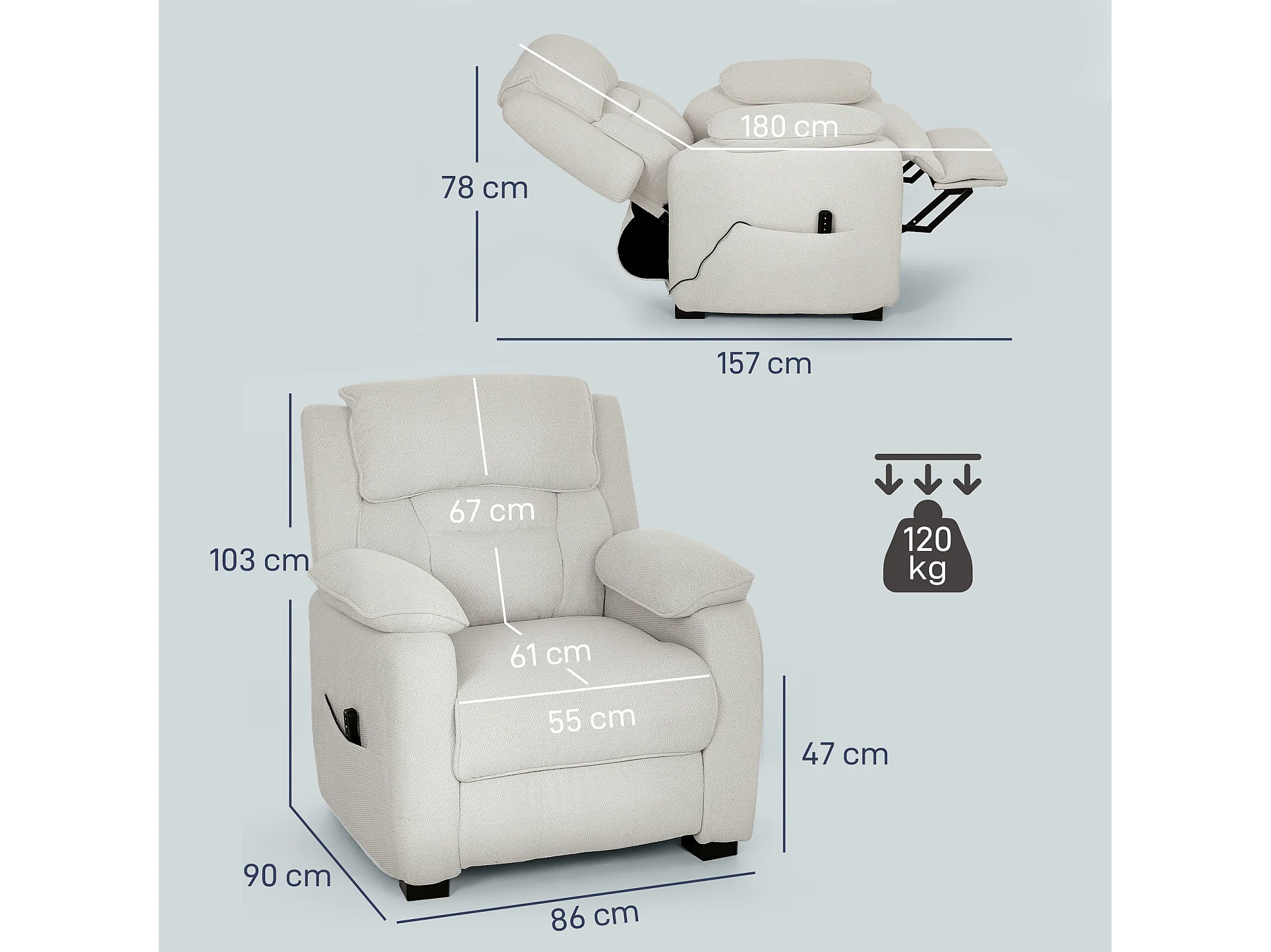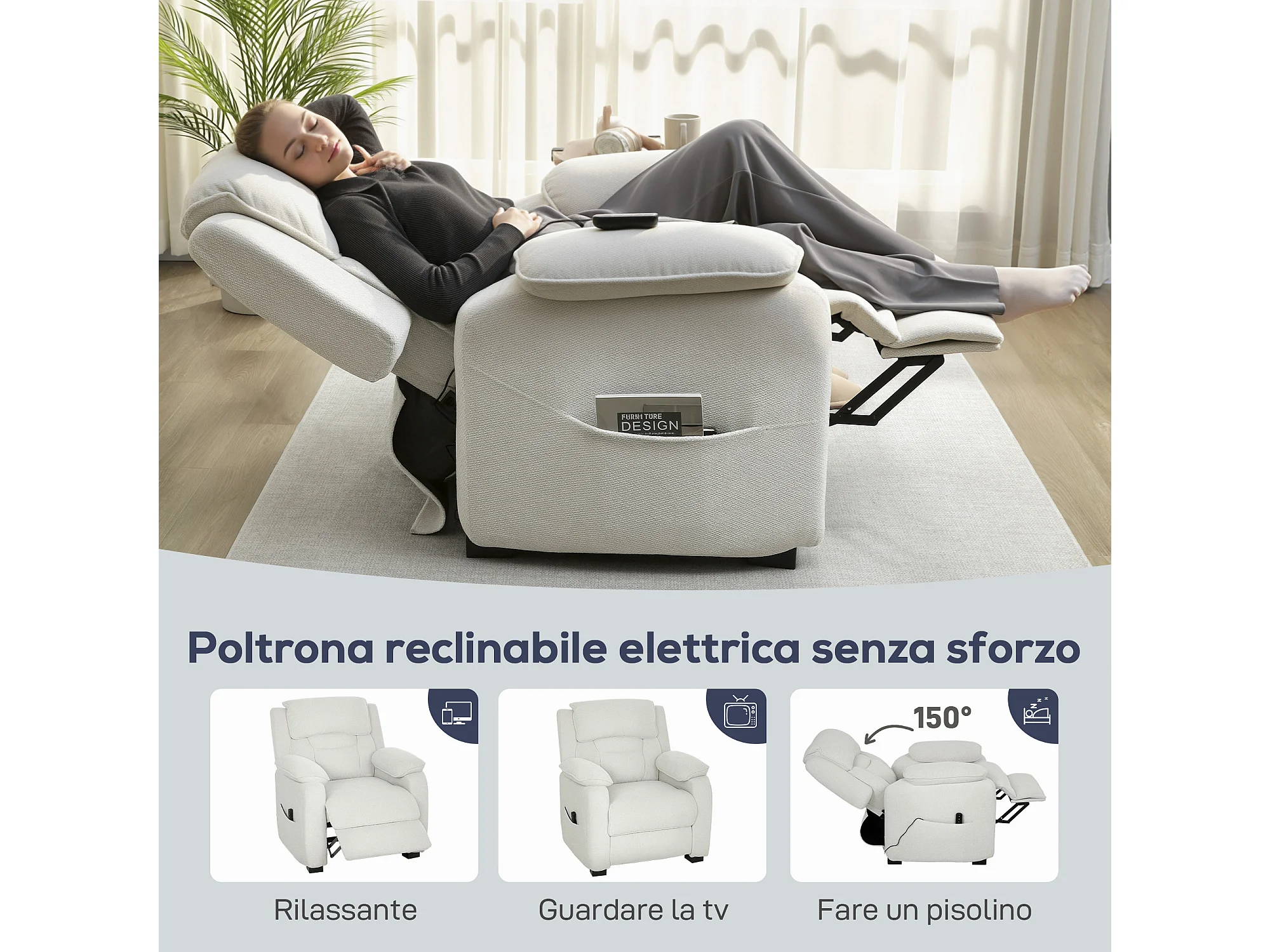 Poltrona reclinabile 150° vellutata con poggiapiedi telecomando beige