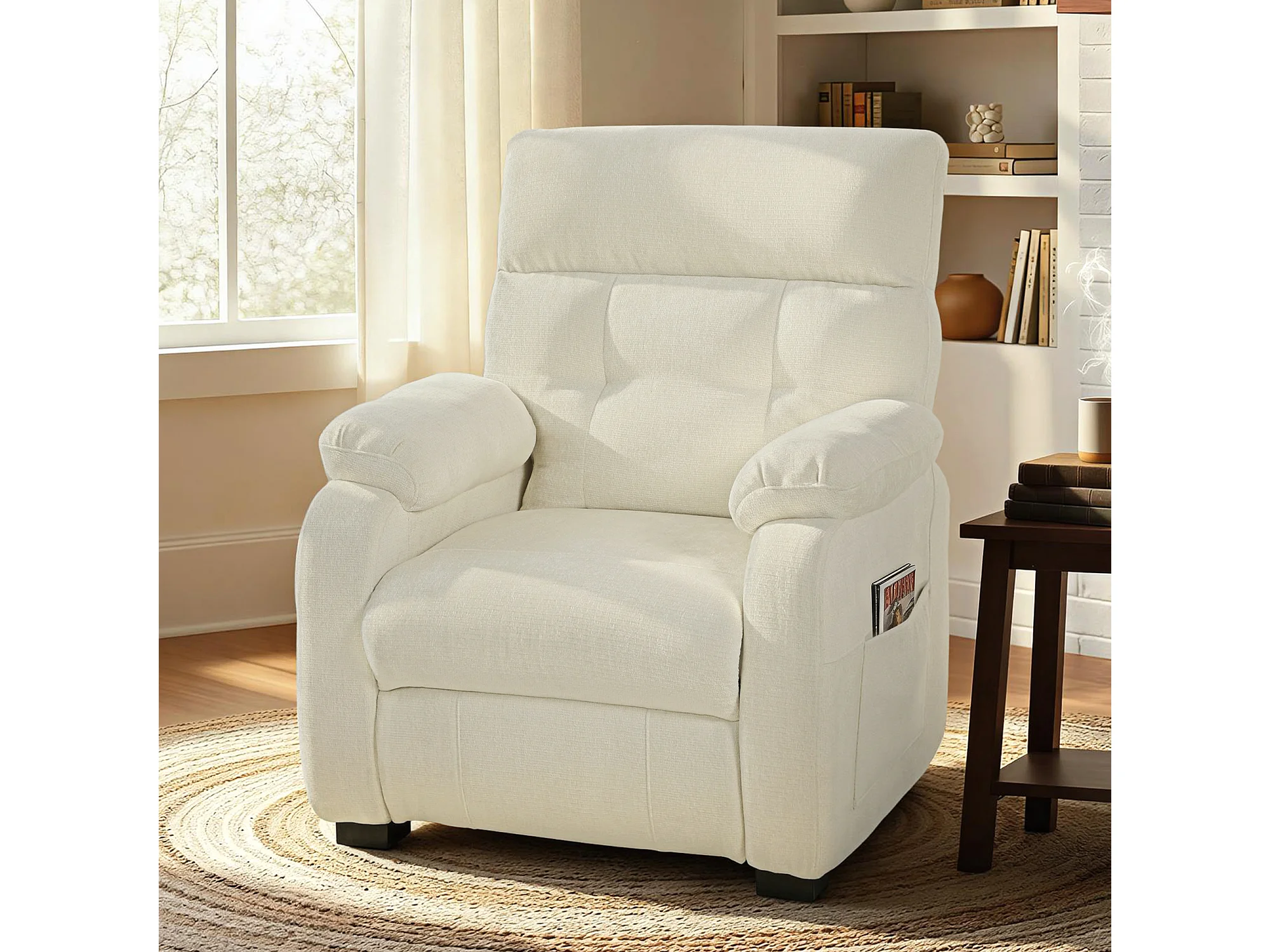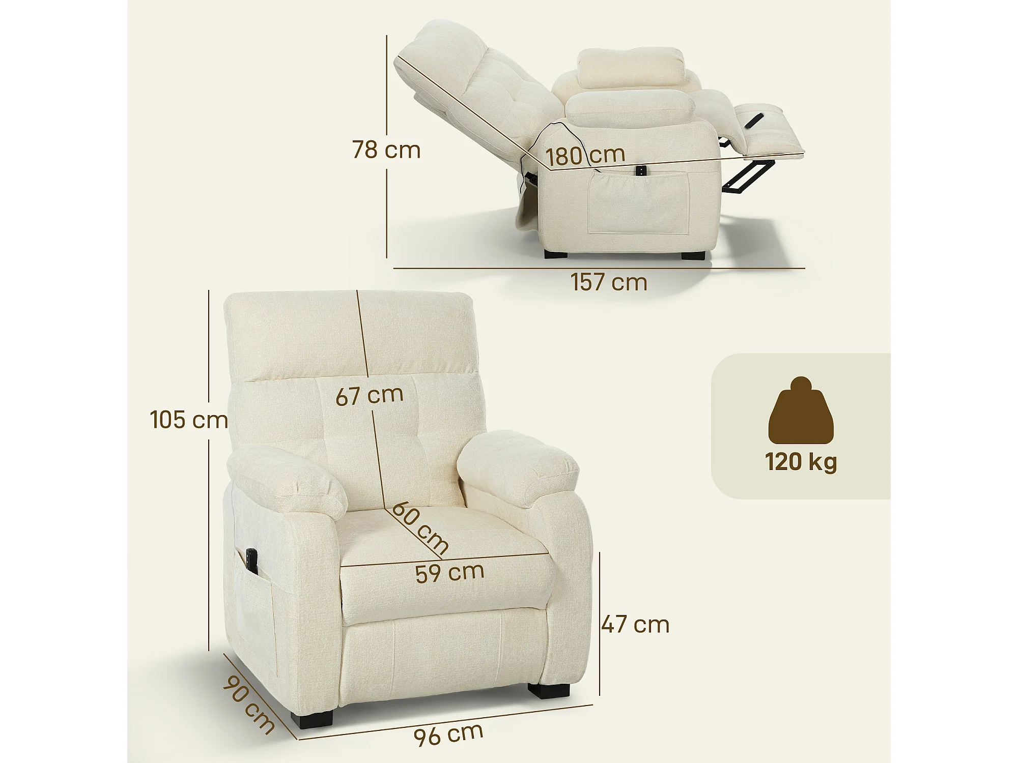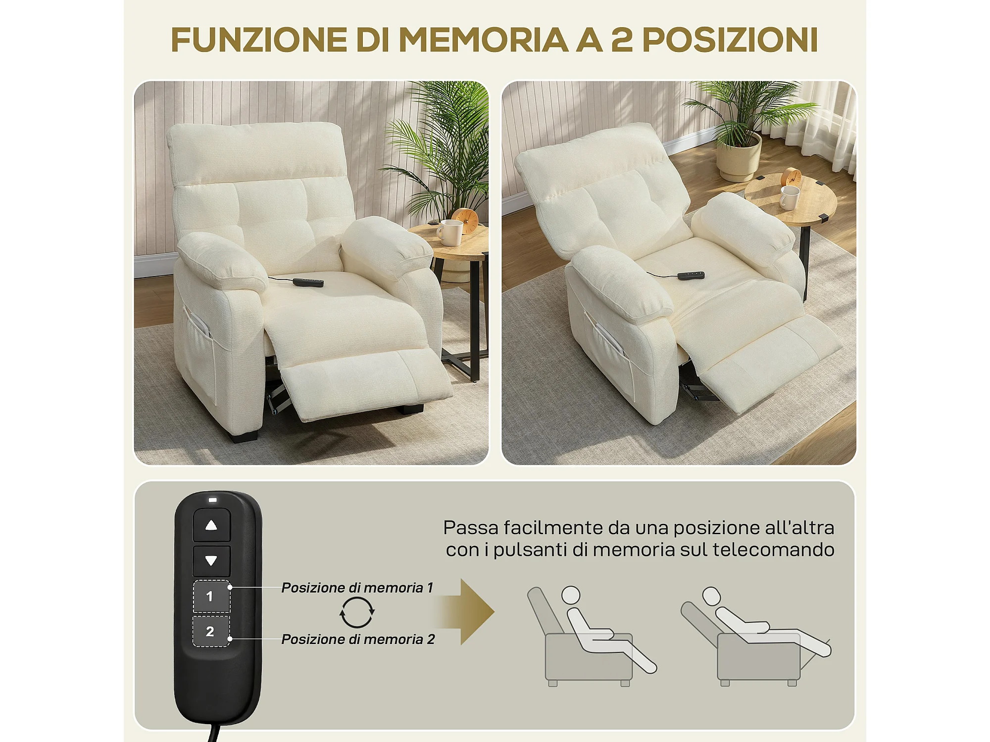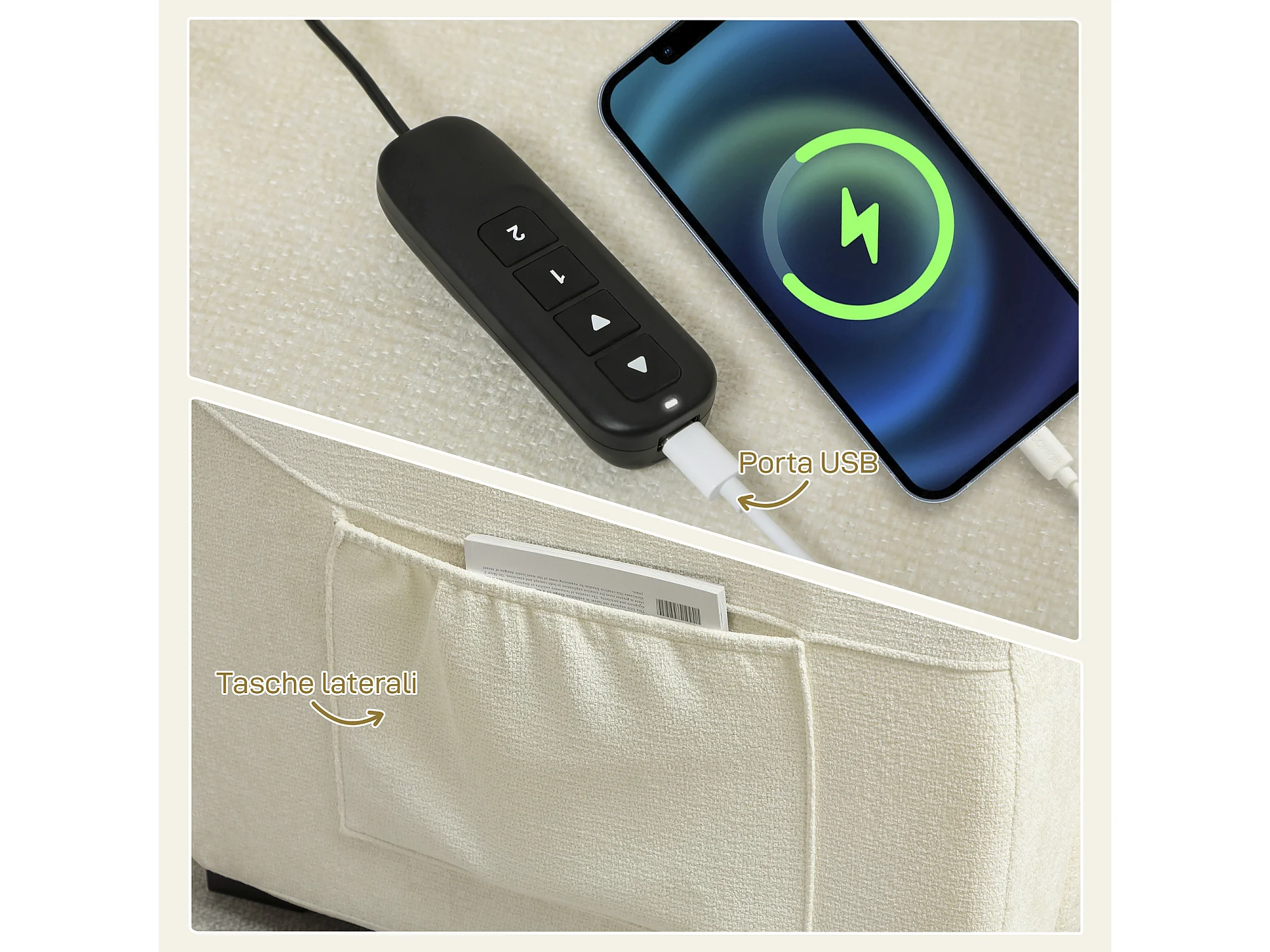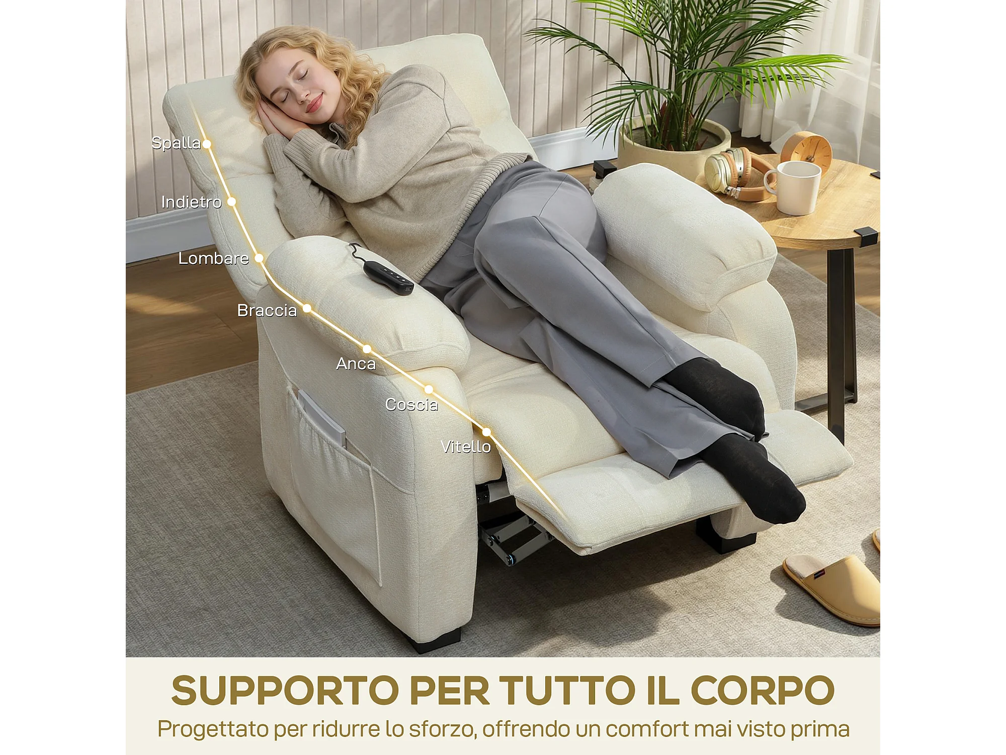 Poltrona reclinabile 150° vellutata con poggiapiedi telecomando bianca