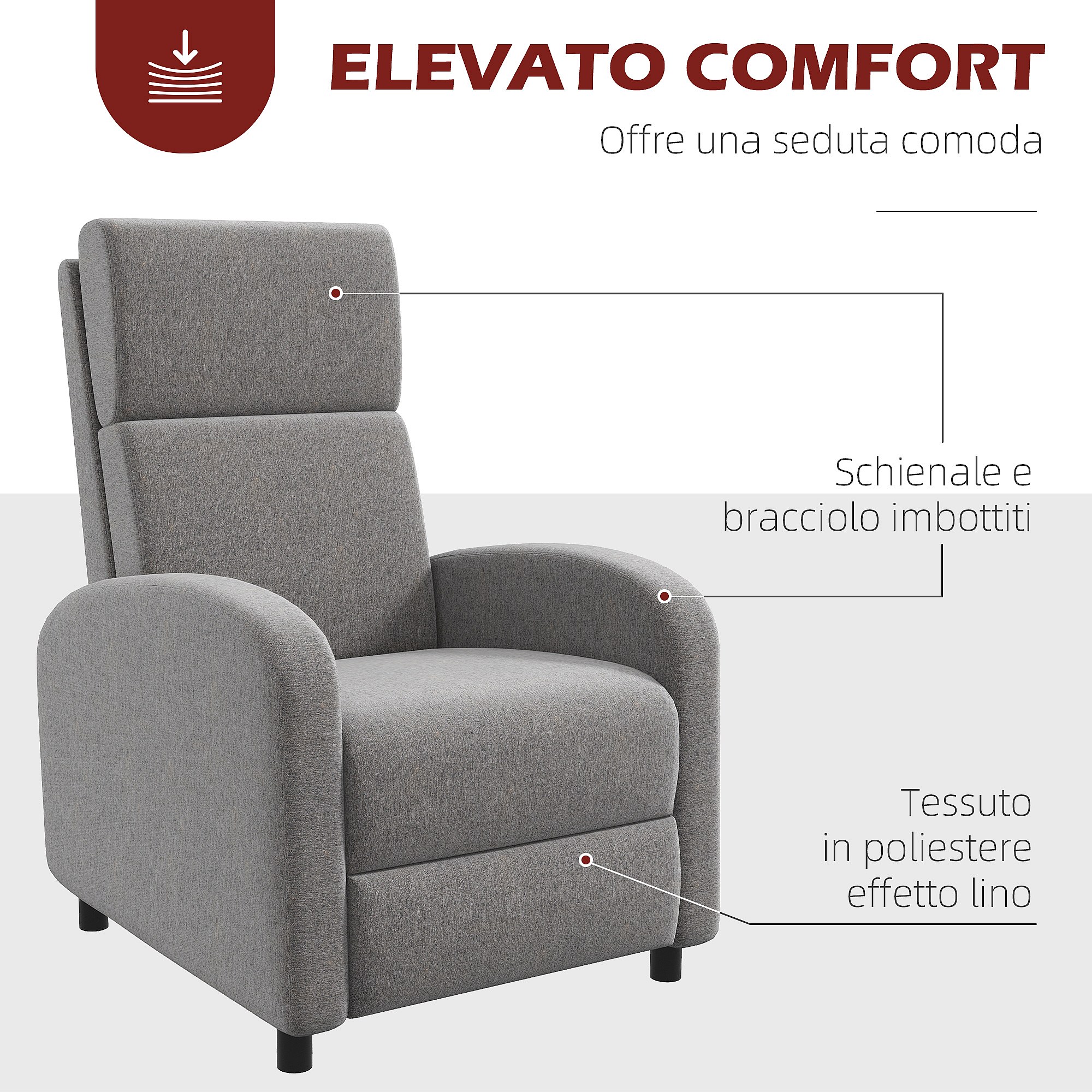 Poltrona reclinabile 160° in tessuto effetto lino grigio