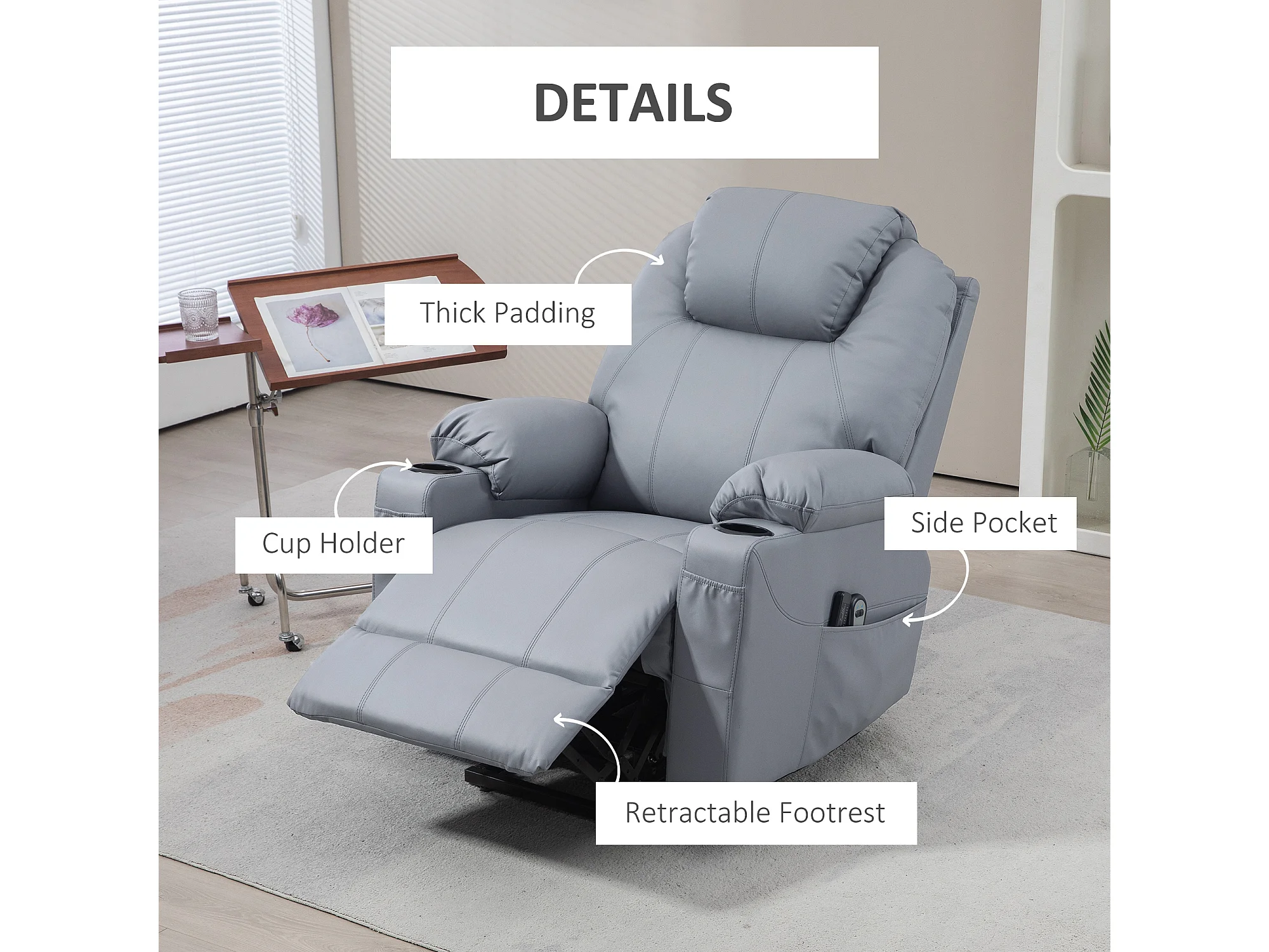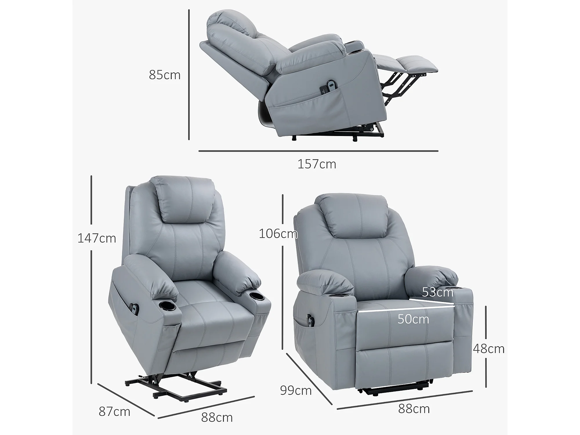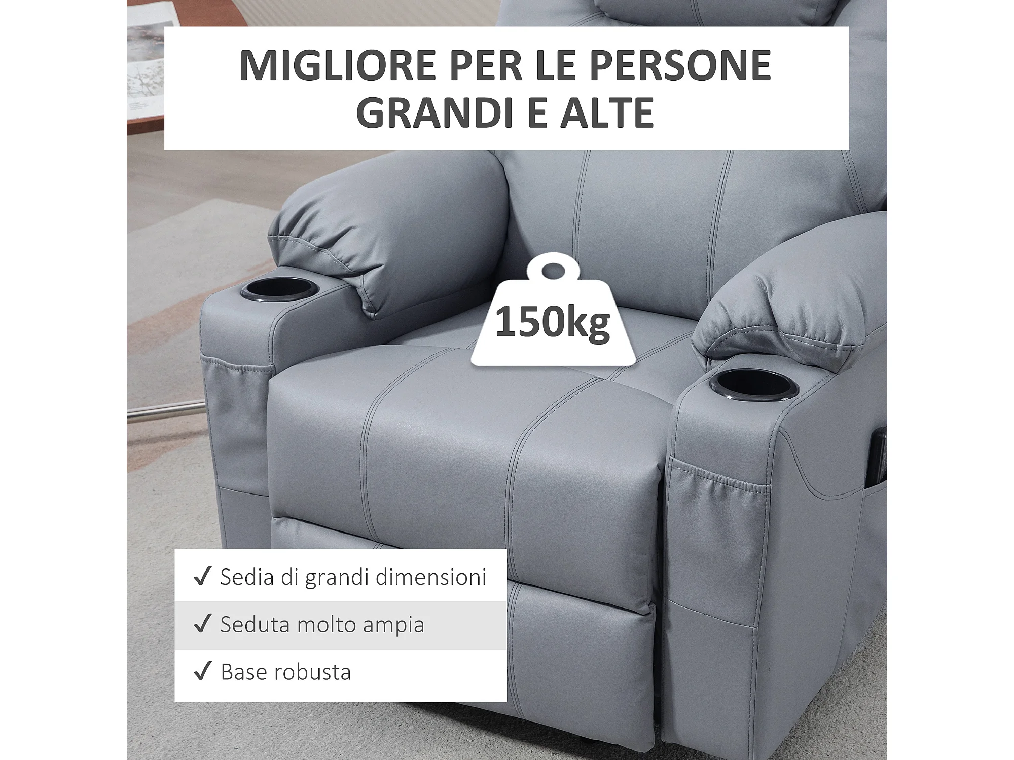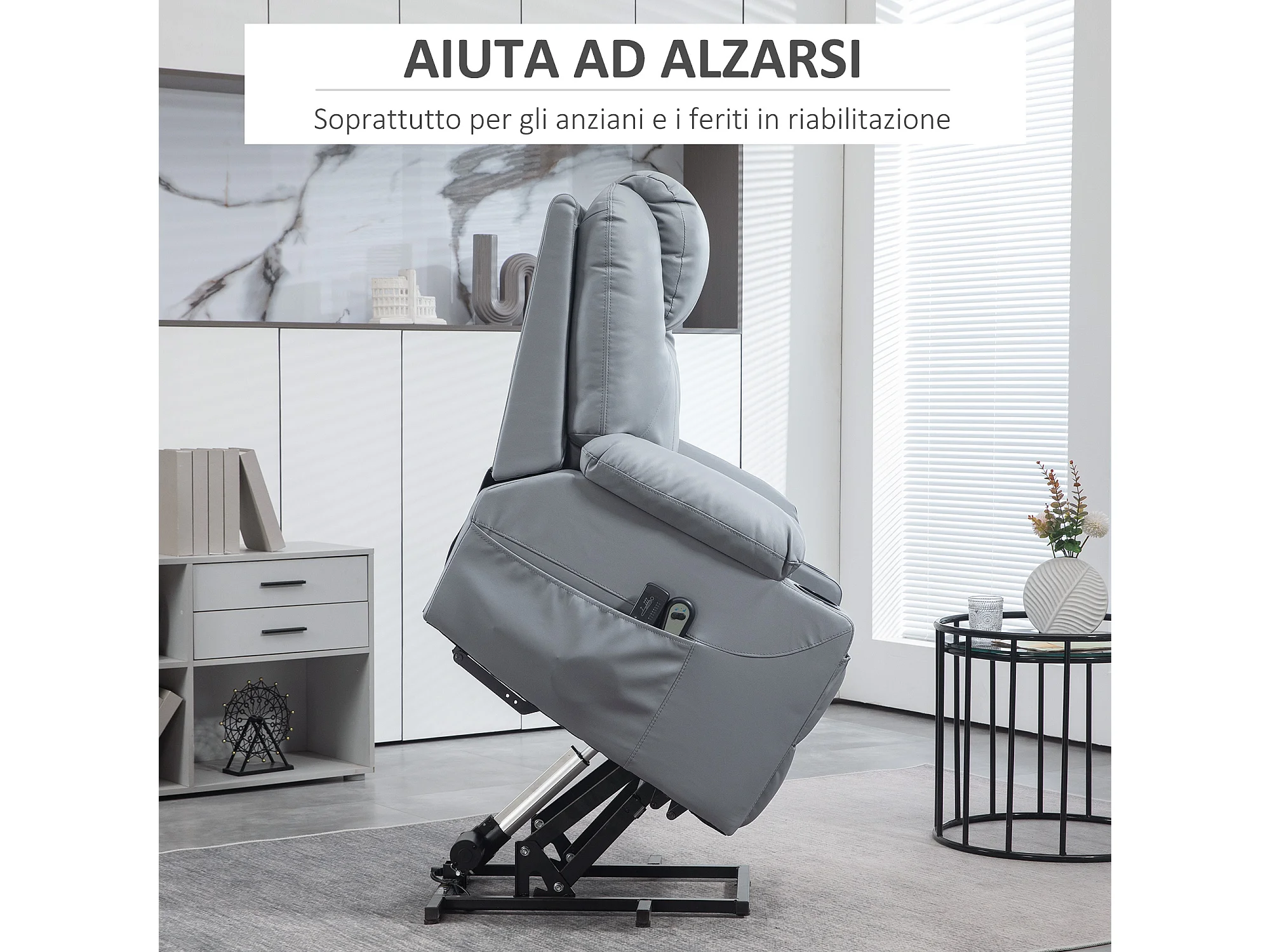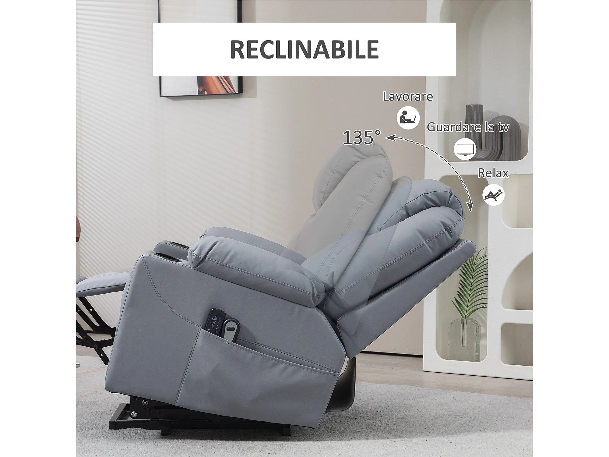 Poltrona reclinabile alzapersona massaggiante con telecomando grigio