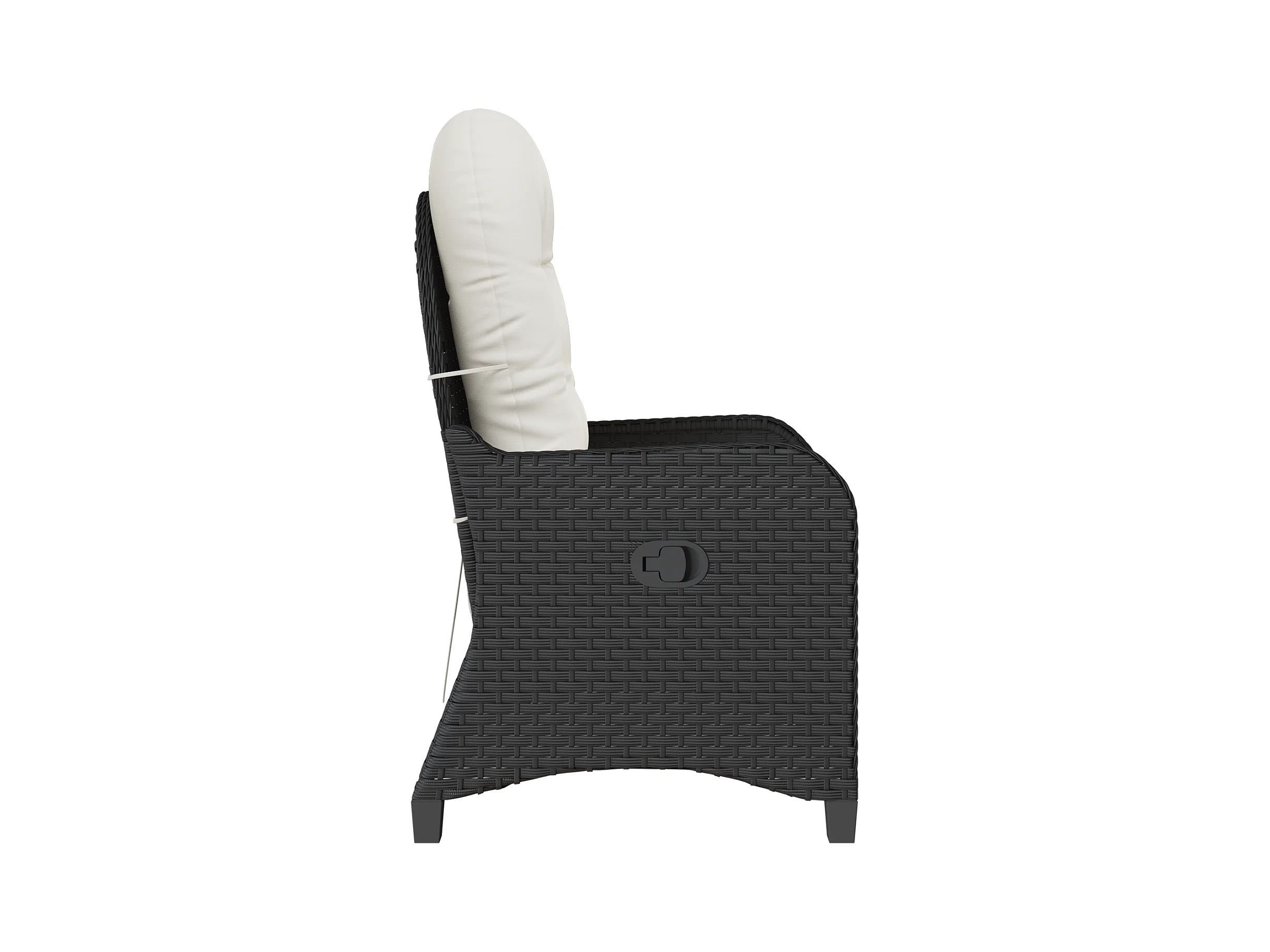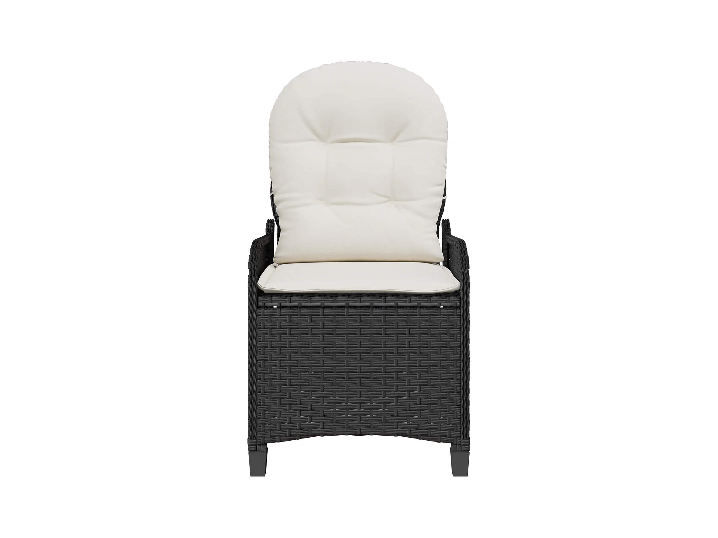Sedia da giardino reclinabile con cuscini in vimini di resina nera