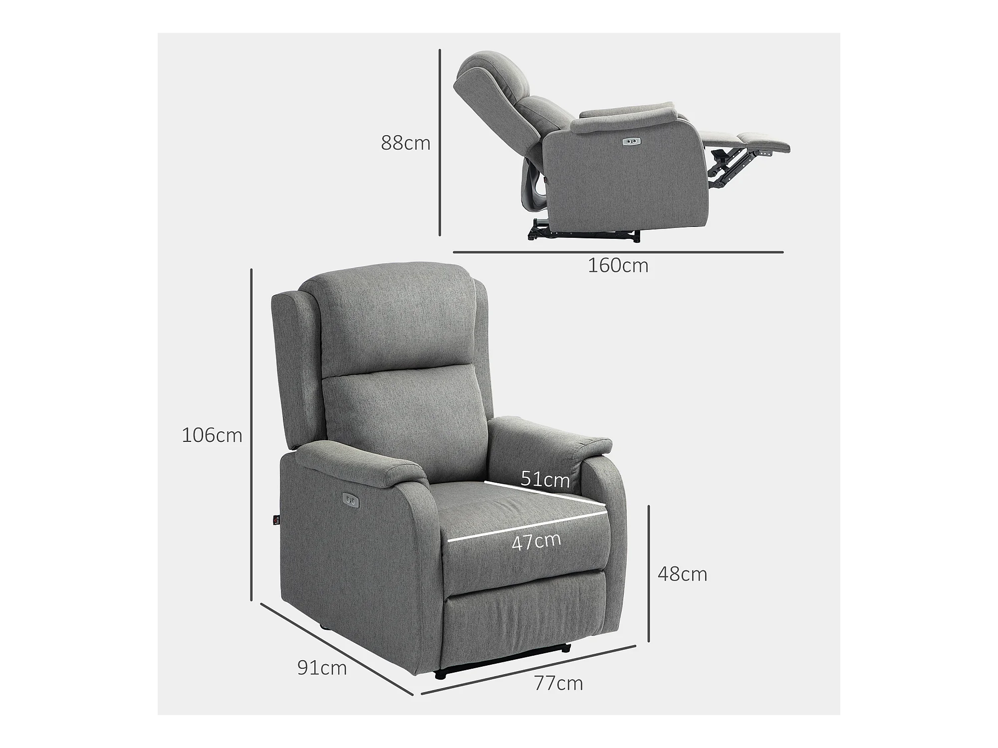 Fauteuil relax électrique avec repose-pieds lin vibrazione massaggio TV gris foncé