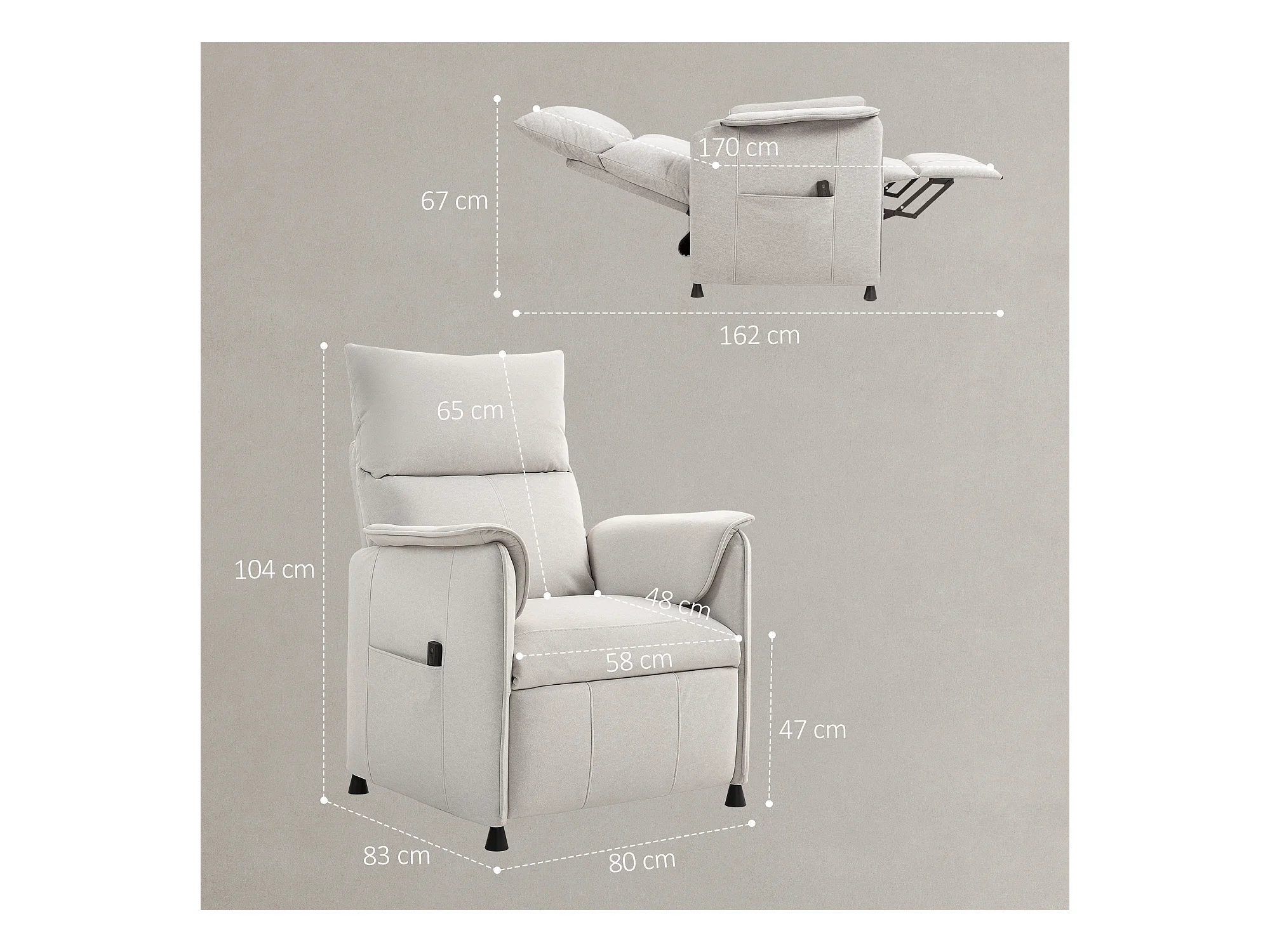 Fauteuil releveur électrique avec fonction inclinable, repose-pieds, simili cuir beige 80x94x104 cm