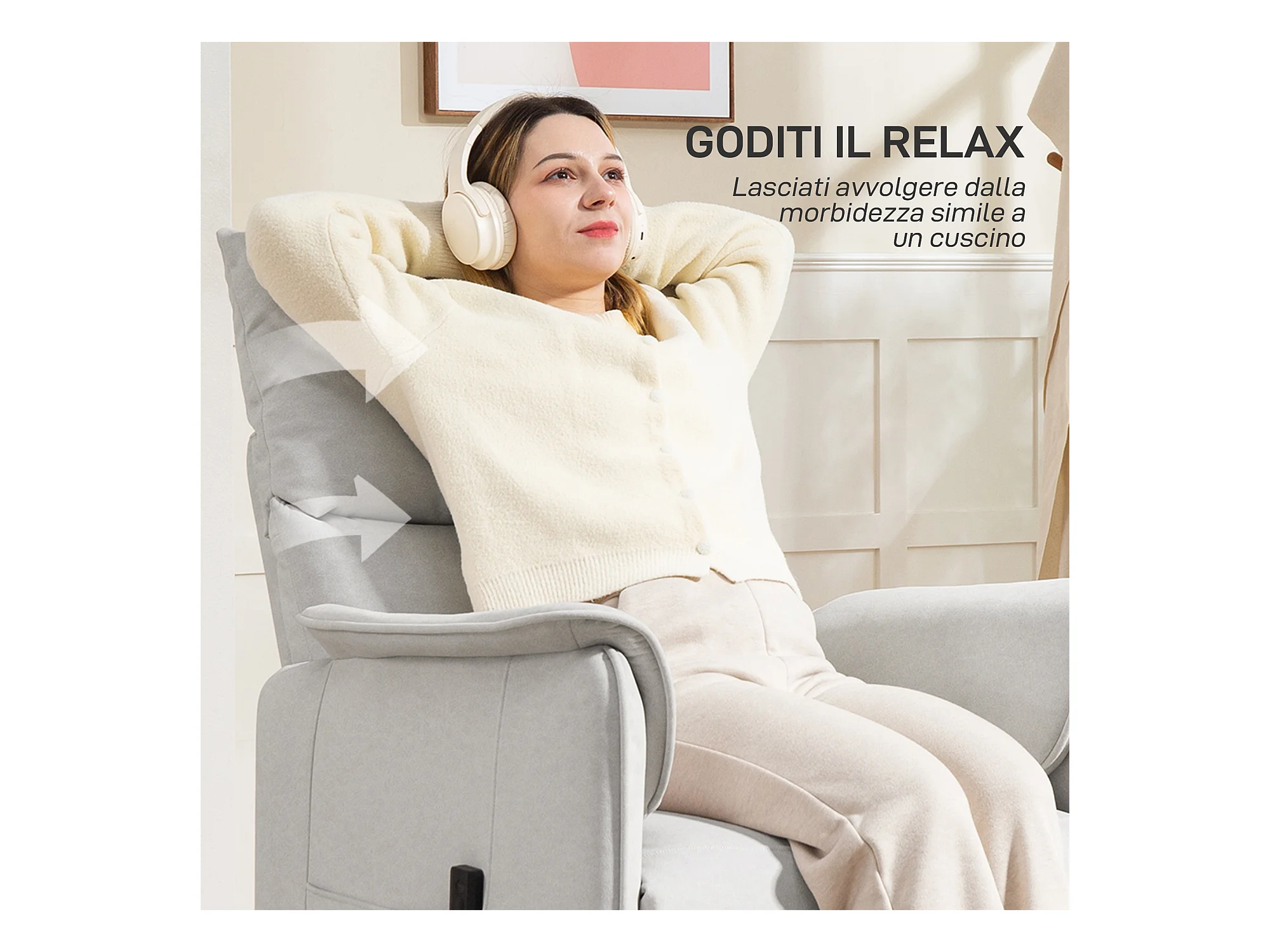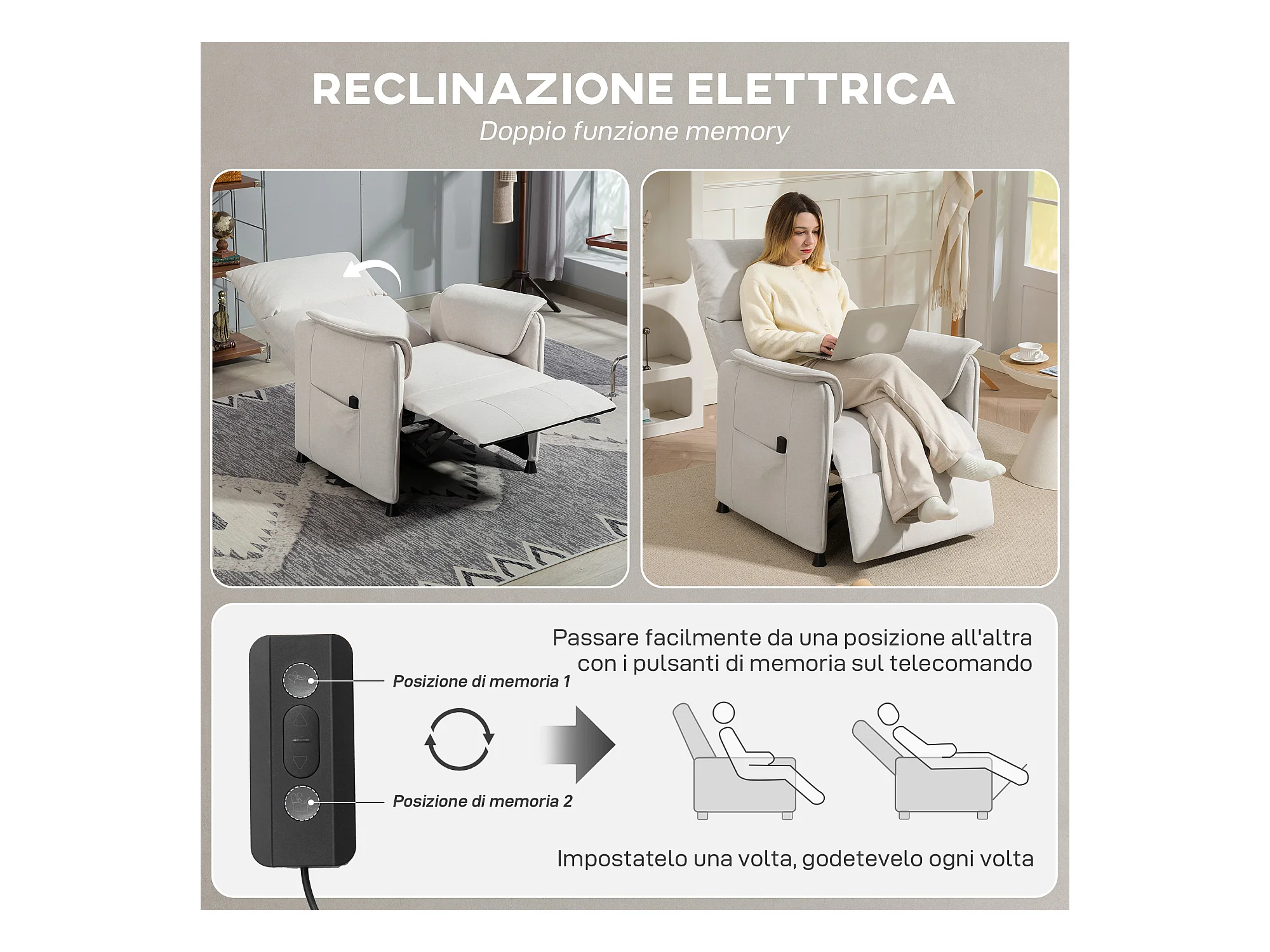Poltrona reclinabile elettrica brushless con poggiapiedi bianco crema