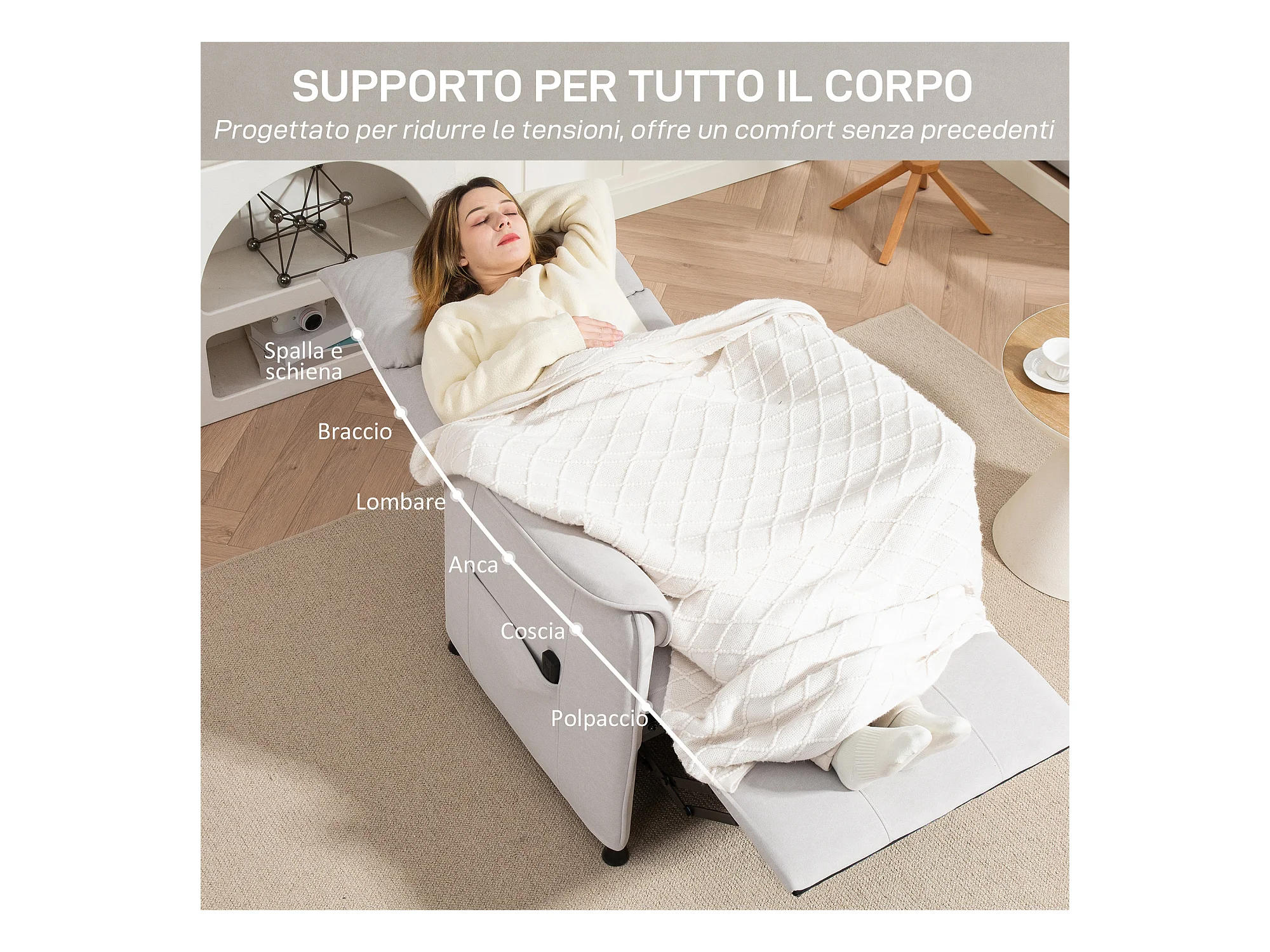 Fauteuil massaggio PU avec repose-pieds 5 punti pour salon chambre beige