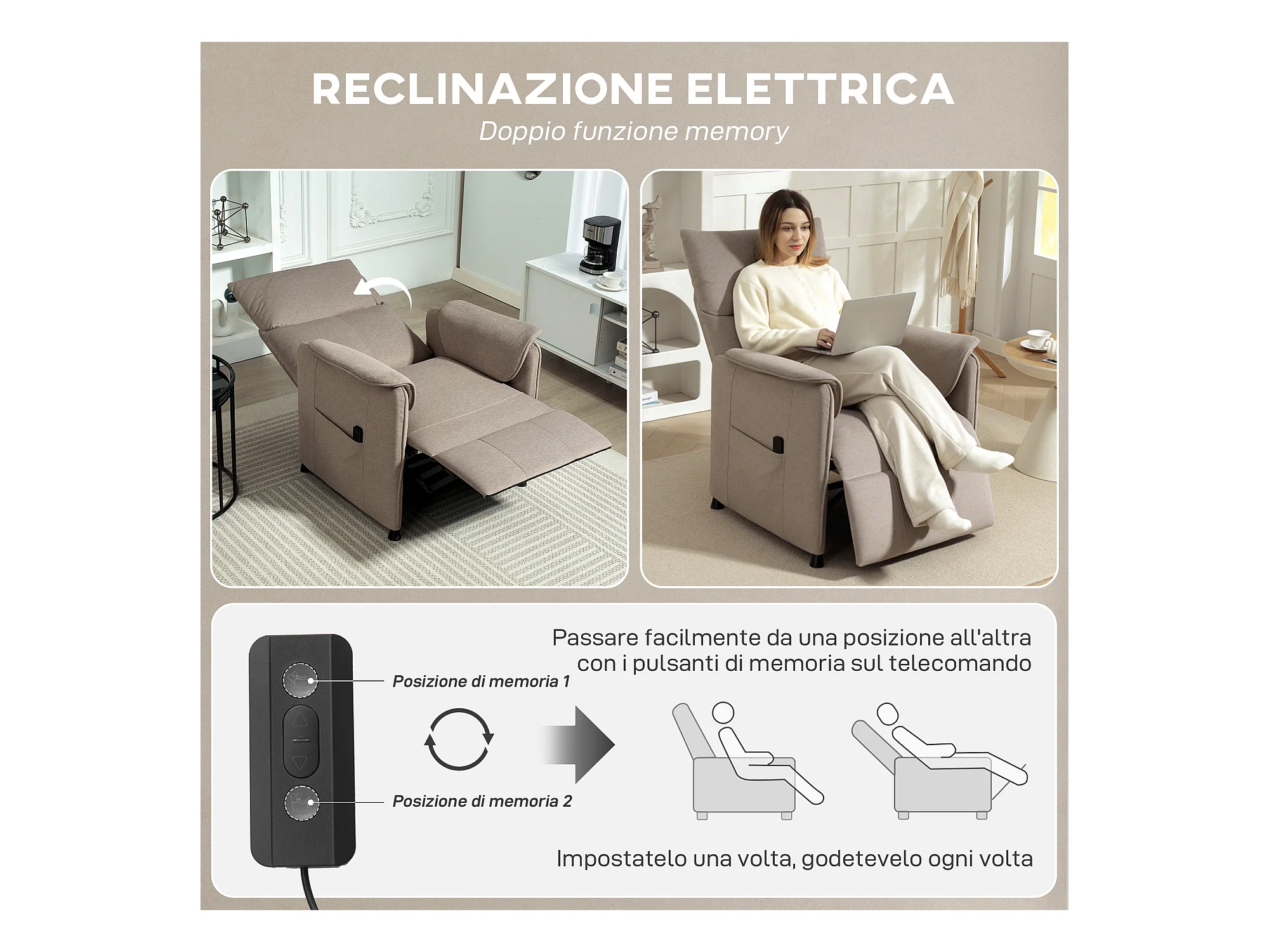Poltrona reclinabile elettrica brushless con poggiapiedi marrone