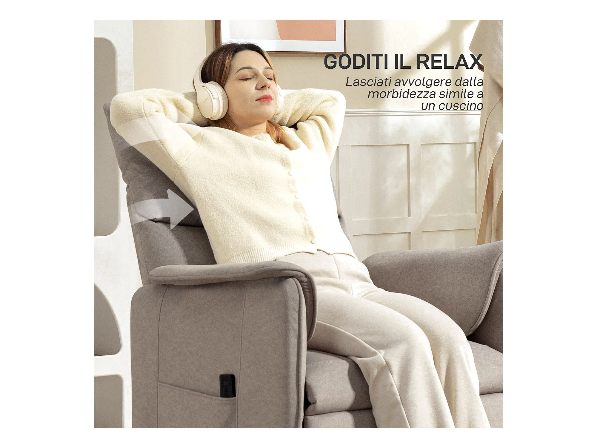 Poltrona relax elettrica inclinabile 165° in pelle simile con massaggio e telecomando marrone 94x99x99 cm