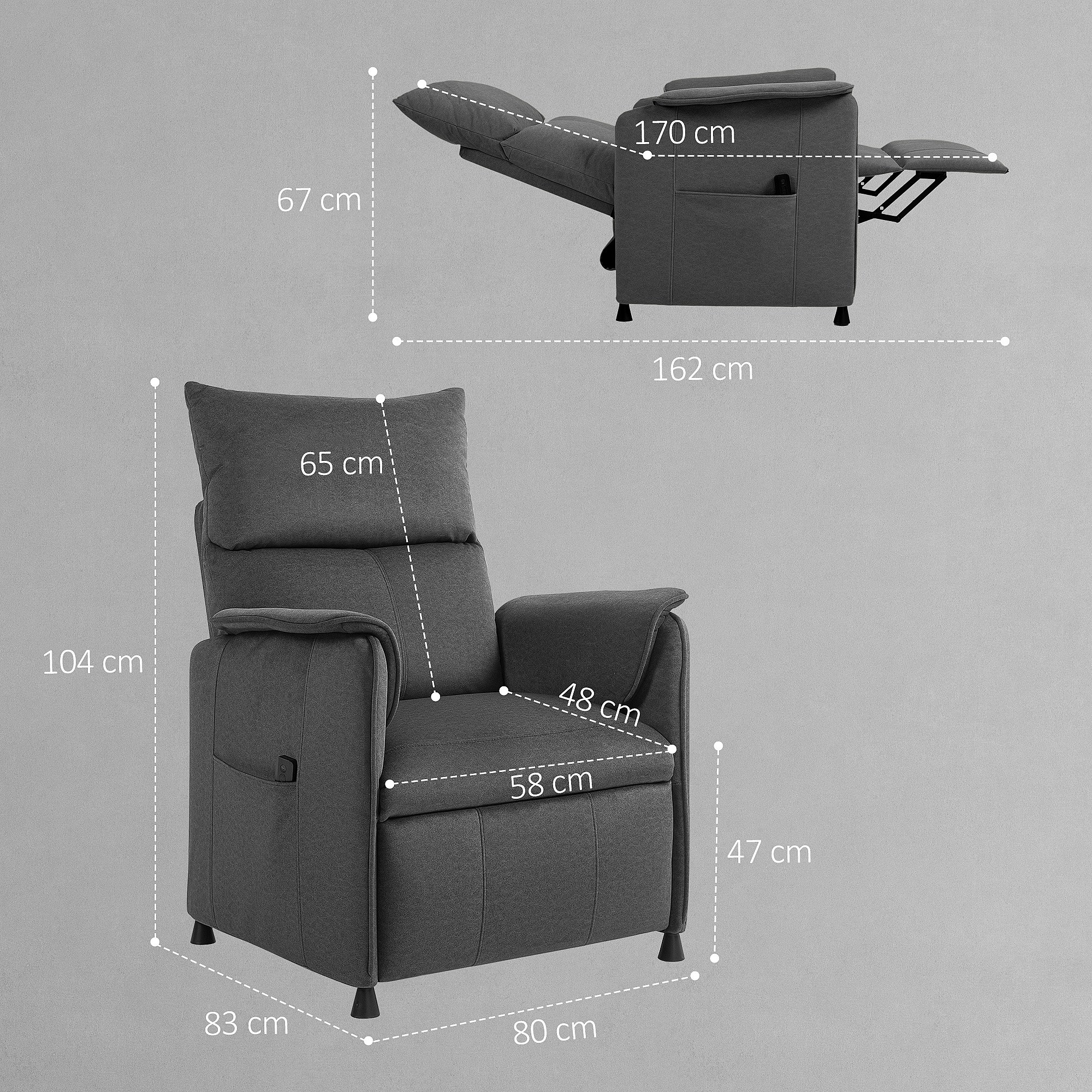 Poltrona reclinabile elettrica brushless con poggiapiedi nera