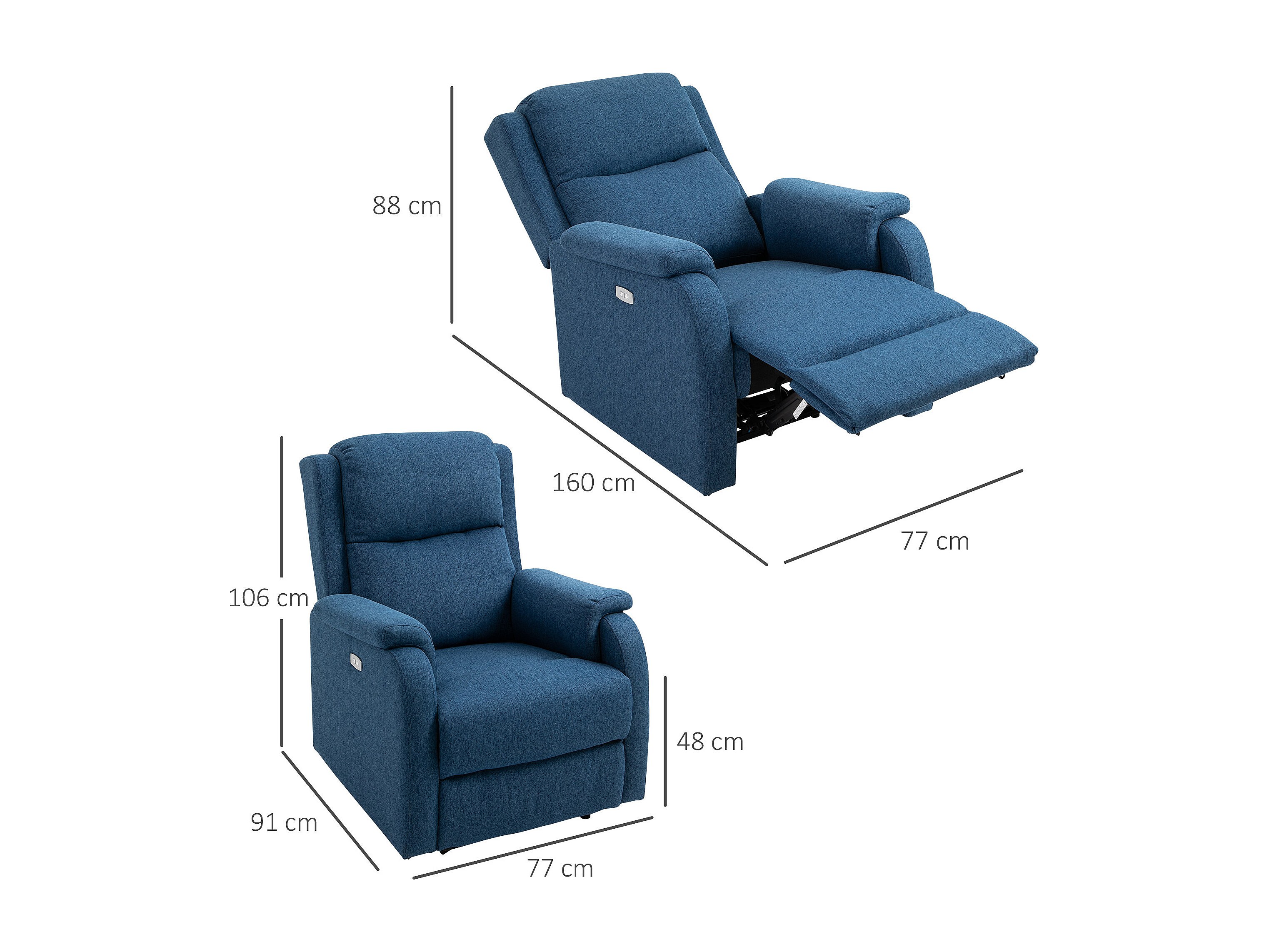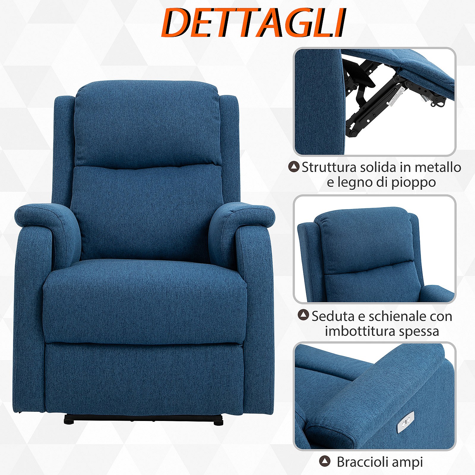 Poltrona reclinabile elettrica con schienale in lino blu