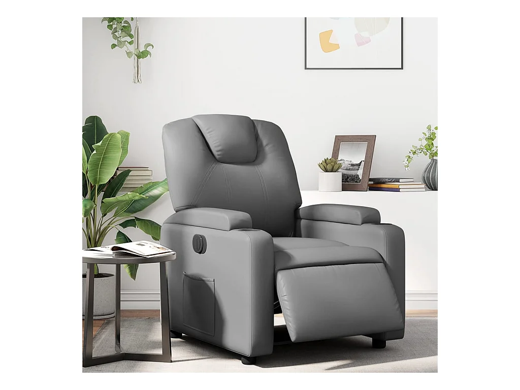 Poltrona Reclinabile Elettrica Grigia in Similpelle