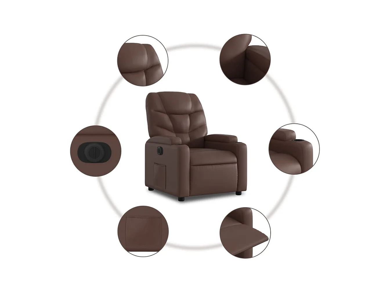 Poltrona Reclinabile Elettrica Marrone in Similpelle