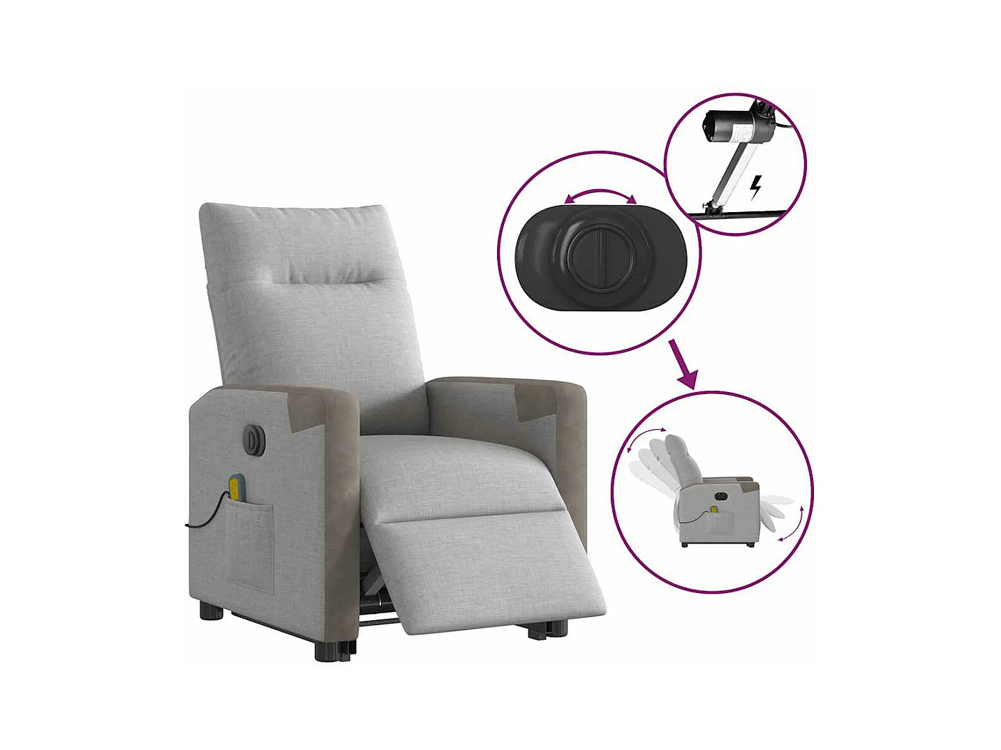 Poltrona reclinabile elettrica per massaggio in tessuto grigio chiaro