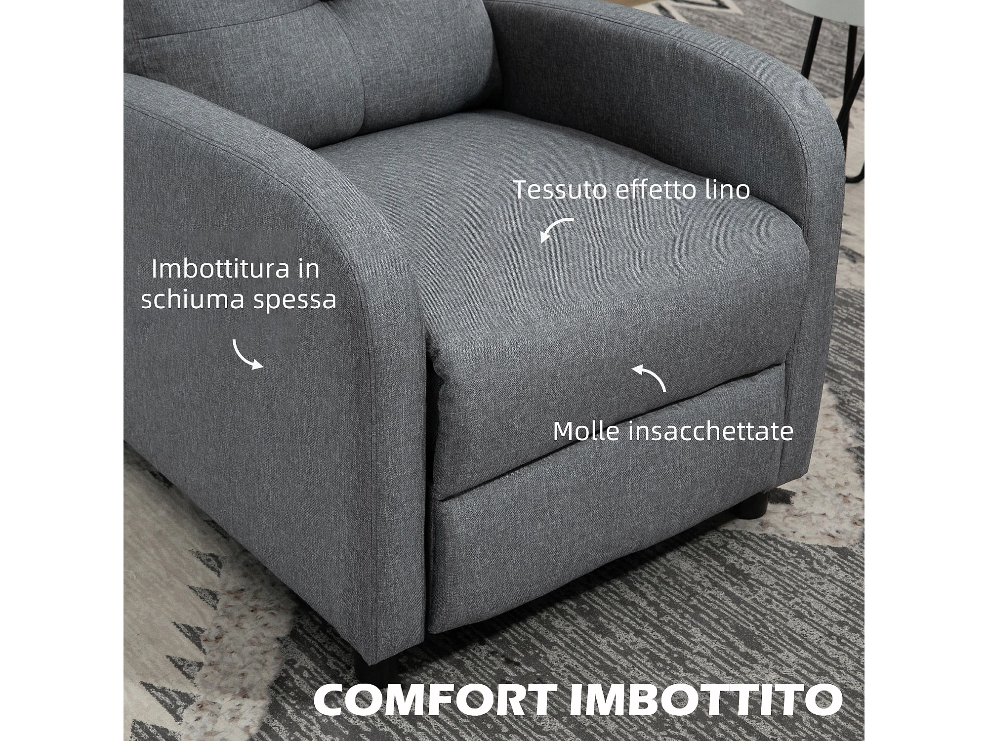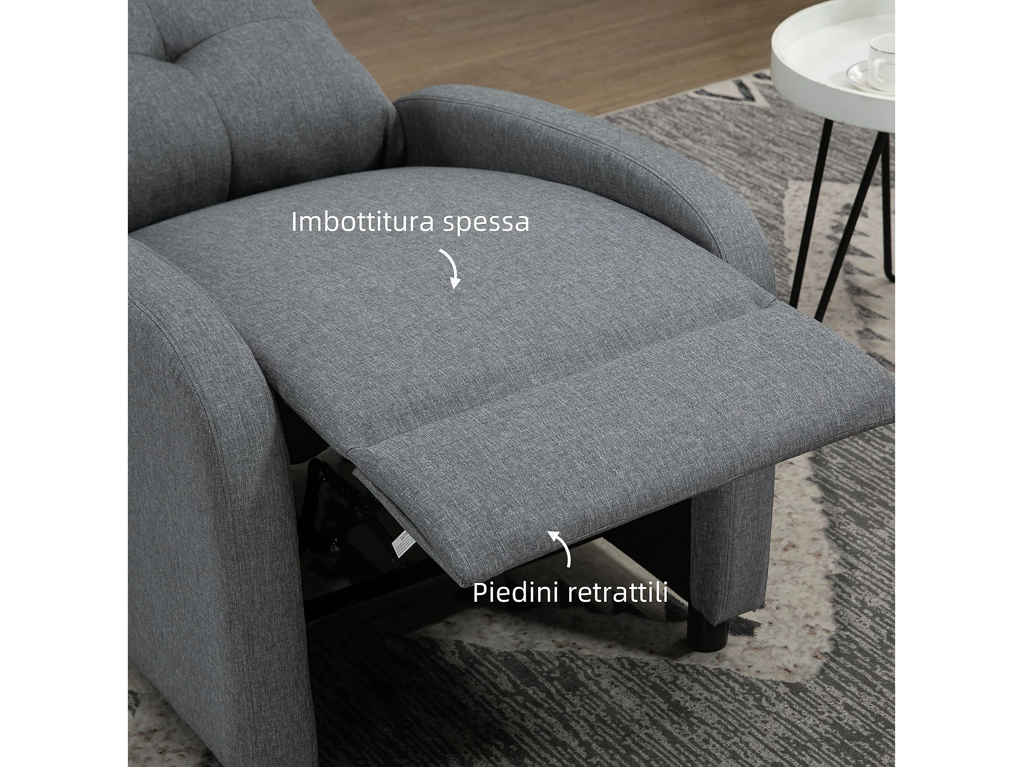 Poltrona reclinabile fino a 155° con poggiapiedi in tessuto grigio