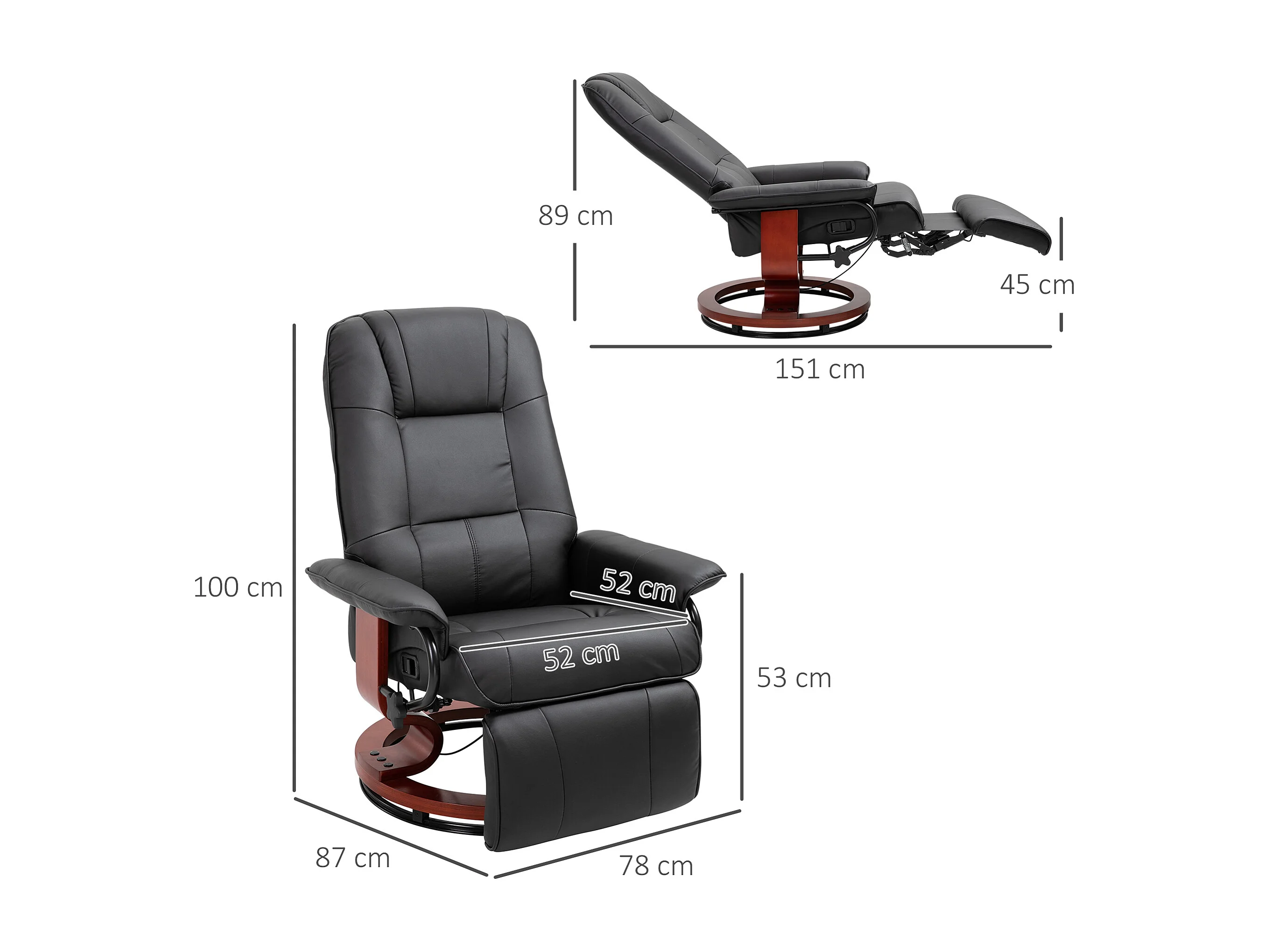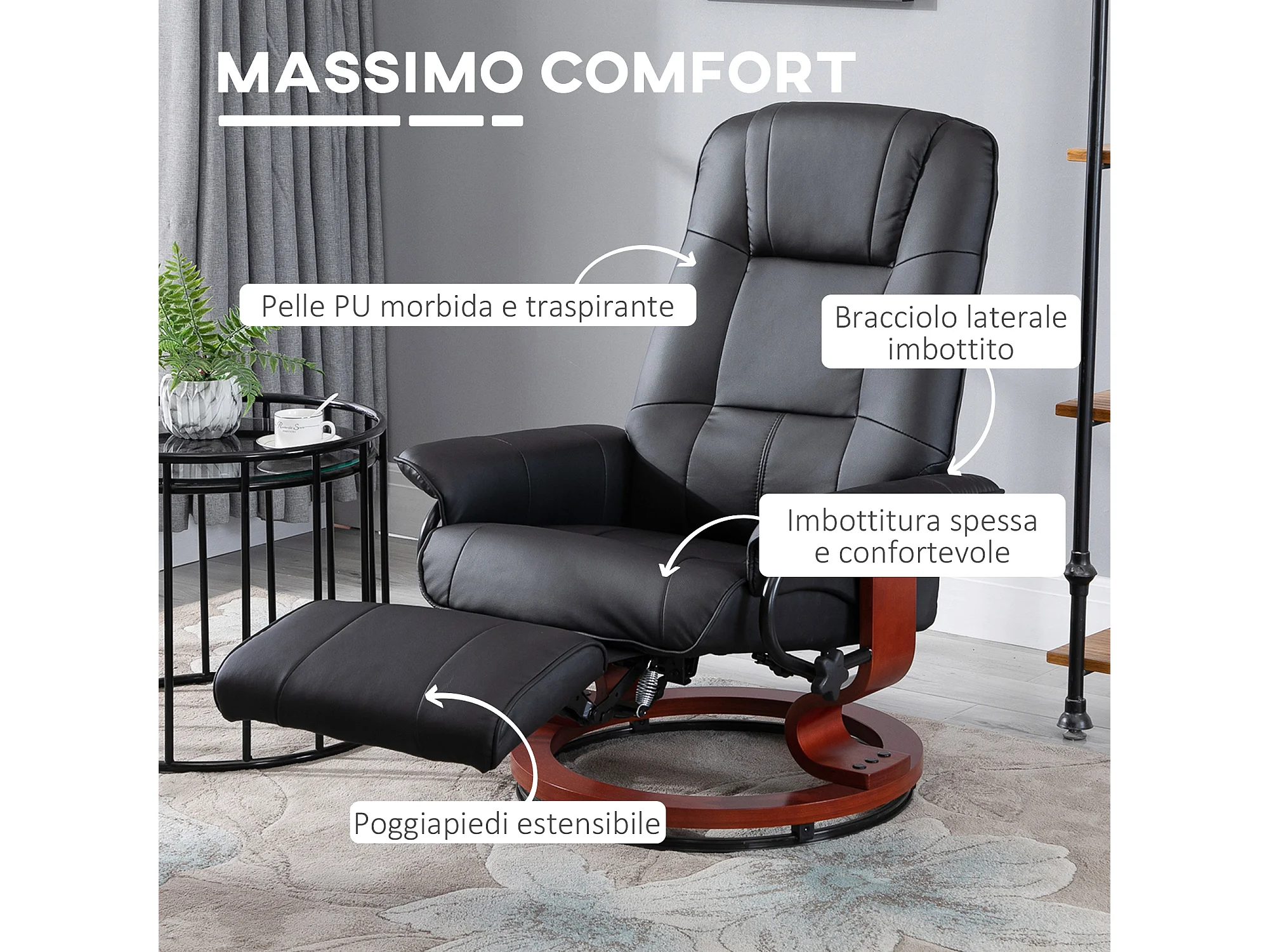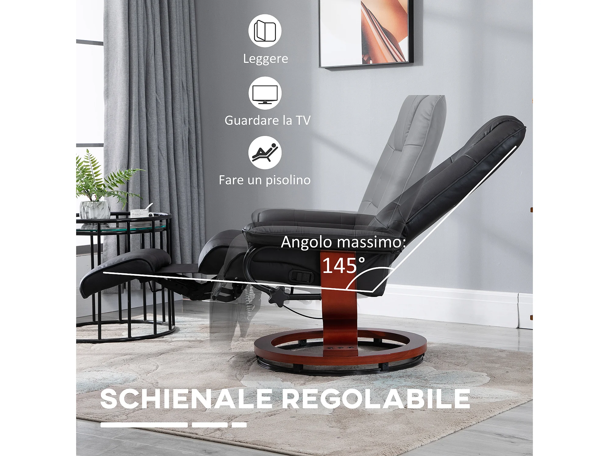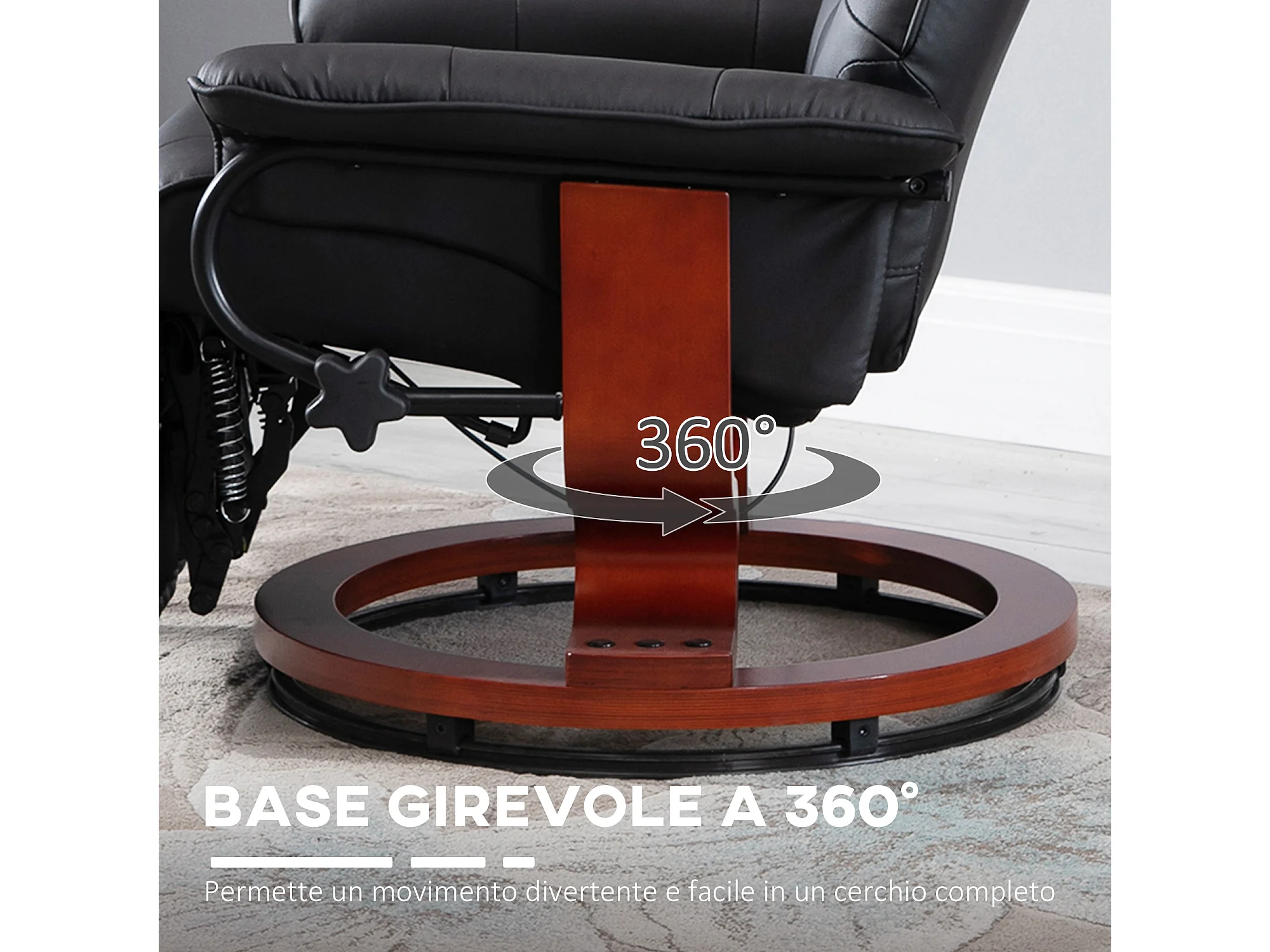 Poltrona reclinabile manualmente con poggiapiedi e girevole nero