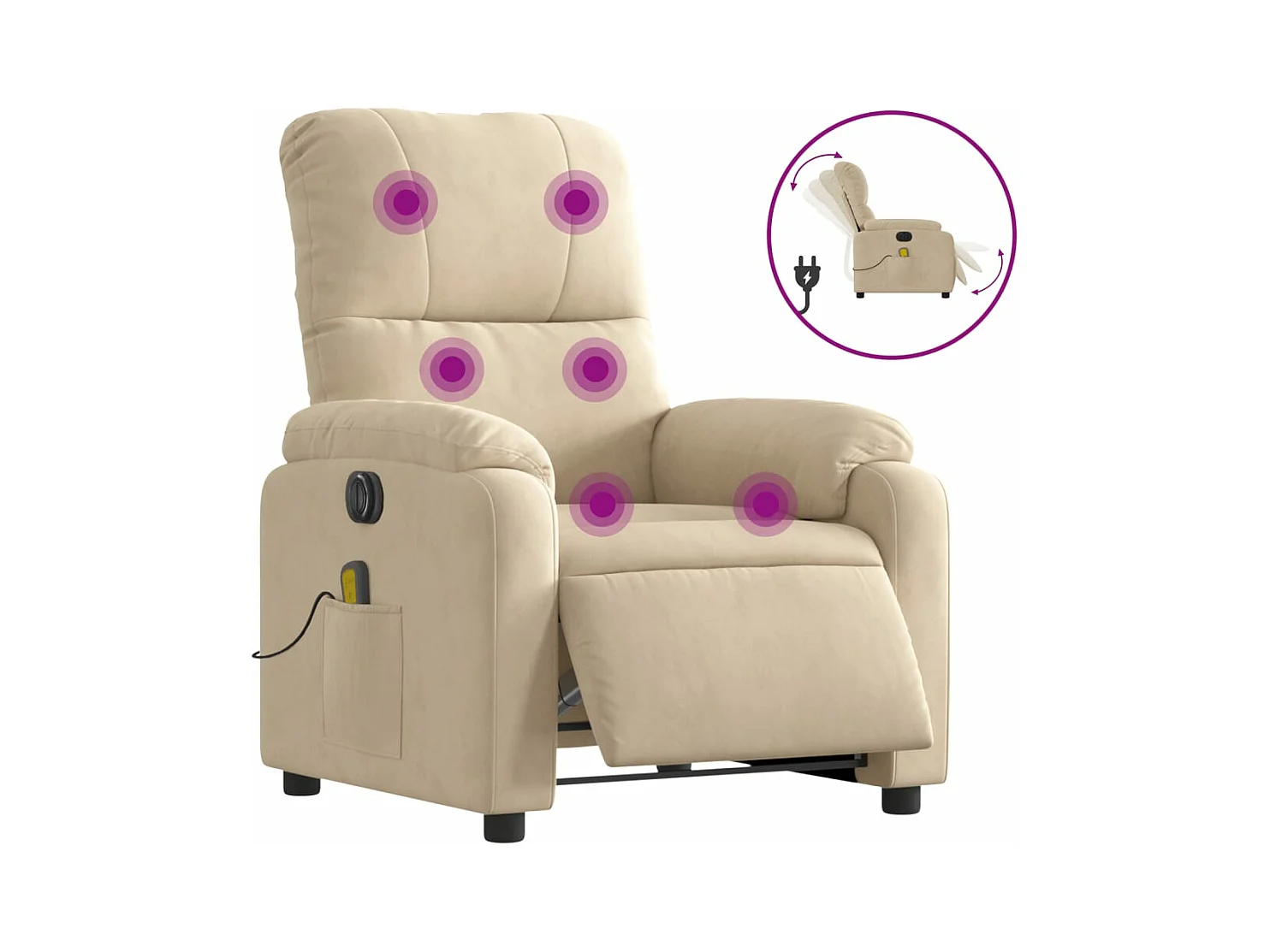 Poltrona Reclinabile Massaggiante Elettrica Crema Microfibra