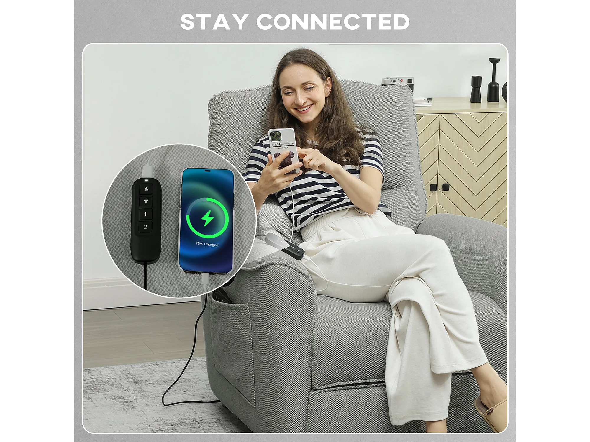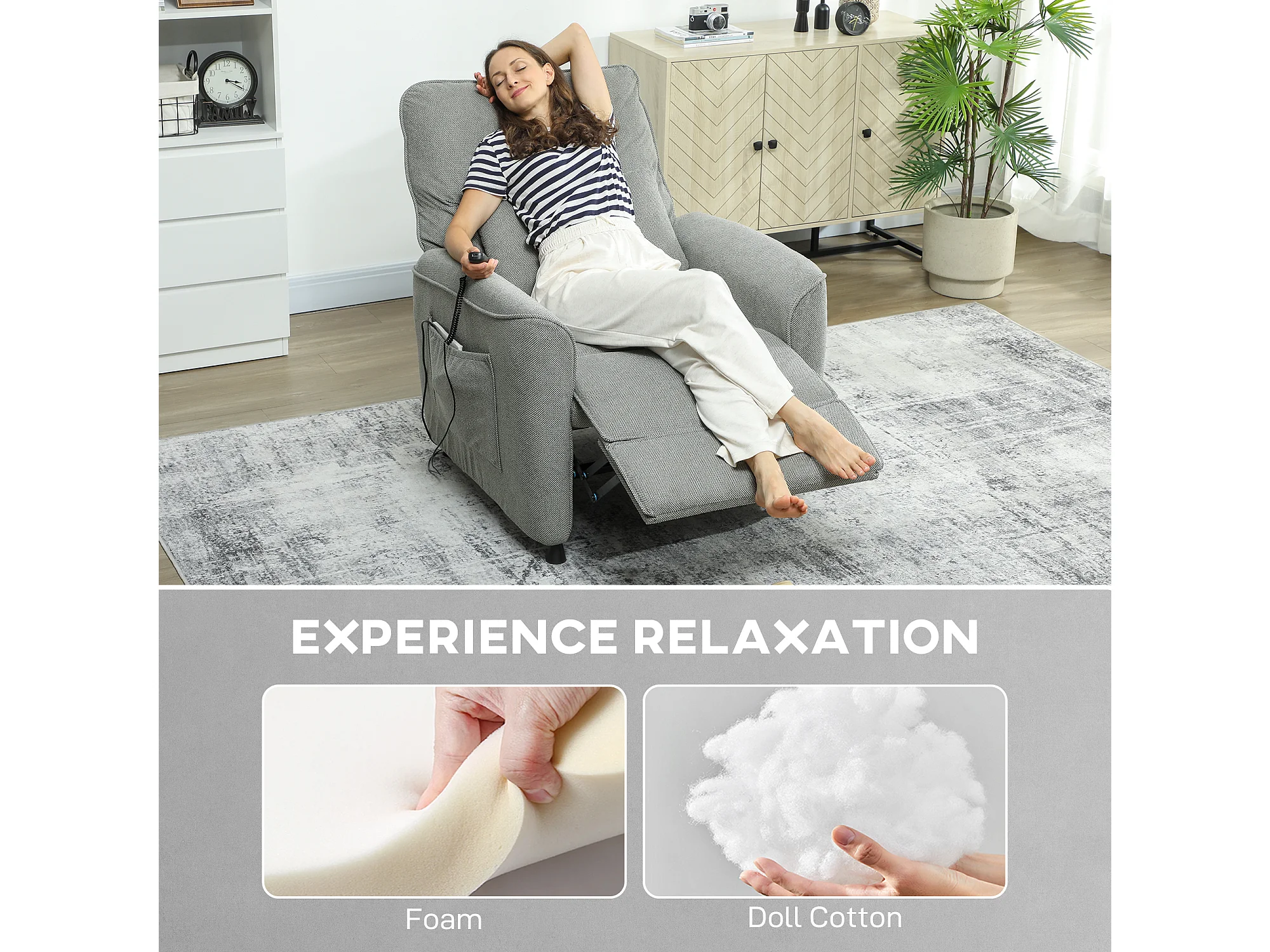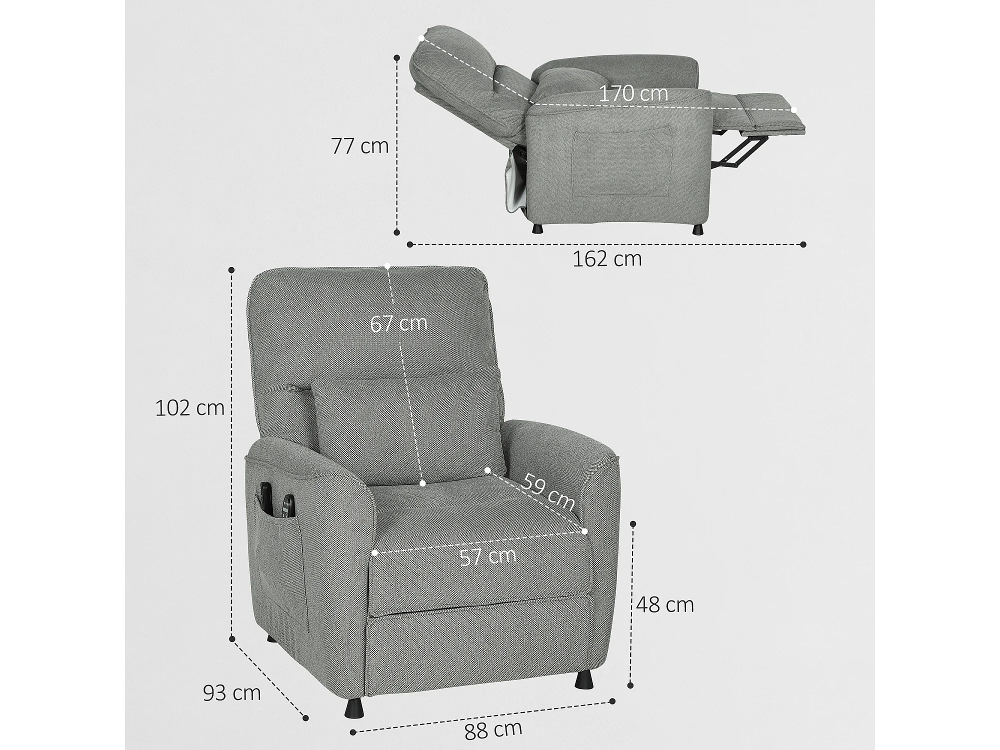 Poltrona reclinabile massaggiante riscaldata ciniglia grigio carbone