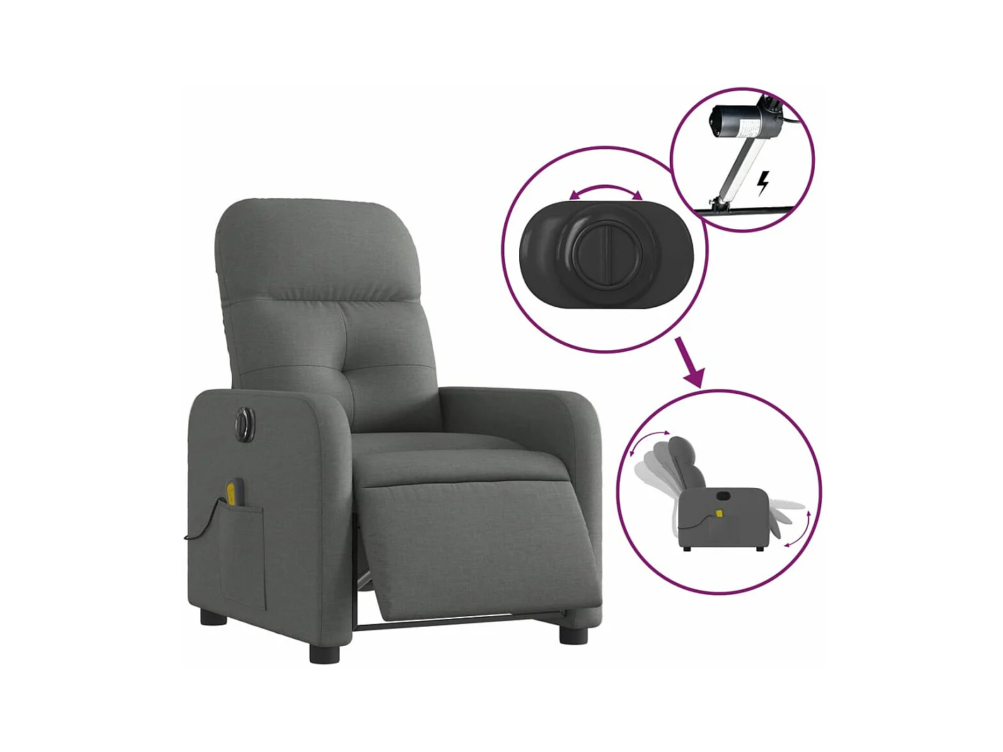 Poltrona Massaggiante Reclinabile Grigio Scuro in Tessuto
