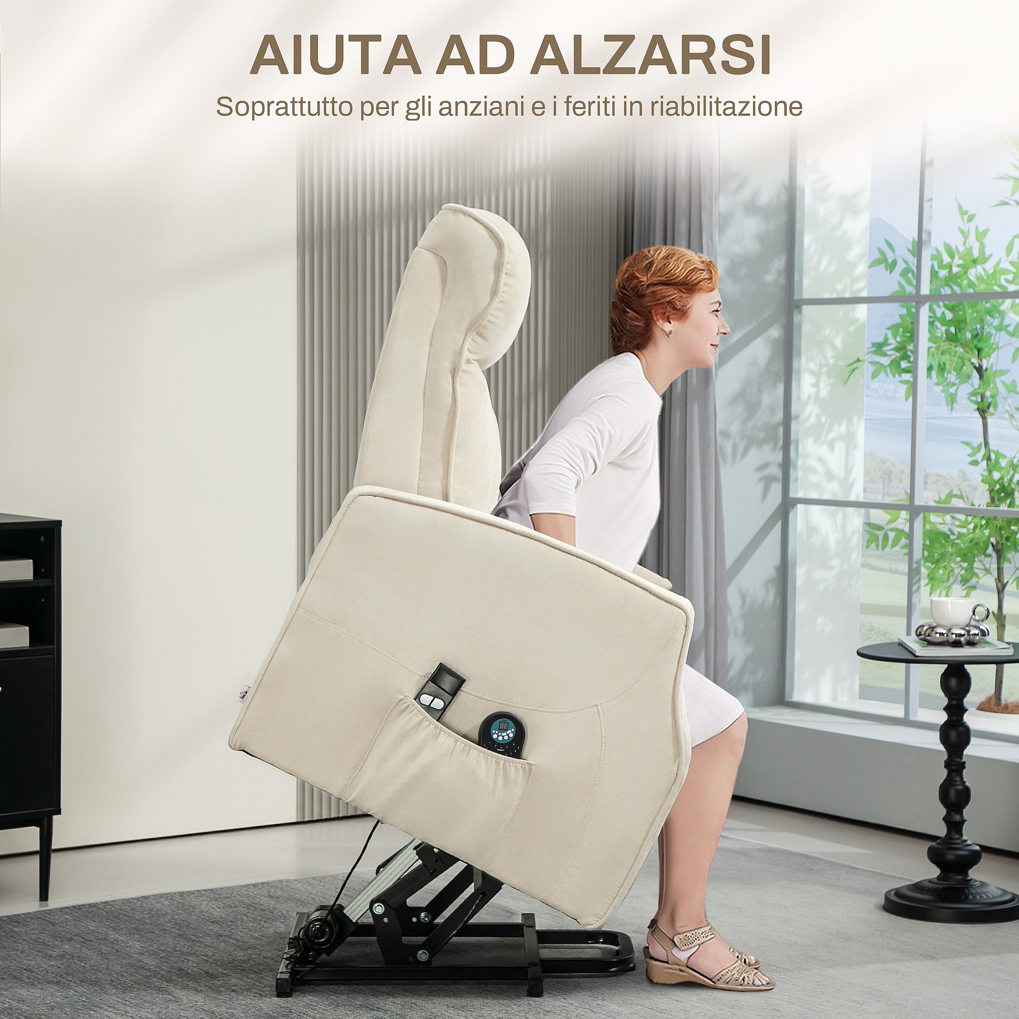 Poltrona relax alzapersona reclinabile con 8 punti massaggio crema
