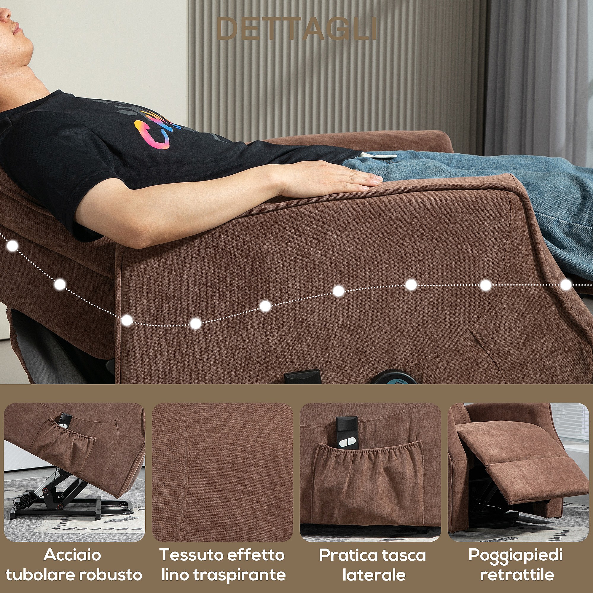 Poltrona relax alzapersona reclinabile con 8 punti massaggio marrone