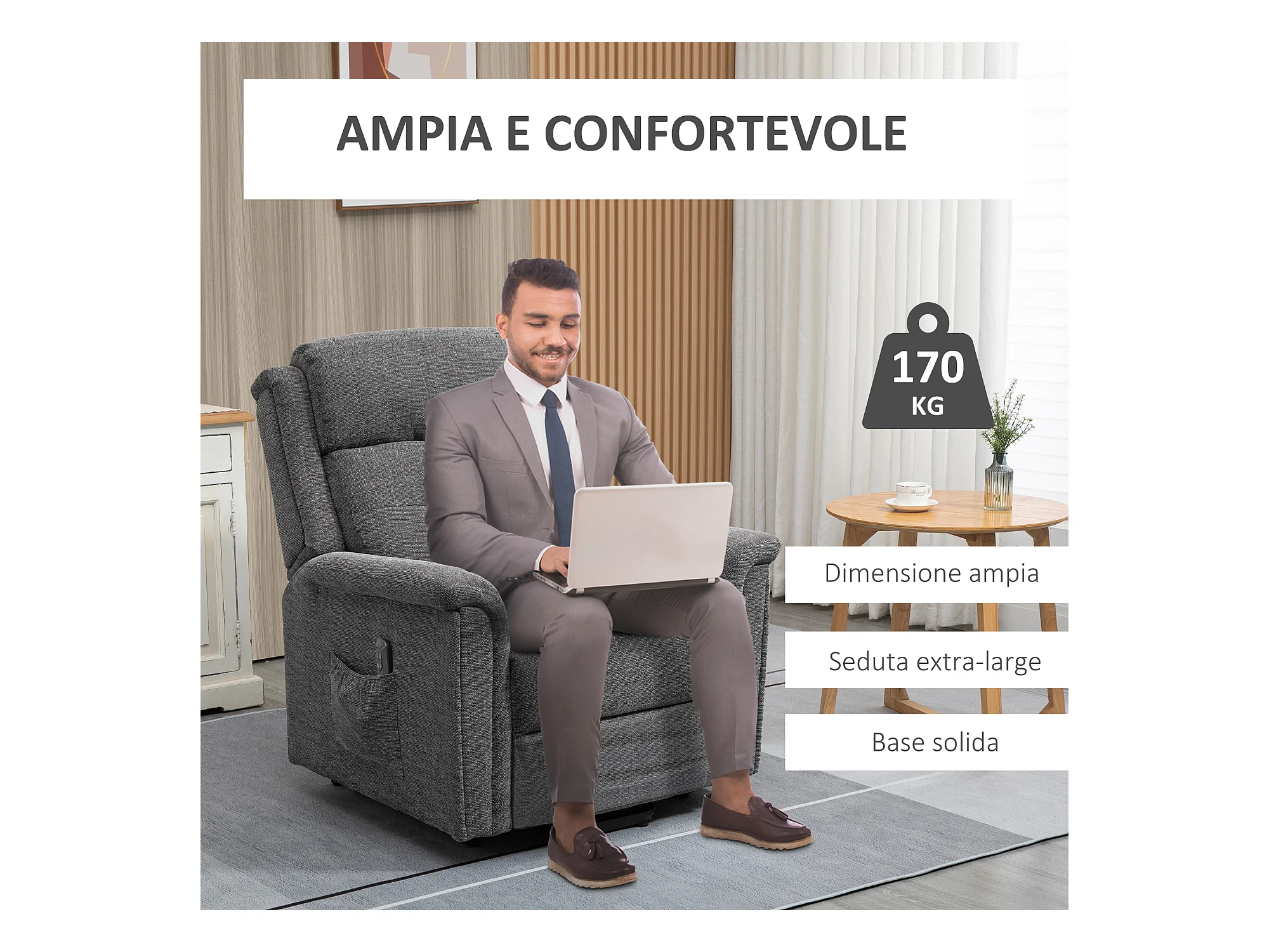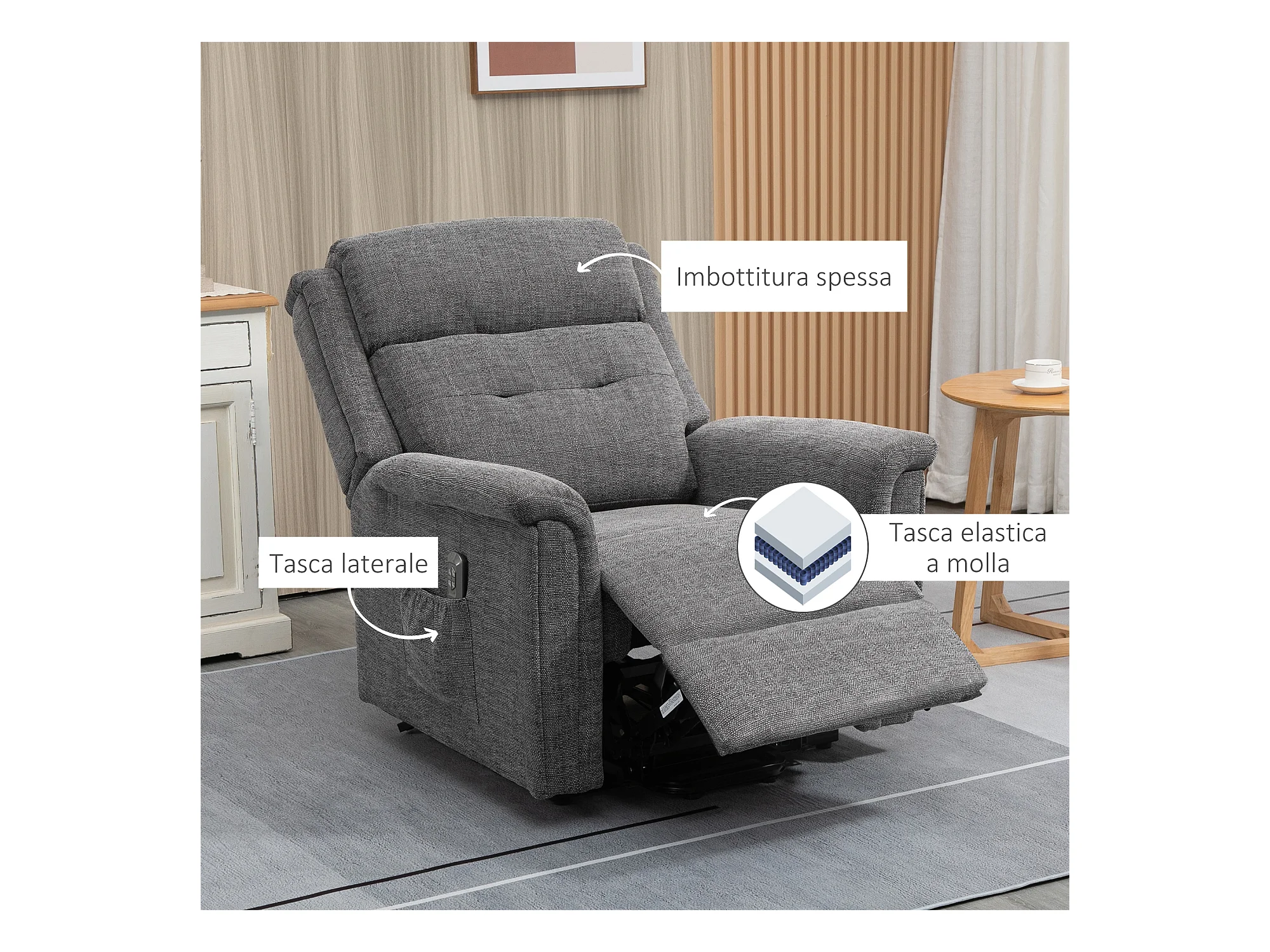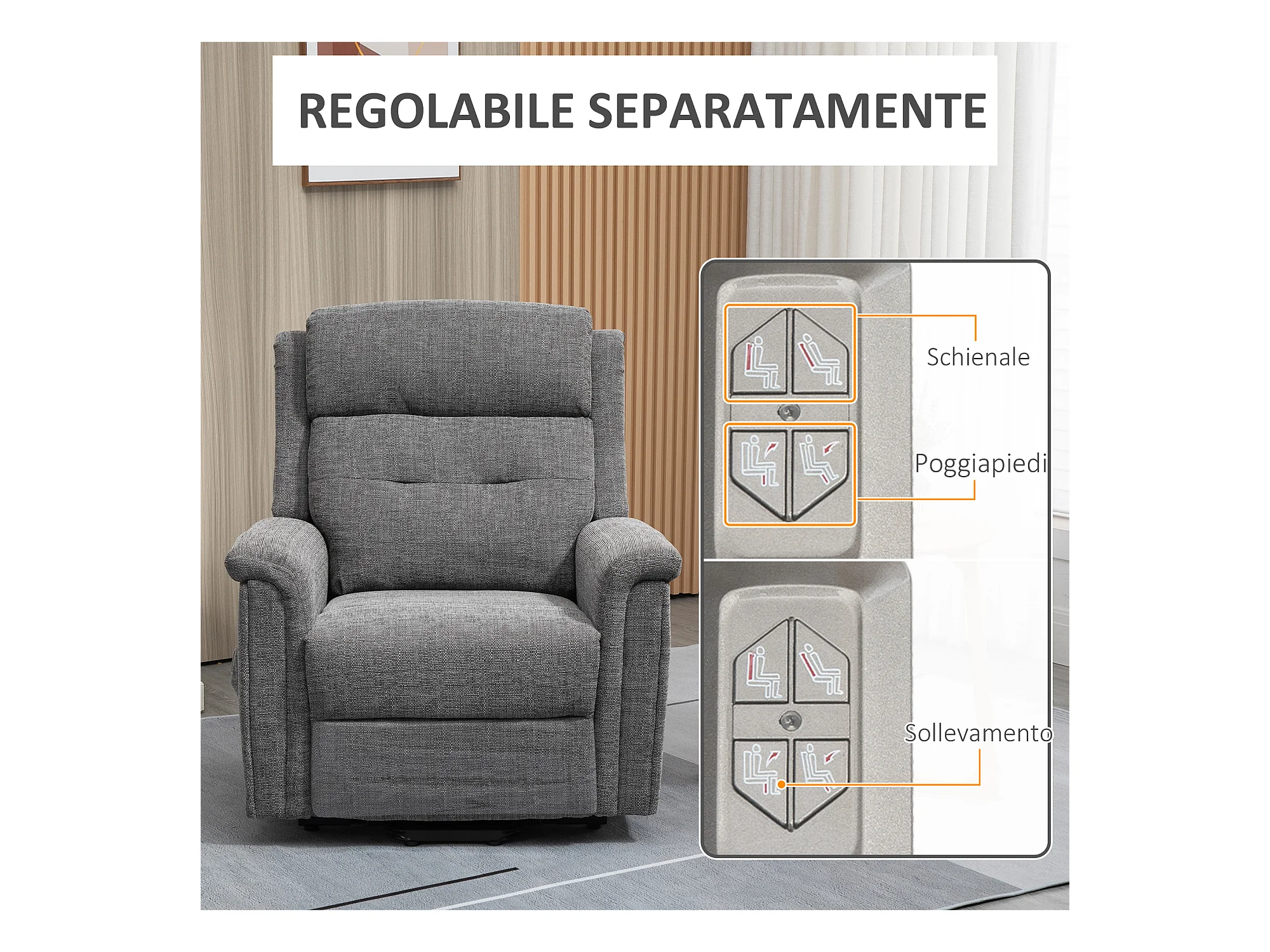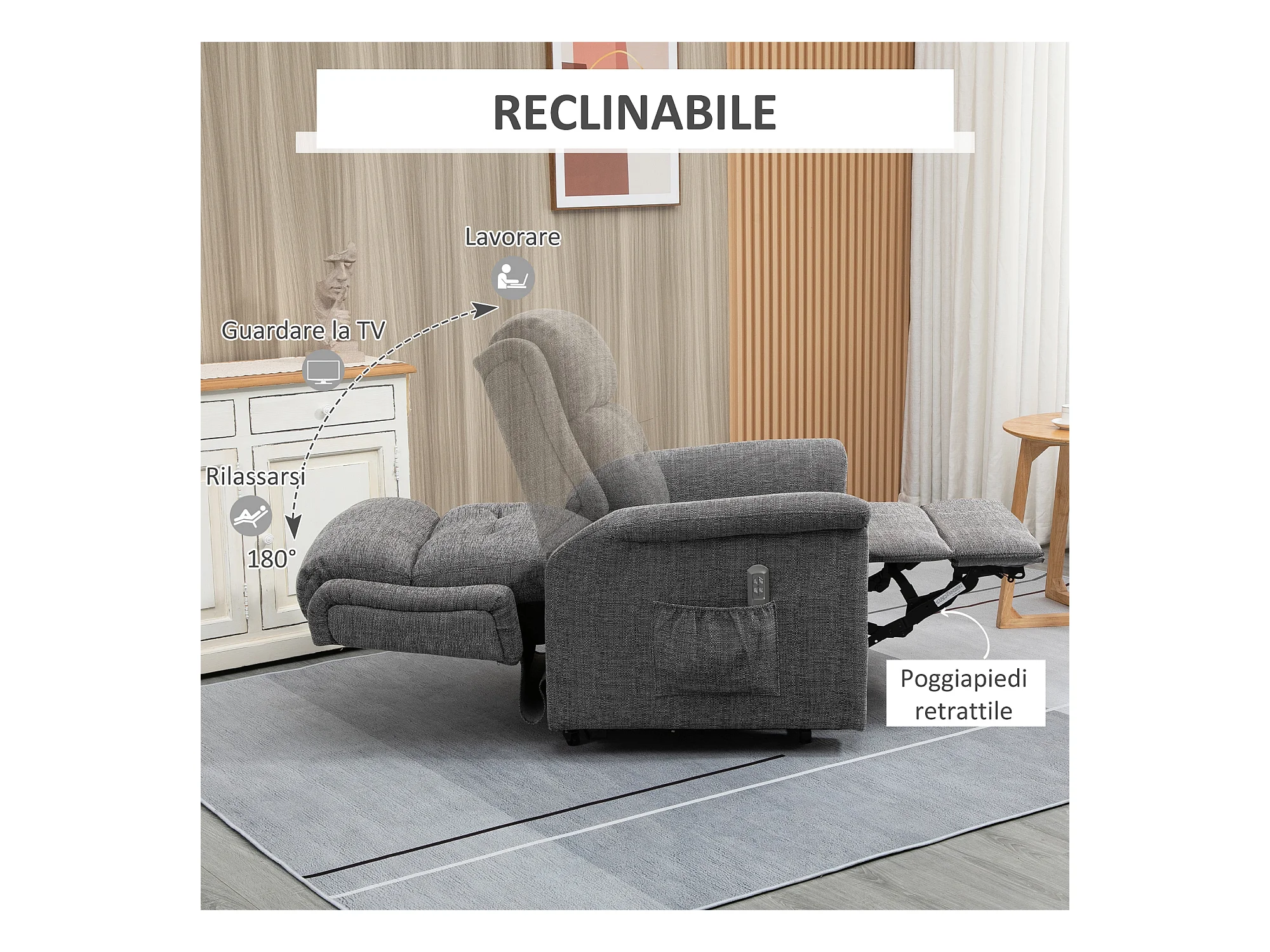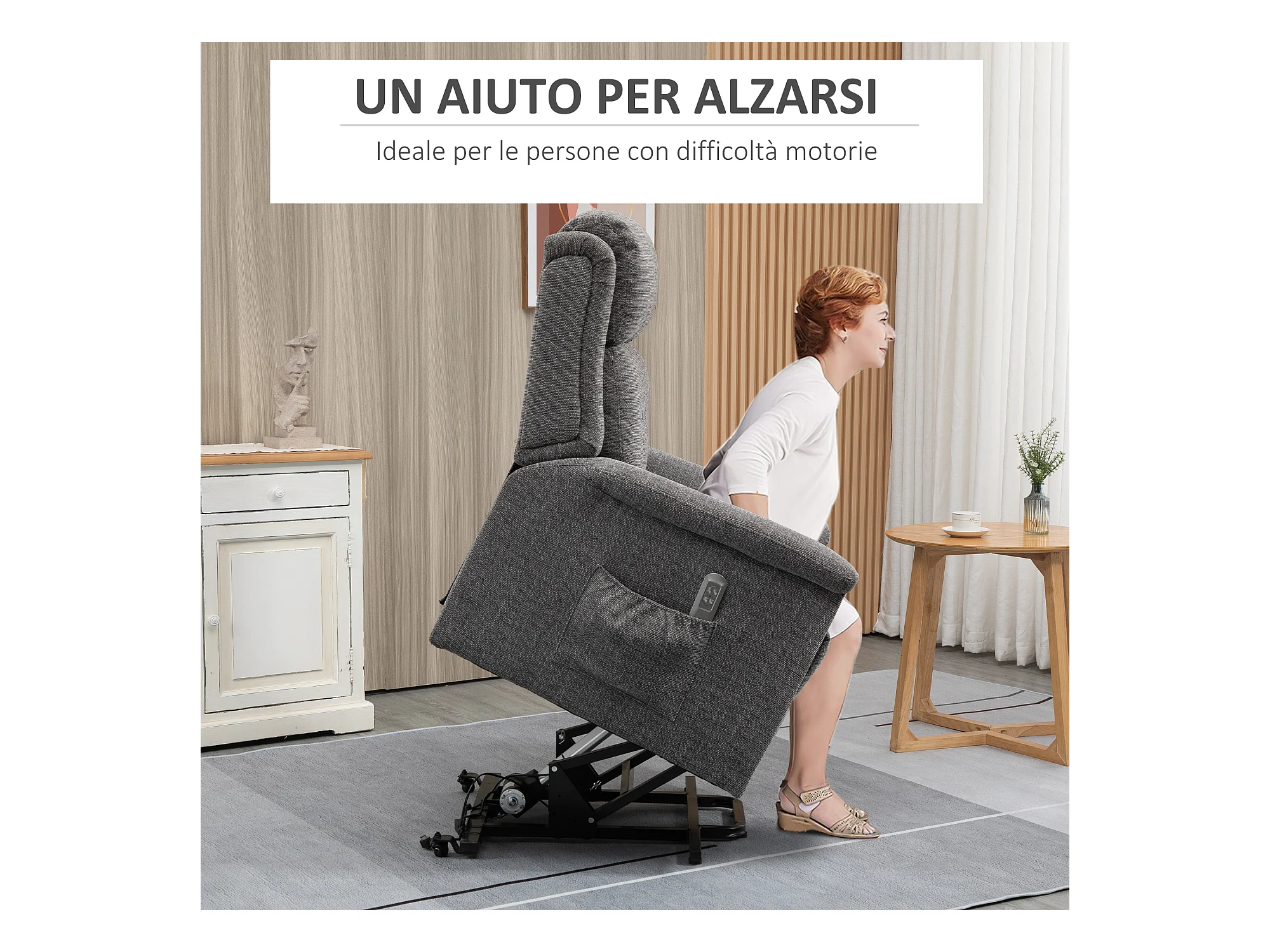 Poltrona alzapersona e reclinabile con telecomando in tessuto grigio