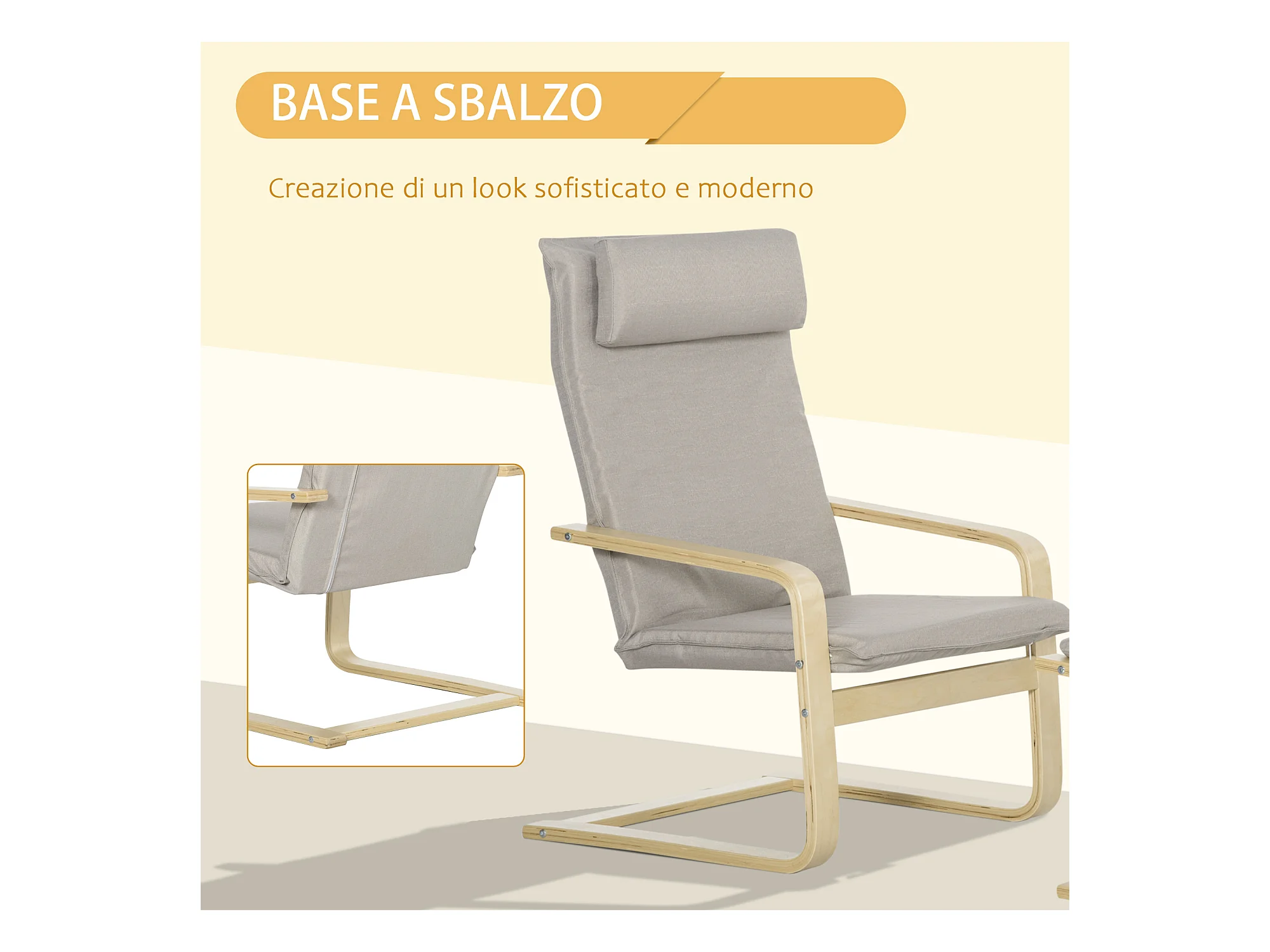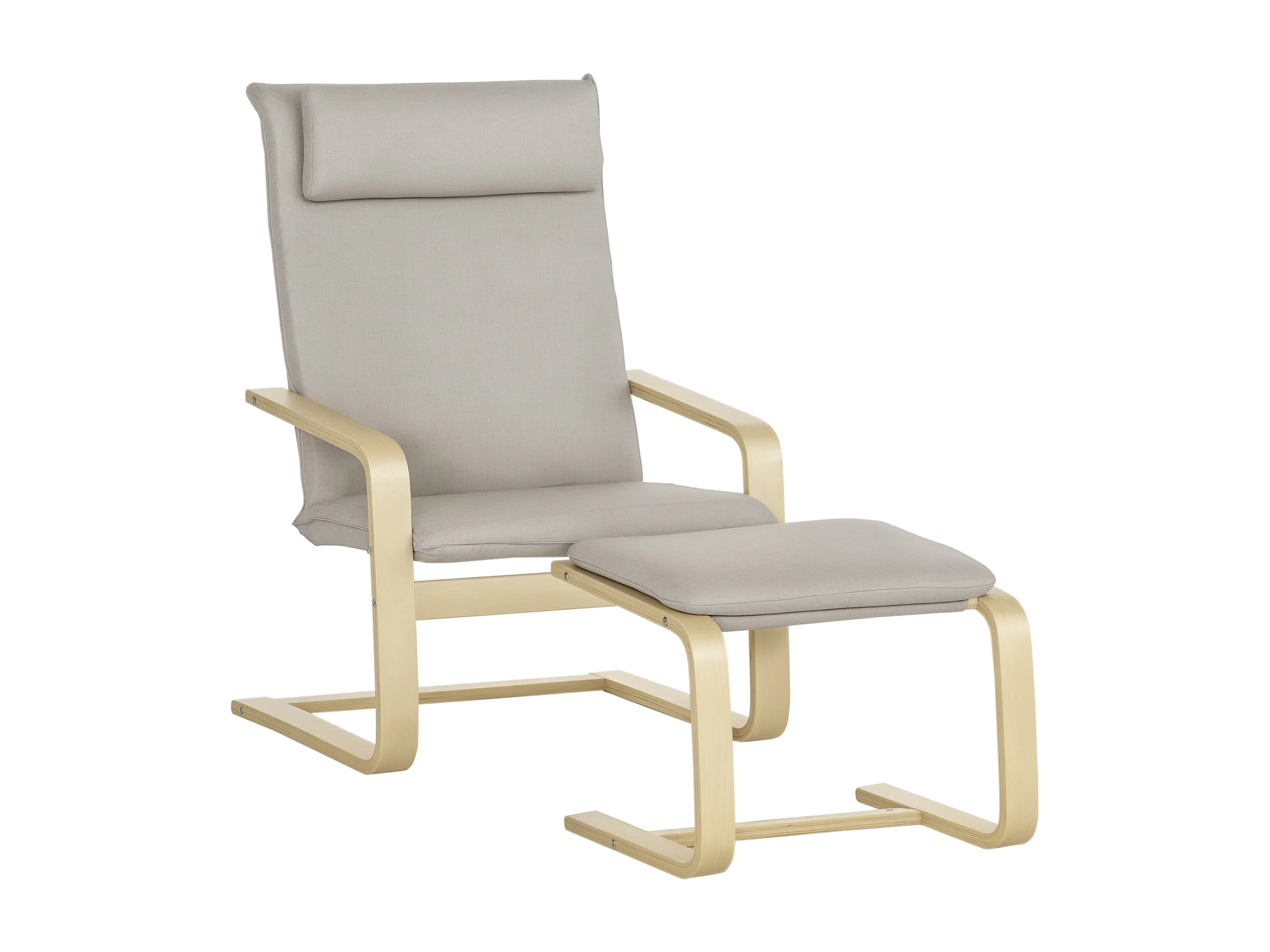 Poltrona relax con pouf poggiapiedi in legno e tessuto grigio