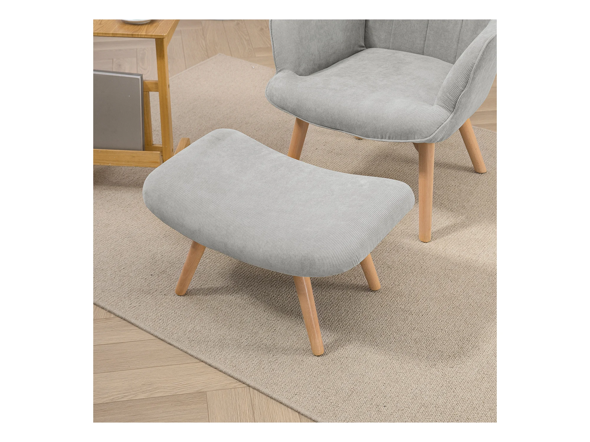 Poltrona relax con pouf poggiapiedi in velluto a costine grigio