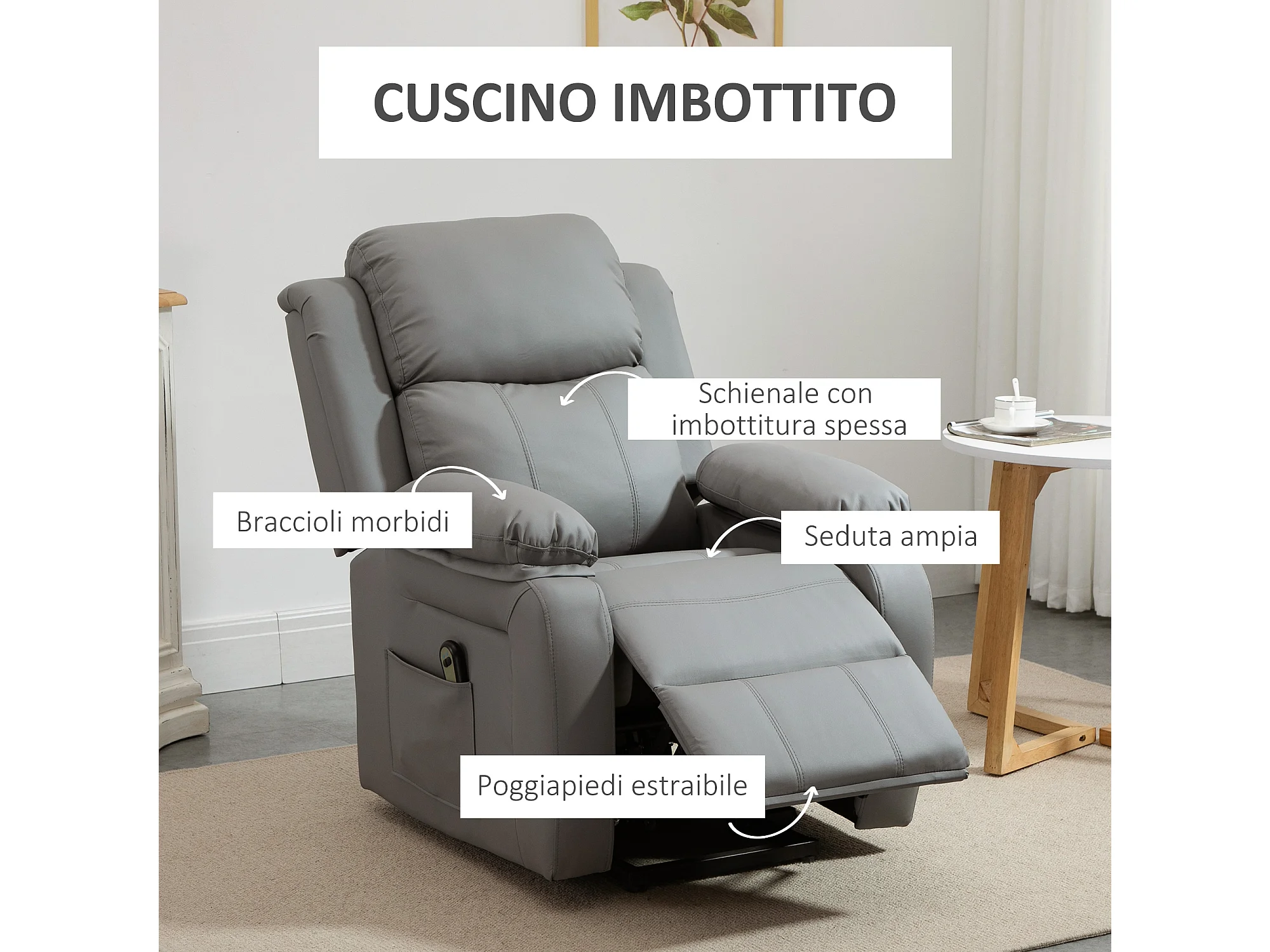 Poltrona relax elettrica alzapersona in similpelle grigia