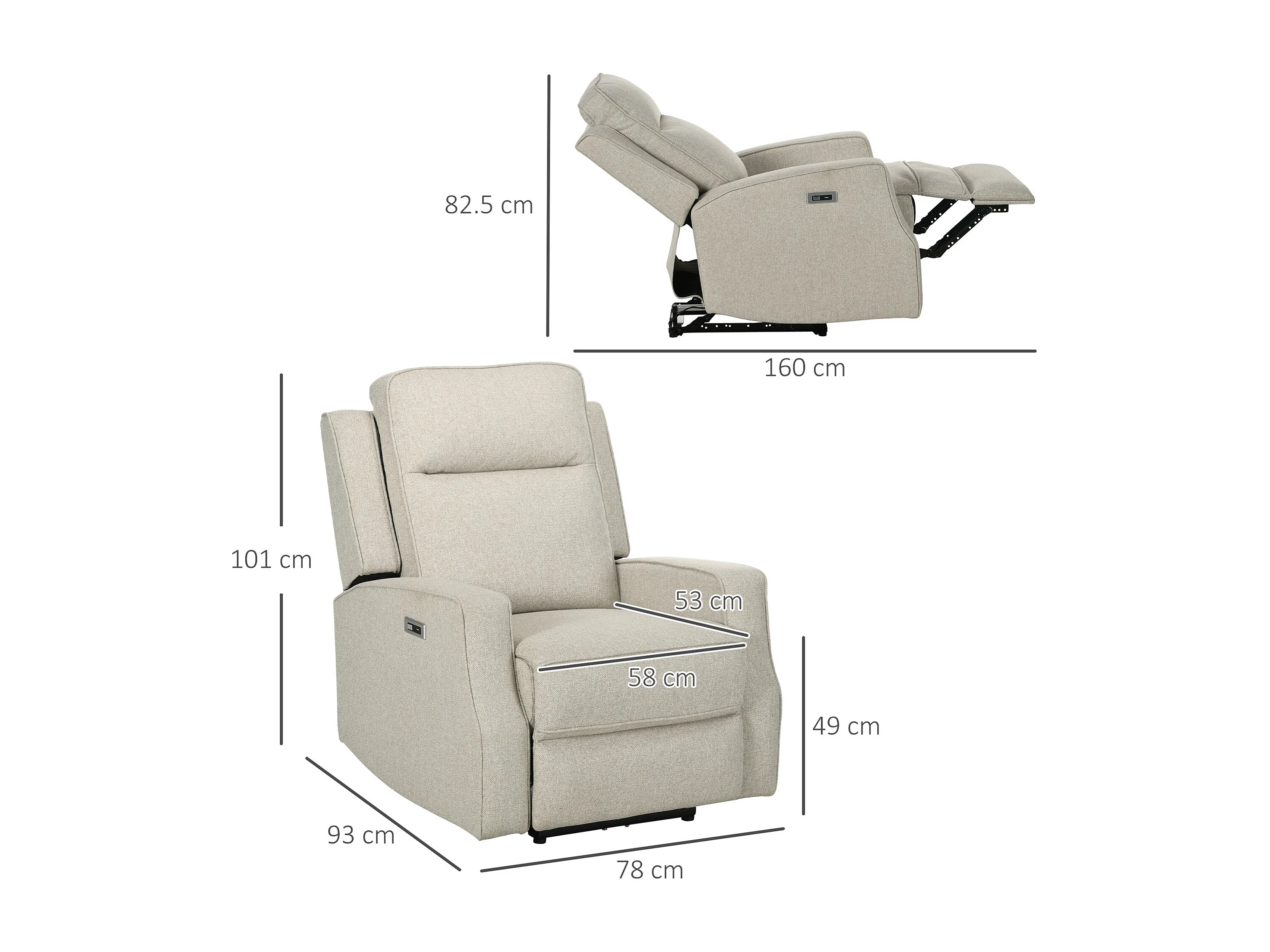 Poltrona relax elettrica e reclinabile 150° per soggiorno beige
