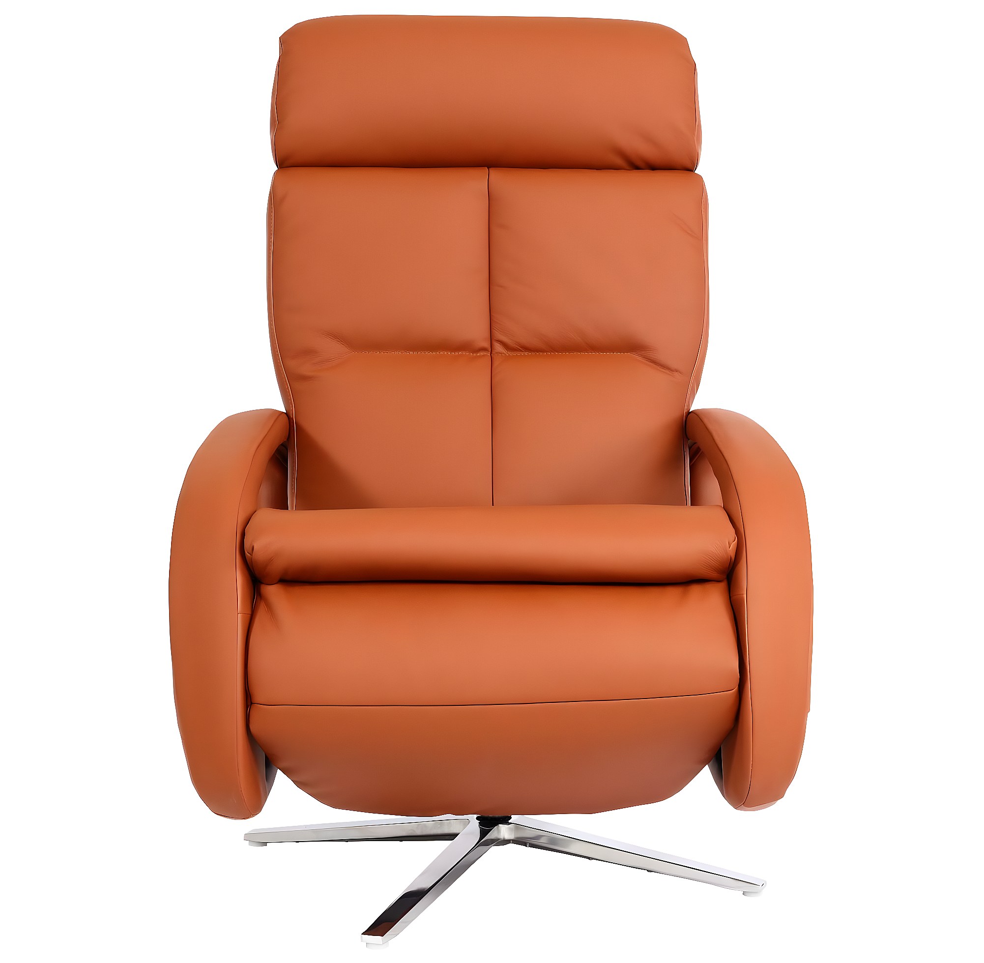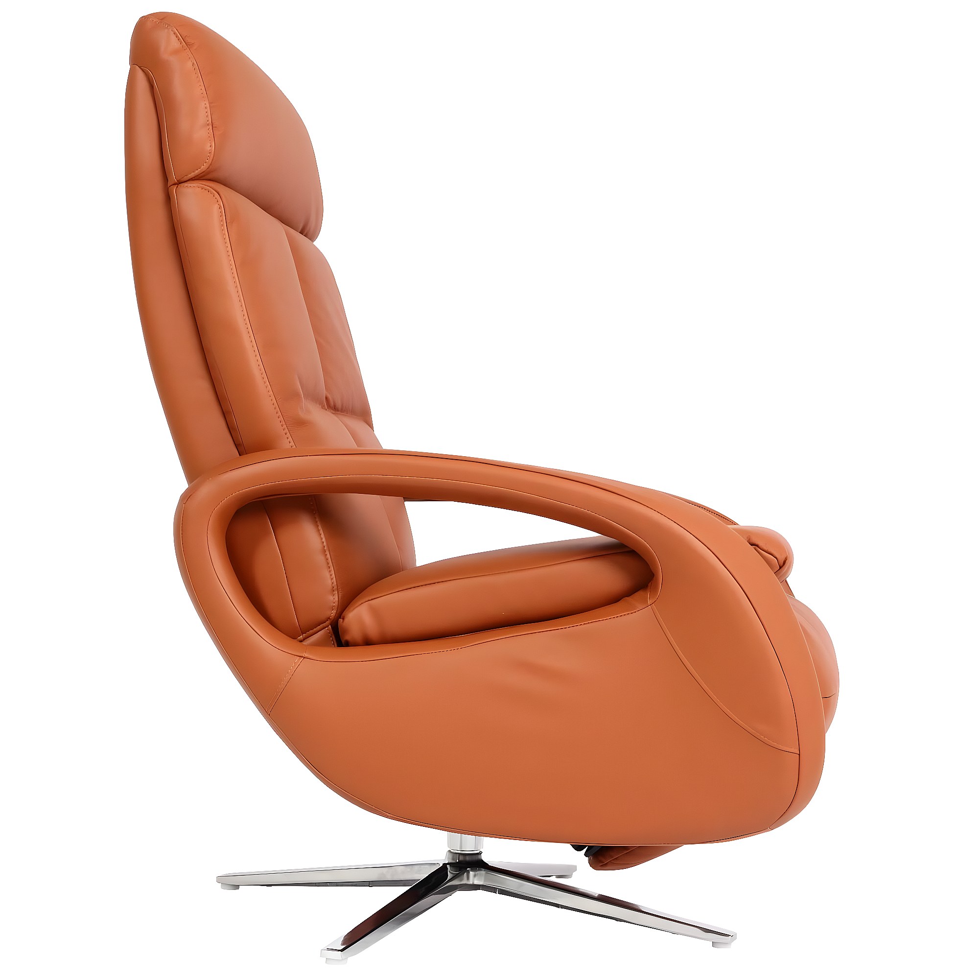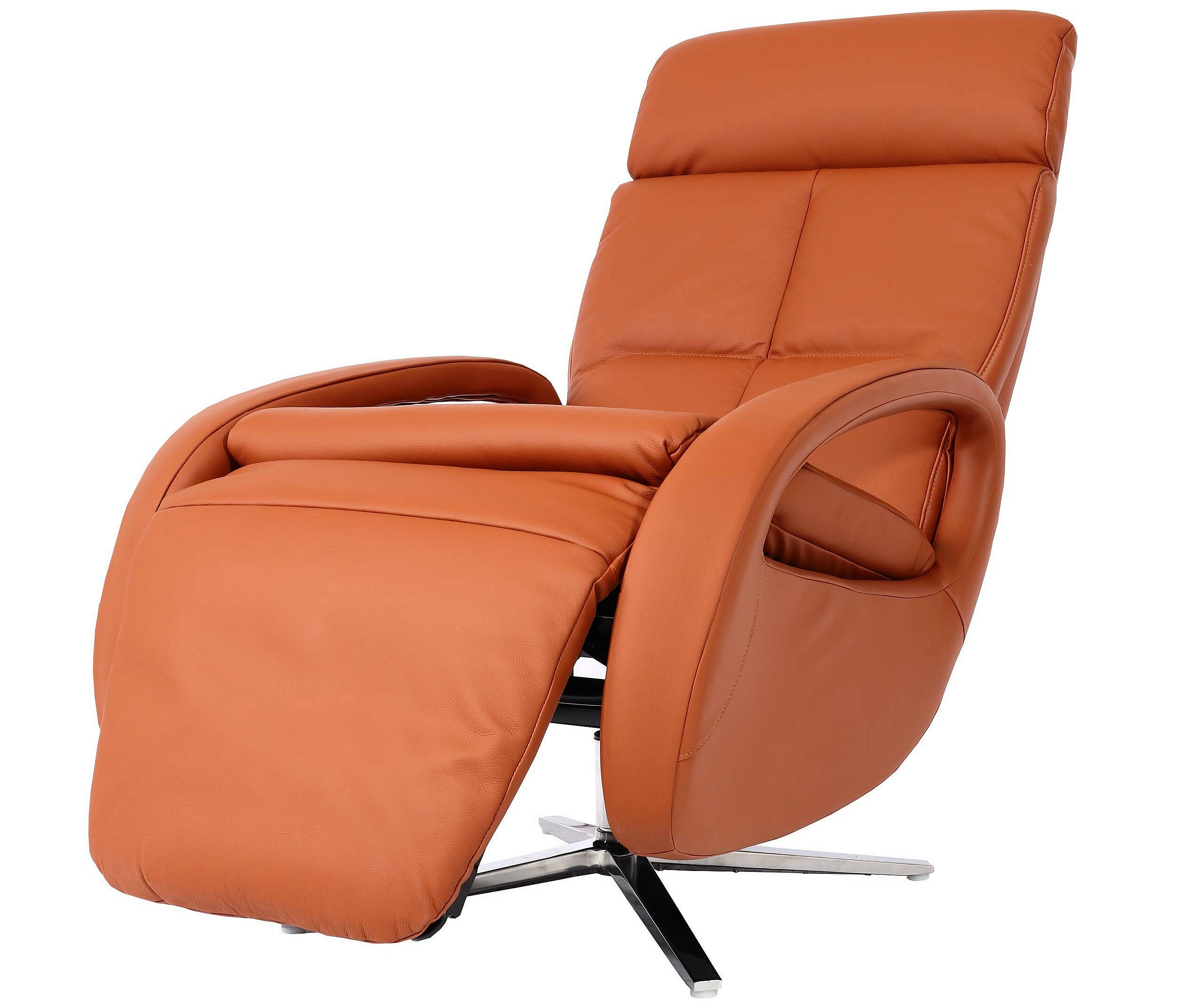 Poltrona reclinabile girevole lounge TV relax imbottita moderna MCW-L10 vera pelle marrone terracotta