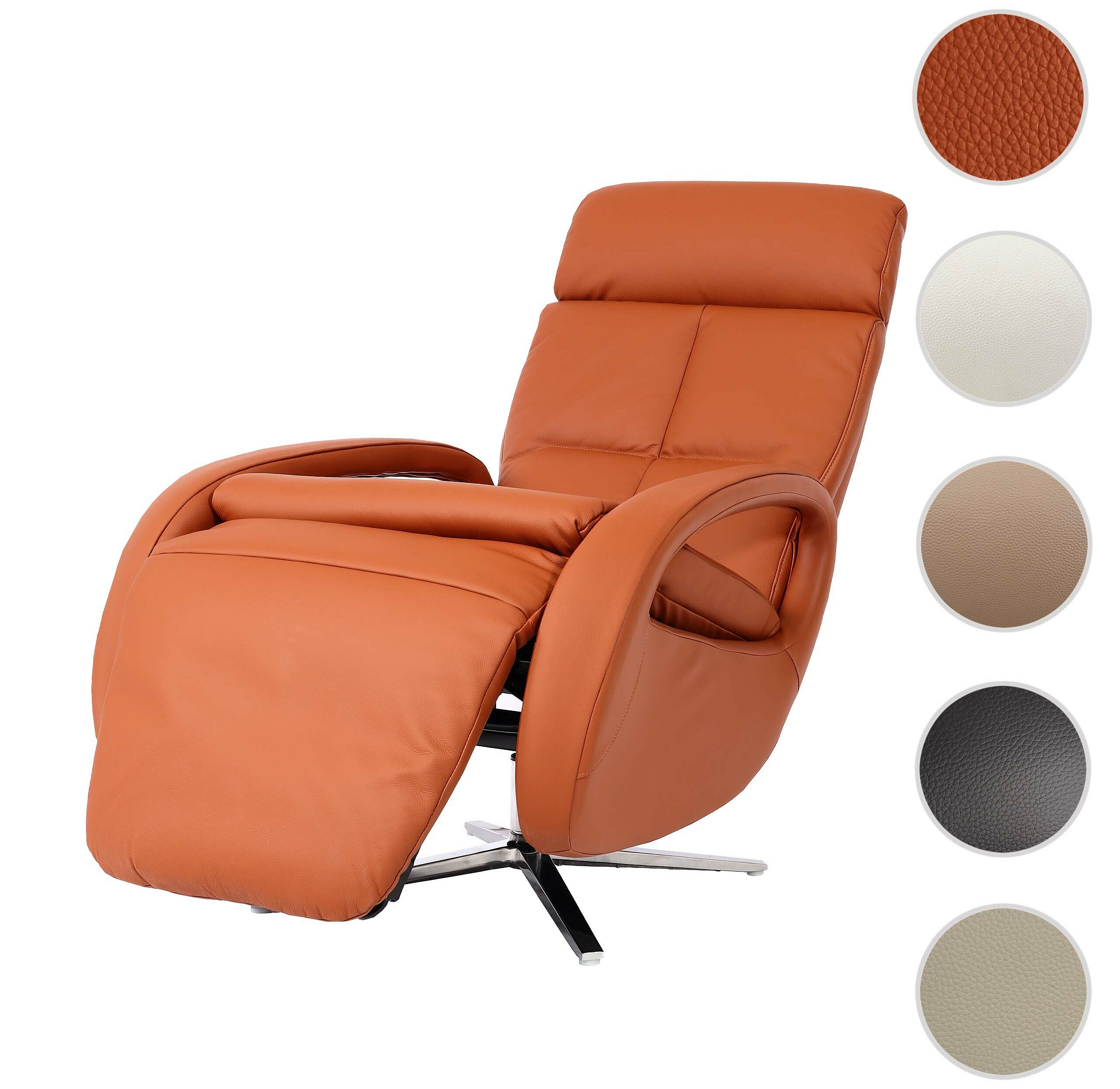 Poltrona relax MCW-L11, TV regolabile, funzione reclinabile girevole, vera pelle ~ terracotta marrone
