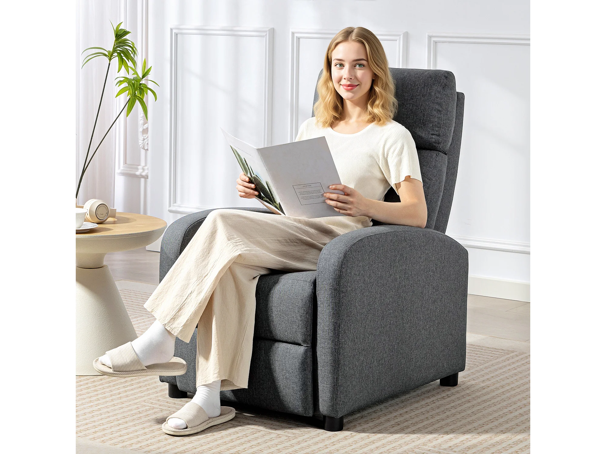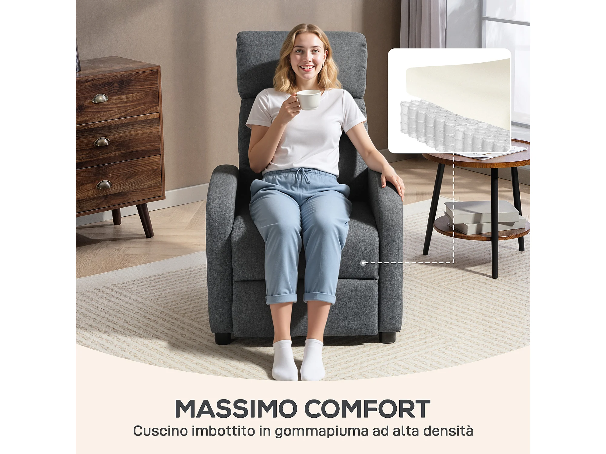 Poltrona relax reclinabile a 135° con poggiapiedi in tessuto grigio