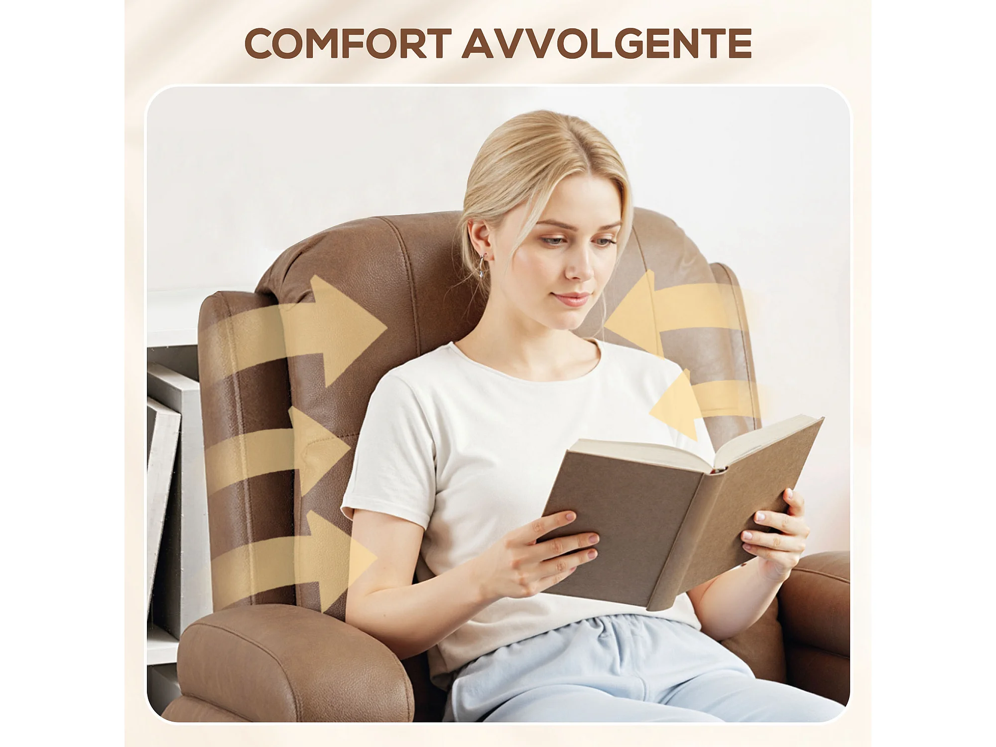 Poltrona relax reclinabile a 150° massaggiante e riscaldante marrone